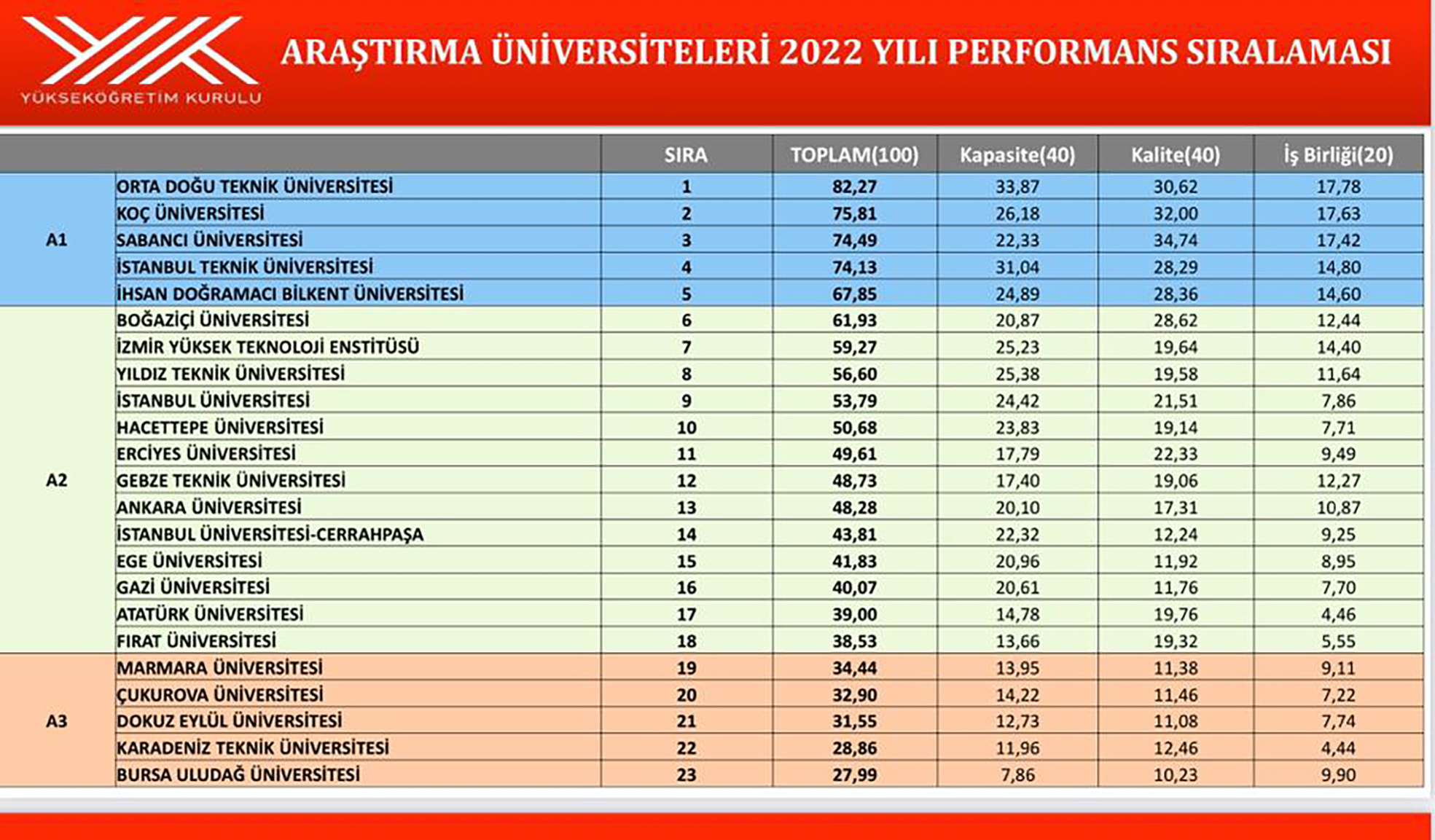 IN THE RESEARCH UNIVERSITIES RANKING, ATATURK UNIVERSITY IS RANKED IN THE A2 CATEGORY.