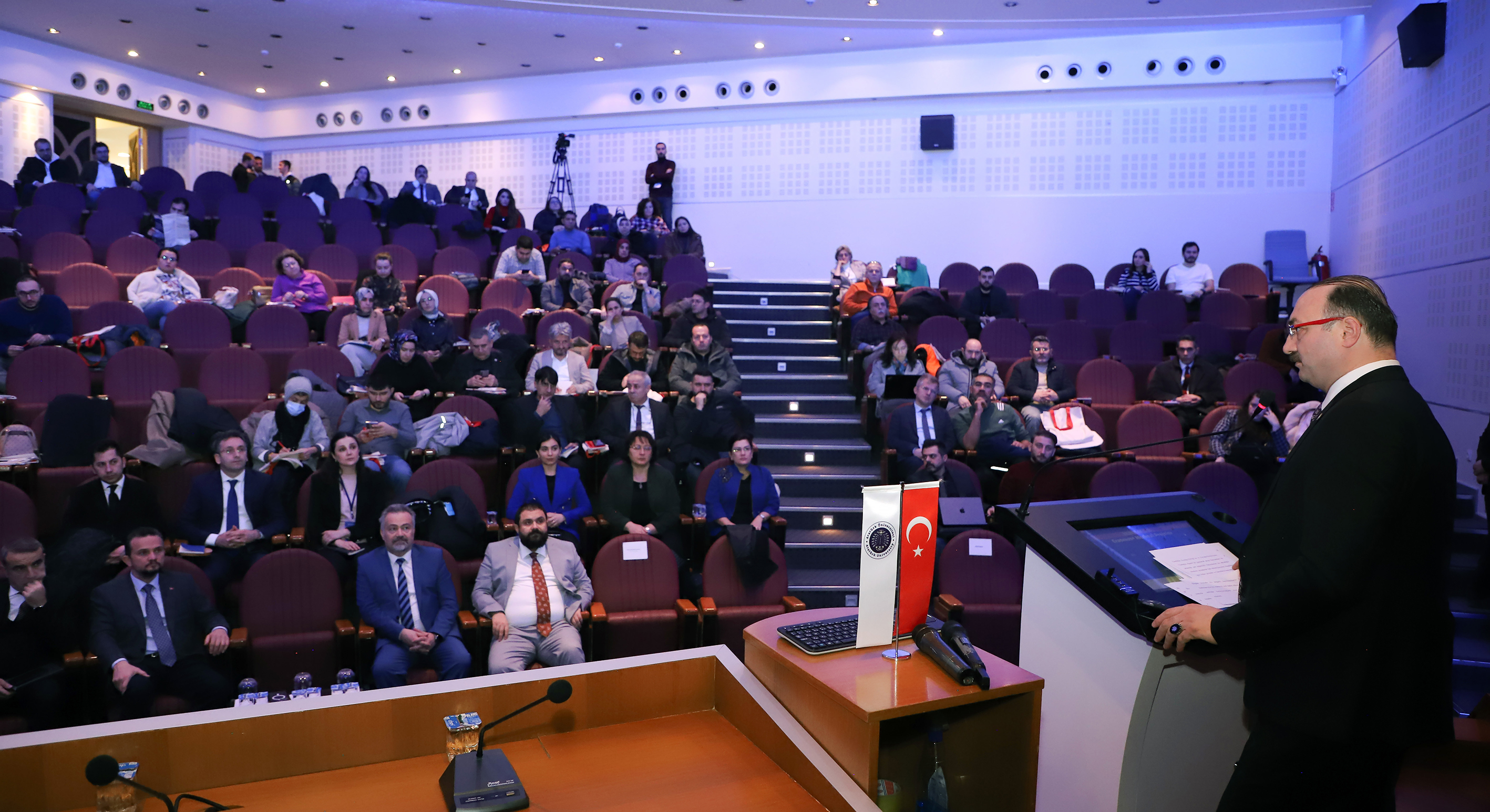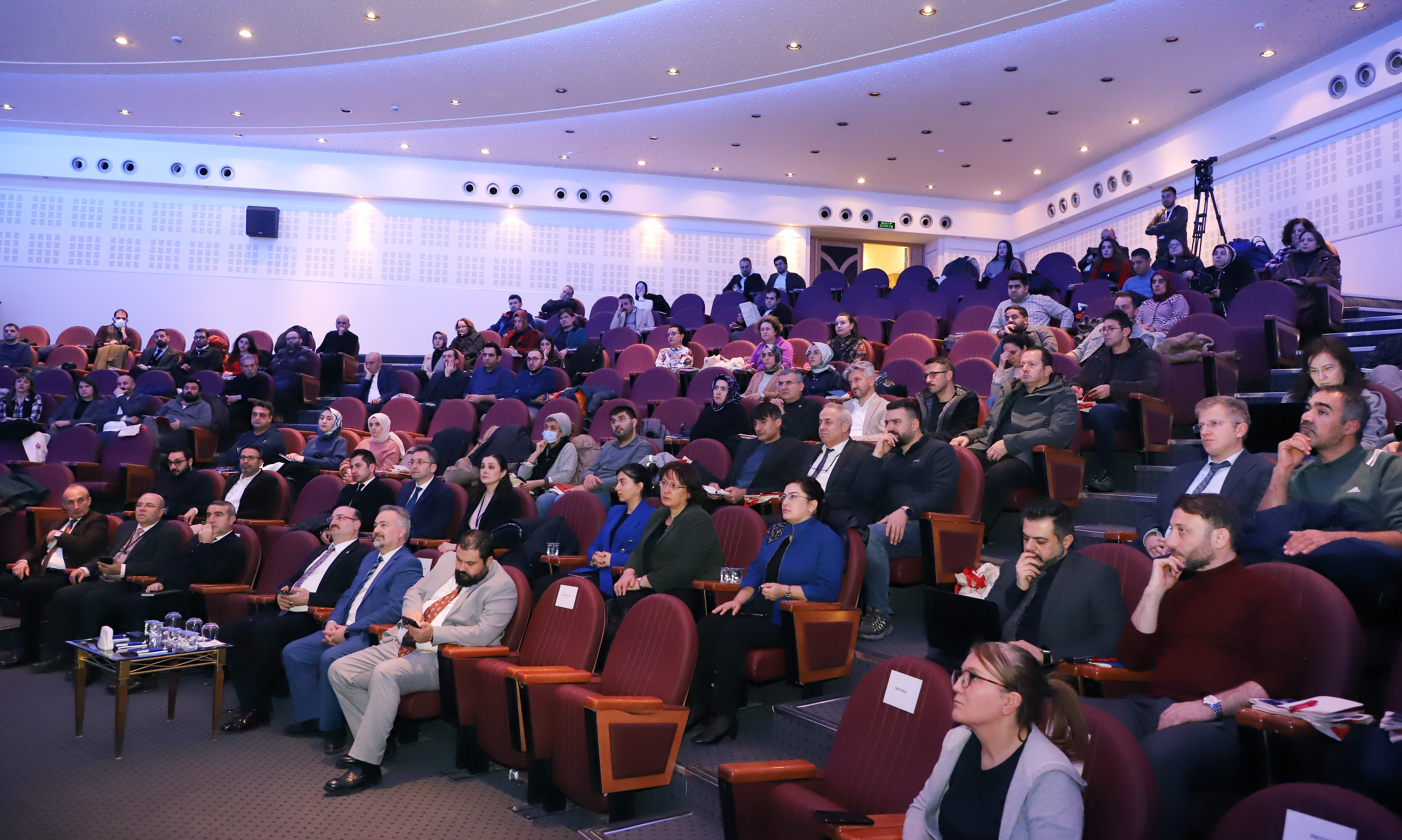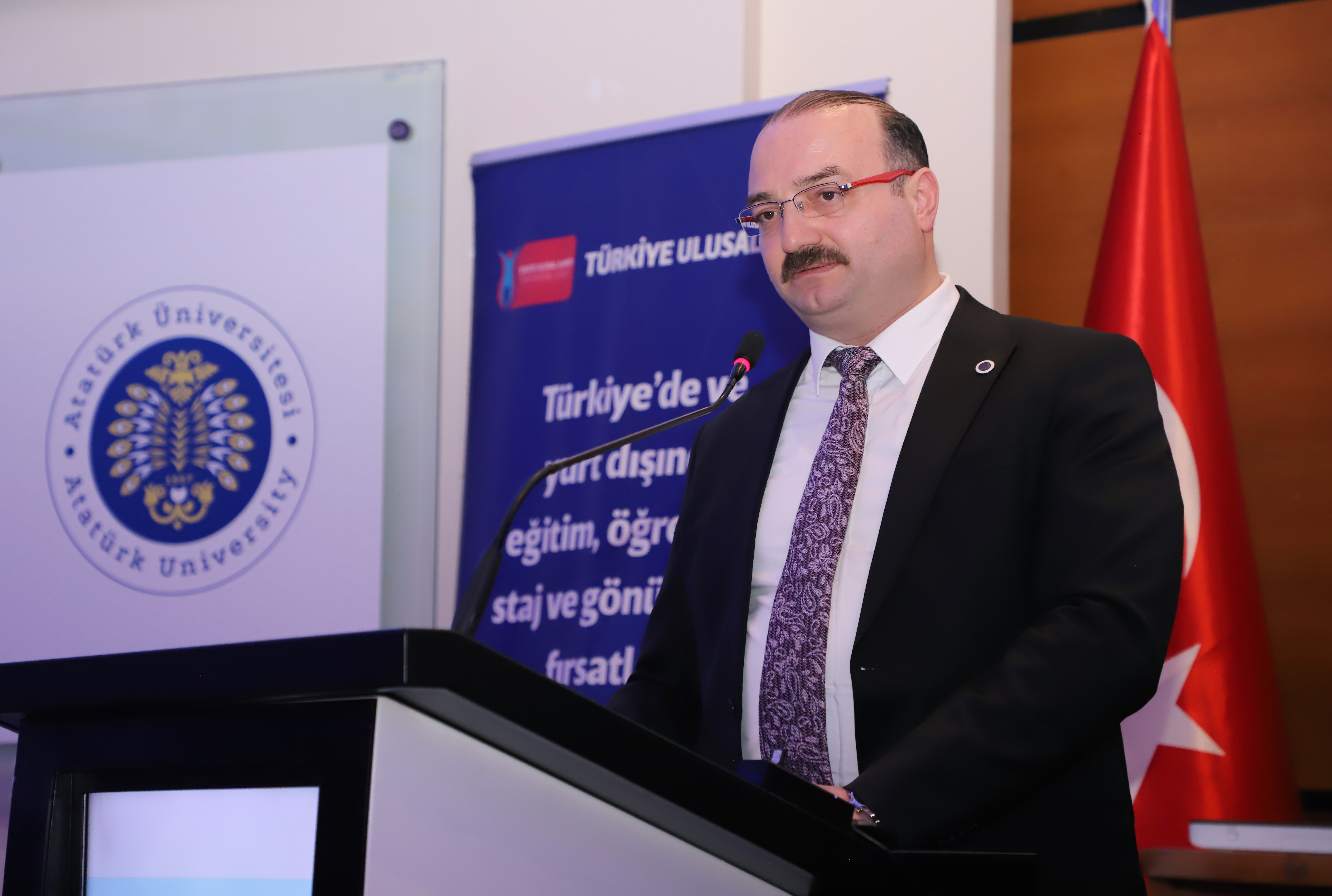 Prof. Dr. Ahmet Hacımüftüoğlu, the Rector of Atatürk University, the university's senior management, National Agency officials, academicians, and students were in attendance at the meeting, which was held in the Prof. Dr. Kemal Bıyıkoğlu Hall of the Cultural Centre.