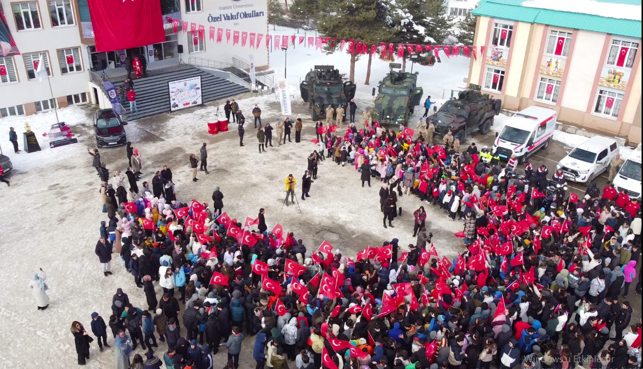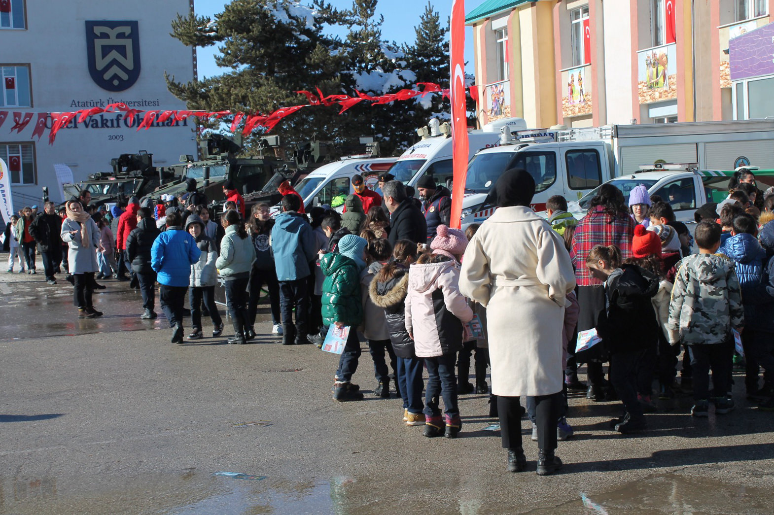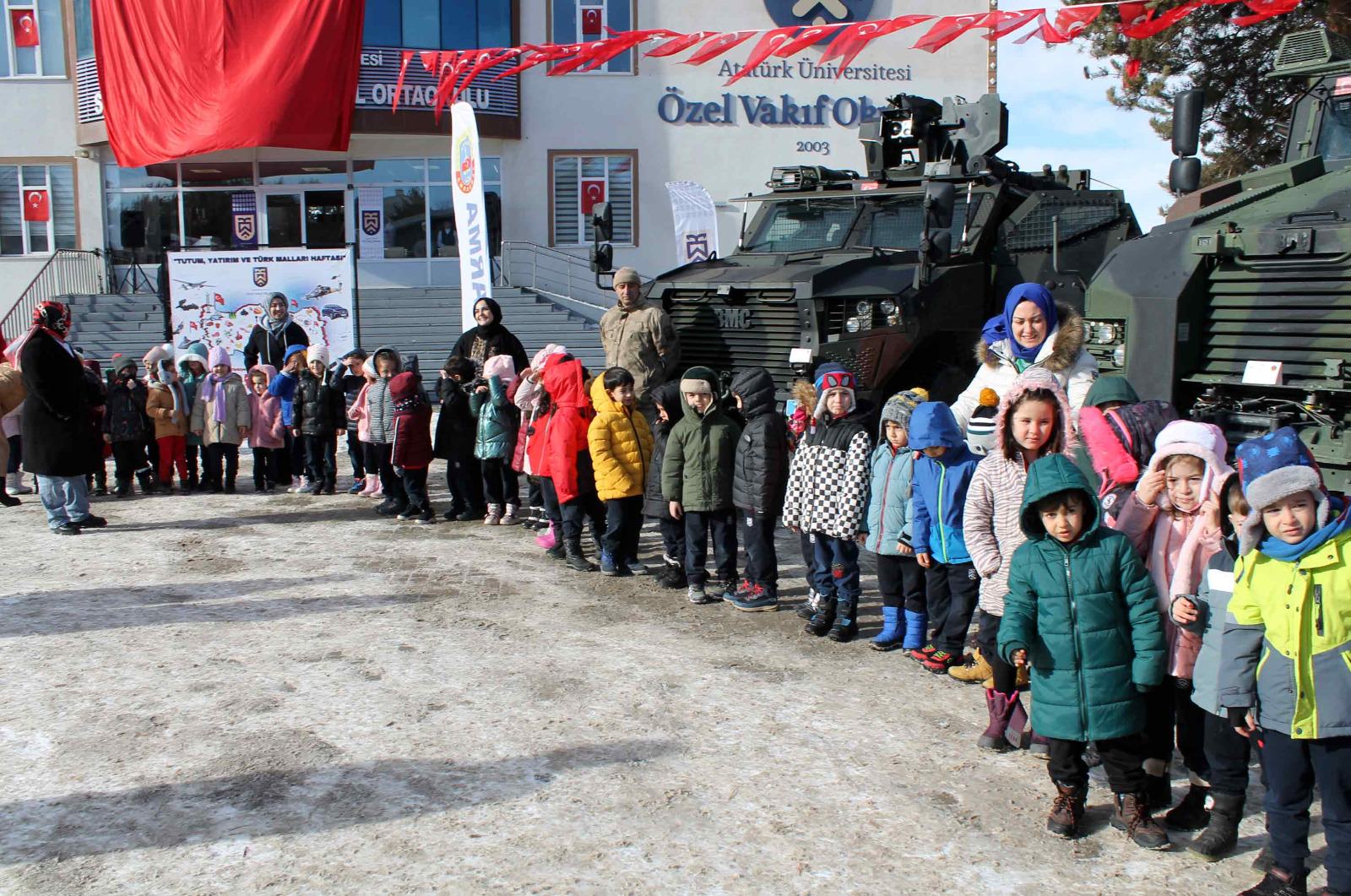 Atatürk University Vice Rector Prof. Dr. Hasan Türkez, Secretary General Assoc. Prof. Dr. Ufuk Okkay, Atatürk University Private Foundation Schools administrators, teachers, and numerous students and parents attended the event, which was organized under the leadership of Private Foundation Schools and with the support of the Erzurum Governorship. Domestically produced vehicles and equipment from the Turkish defense industry were showcased at the event, which provided a unique perspective on the domestic products week festivities.