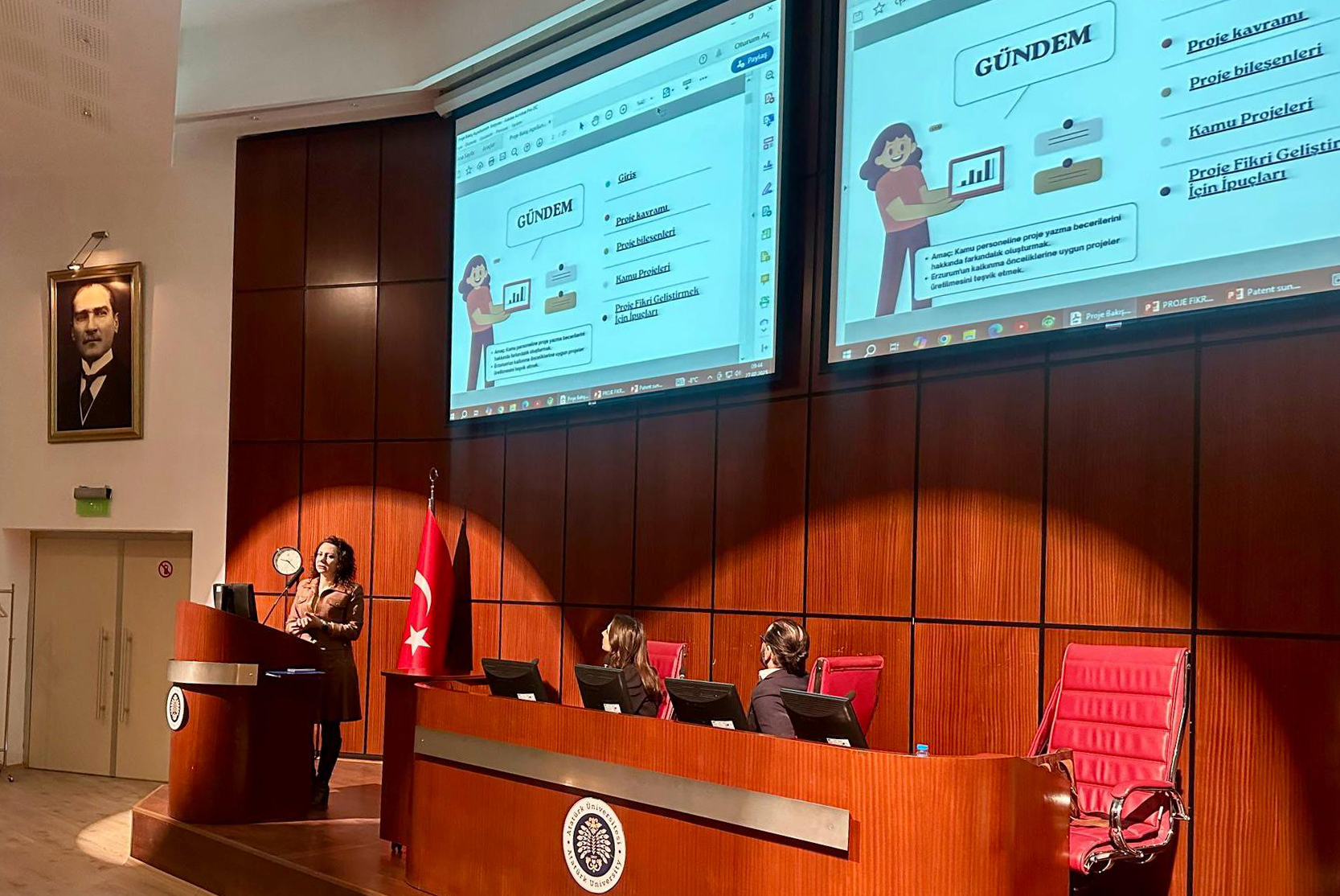 In the course of the training, Instr. Şule Erdilmen Ocak discussed the fundamental components of the projects under the title "What is a Project?" Lecturer Dr. Murat Bingöl addressed the subject of "Project Idea Generation Processes," while Lecturer Dr. Murat Bingöl addressed "Project Components and Public Projects." Res. Asst. Recep Kemal Kuzu informed the participants about the opportunities to access international funds and provided comprehensive information about the European Union and Horizon Europe initiatives in the subsequent sessions. DAP and KUDAKA specialists presented the project processes of their institutions and the factors that needed to be taken into account on the second day of the training. Furthermore, the participants' apprehensions regarding writing projects were effectively addressed through interactive question-and-answer sessions.