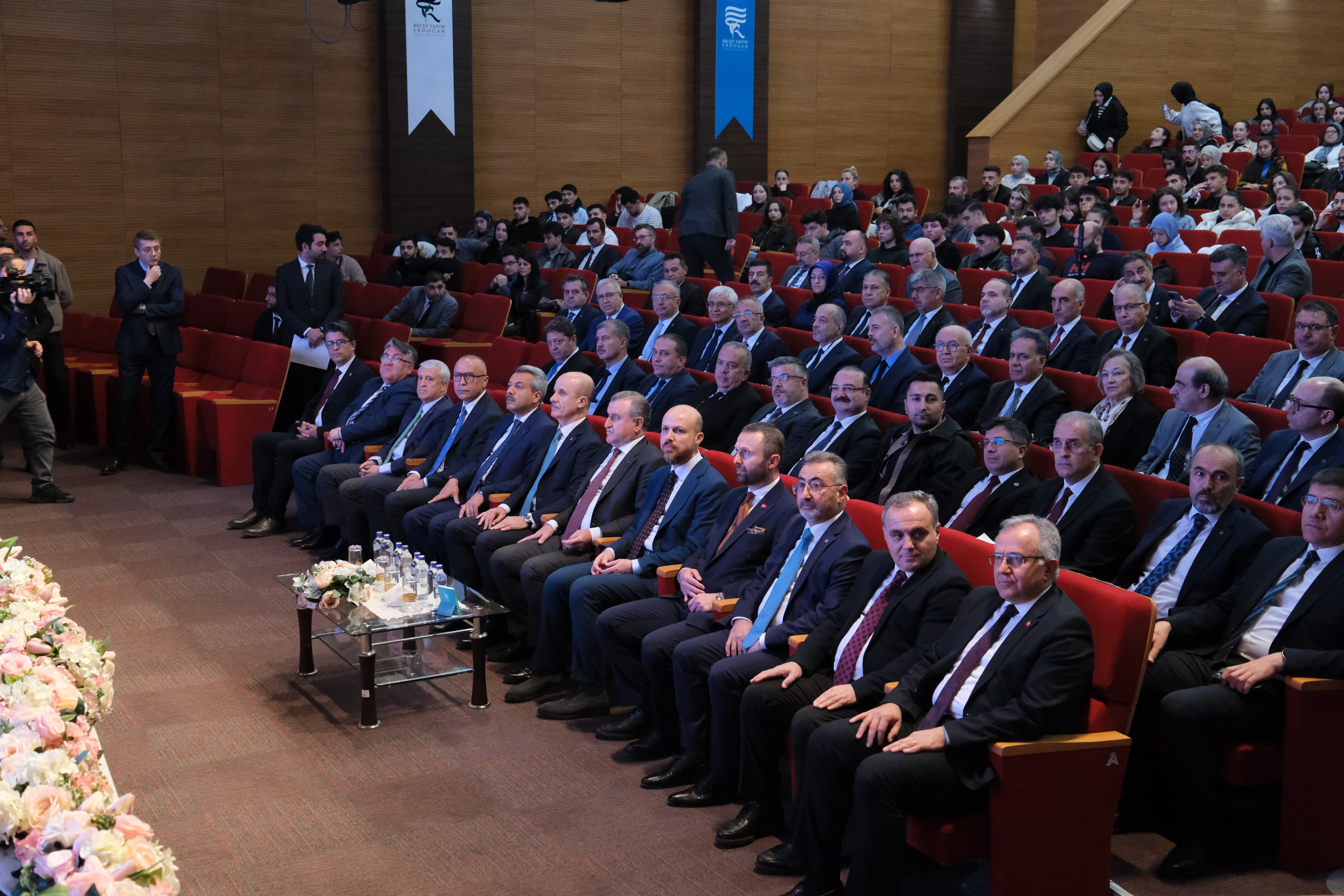 At the ceremony, YÖK President Prof. Dr. Özvar, and Bilal Erdoğan presented Prof. Dr. Ahmet Hacımüftüoğlu with his certificate. The event was attended by Minister of Youth and Sports Osman Aşkın Bak, YÖK President Prof. Dr. Erol Özvar, and İlim Yayma Foundation Board of Trustees President Necmettin Bilal Erdoğan.