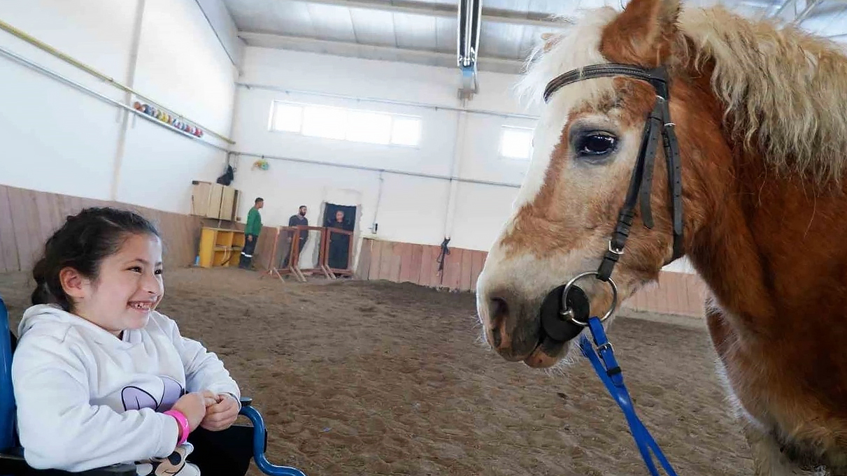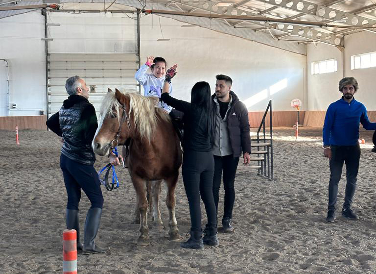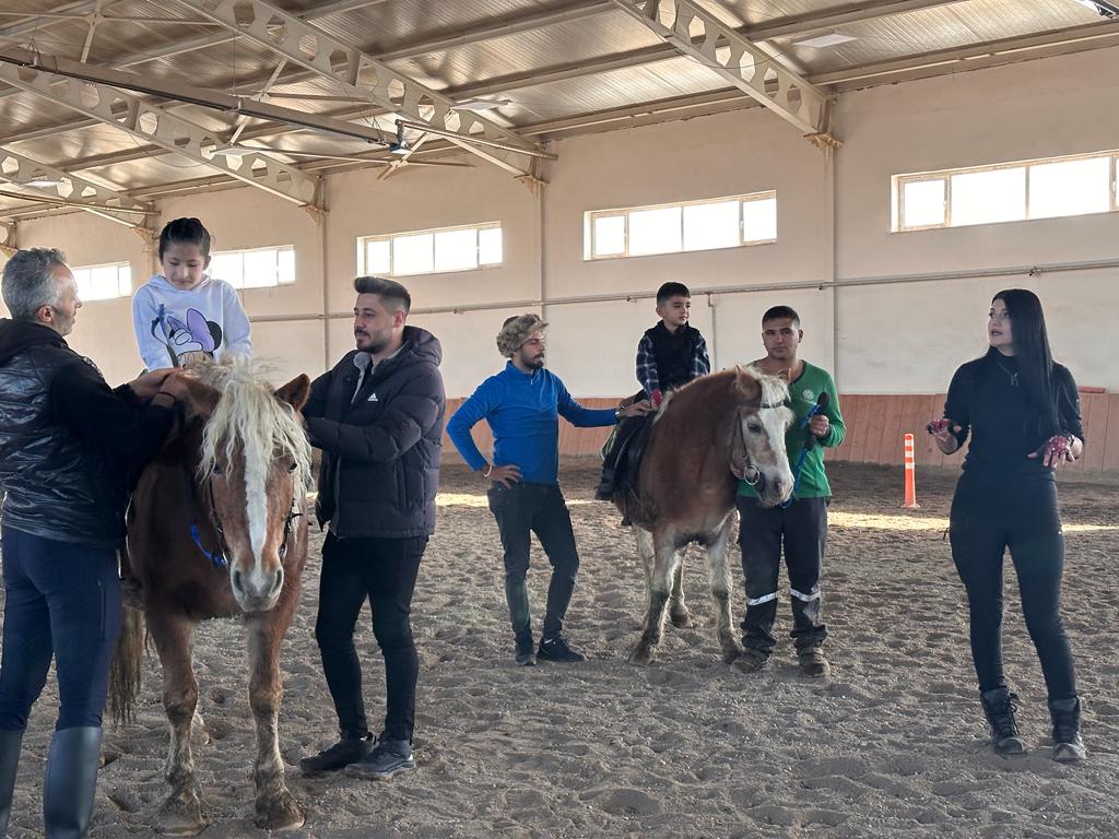 On the occasion of International World Disability Day, Manege Area and Equine Coordinator Associate Dr. Gokhan Oztürk stated that they provided hippotherapy training to disabled children. In his capacity as coordinator, he stated that they provide essential training to children with special needs, including psychological support, those who are afflicted with lack of communication and muscle strength, and that they strive to assist children in clinging to life more tightly through the use of trained horses and that they offer support.