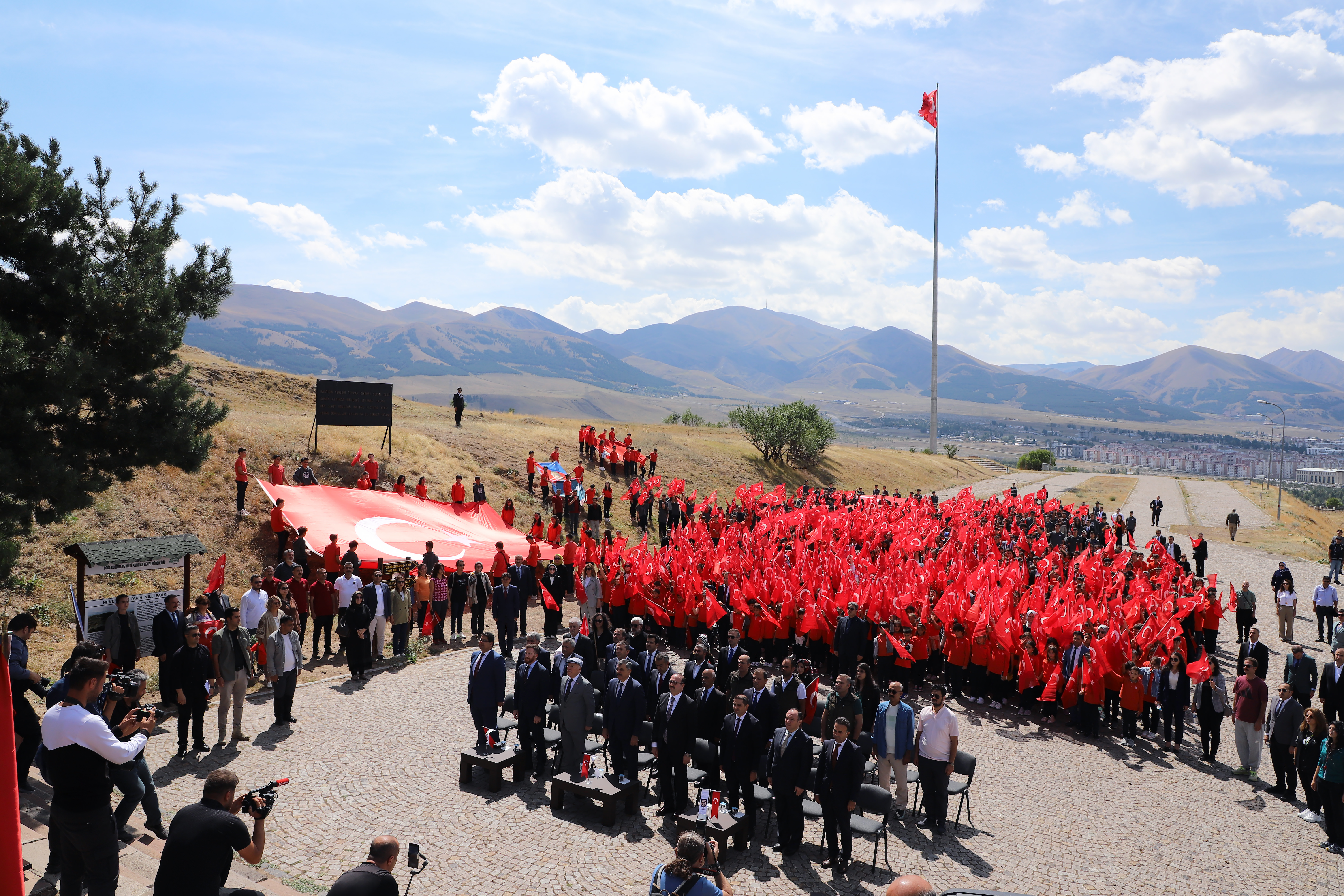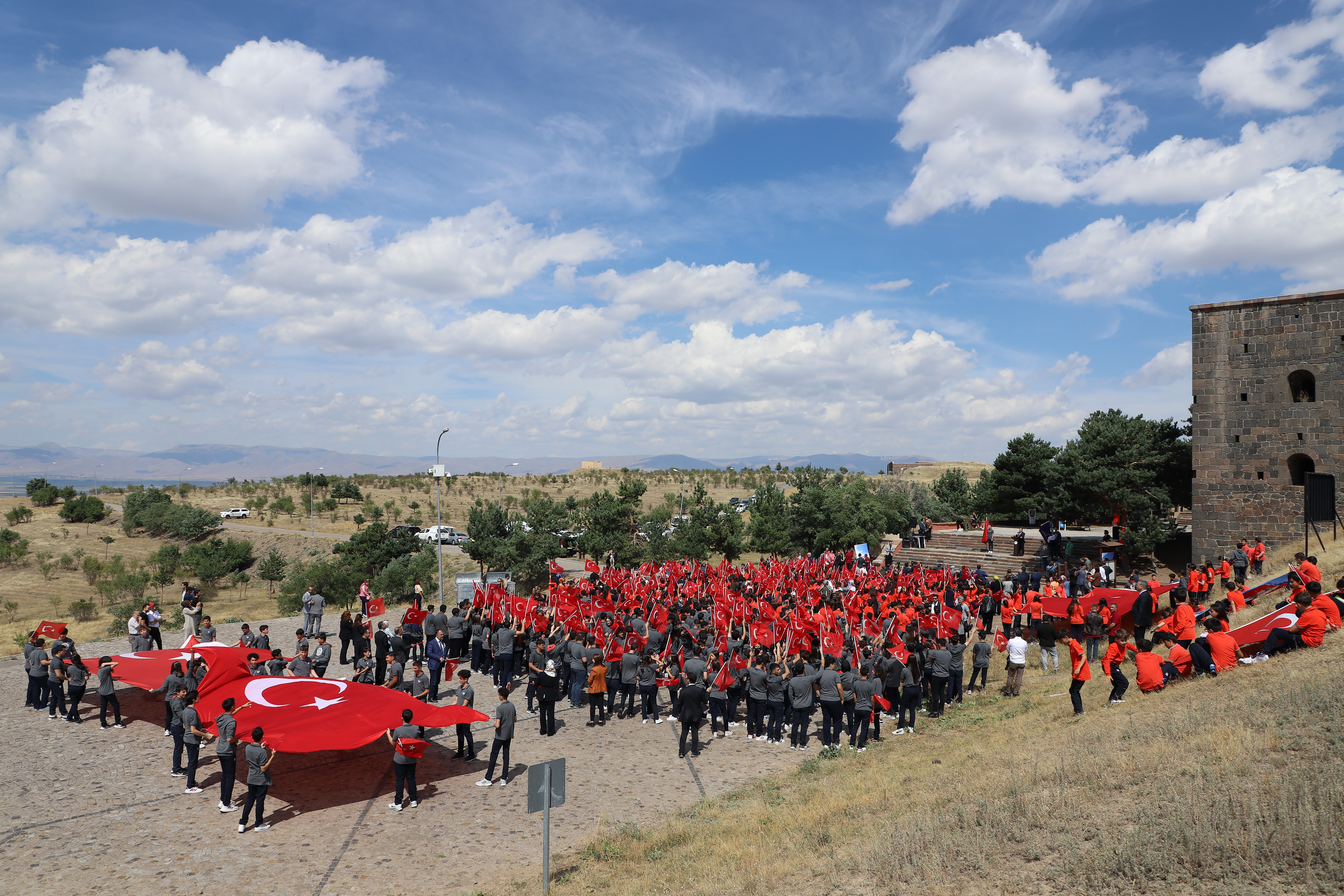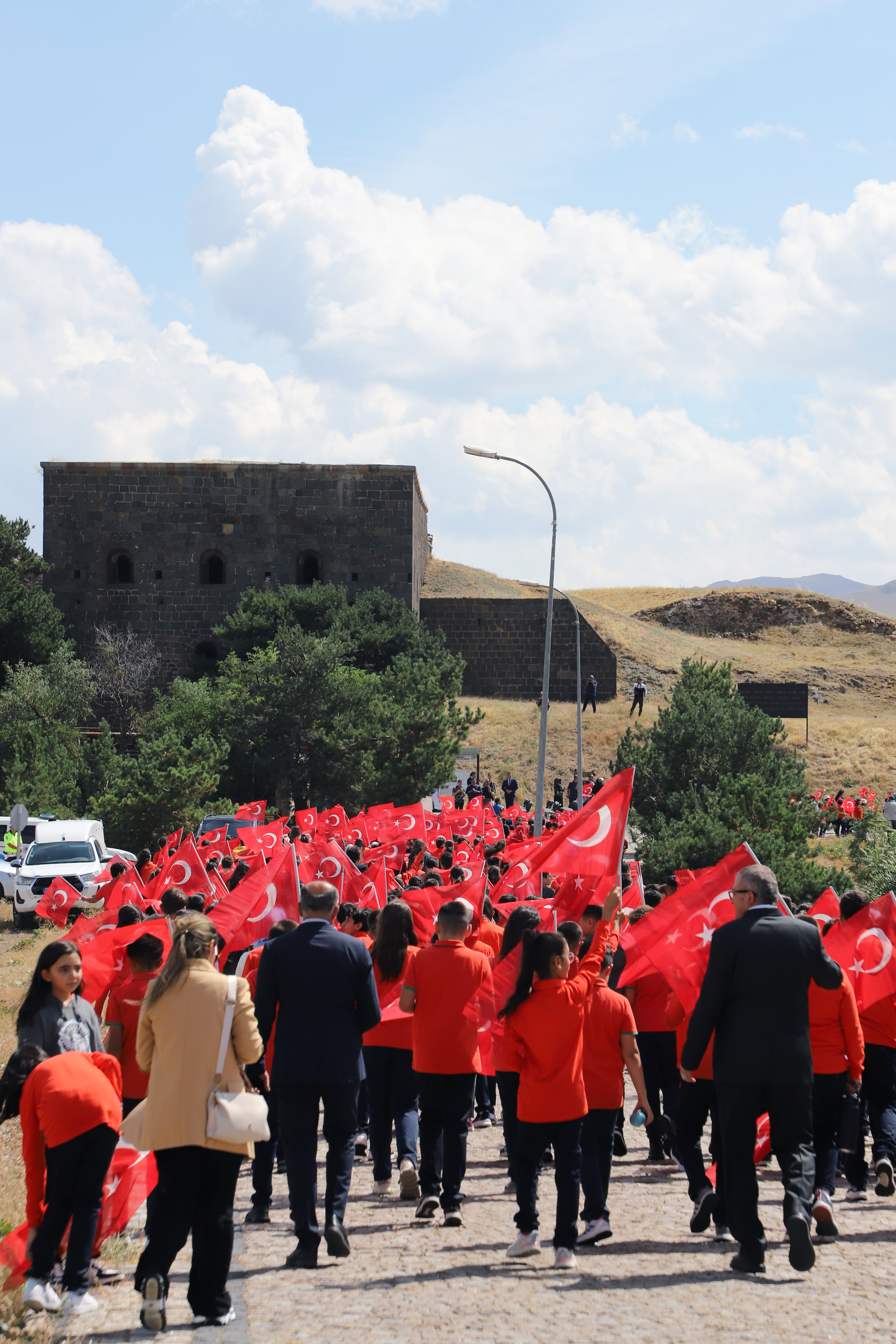 The students initiated the new education-training program with the theme of "First Lesson from Çanakkale to Gaza: Homeland Defense" in this historical location where heroic epics were composed. Erzurum Governor Mustafa Çiftçi wished the first lesson bell to resonate auspiciously. Governor Çiftçi announced that he had recently visited all of the forts in Erzurum, stating, "Our initial lesson will commence at the Aziziye 1, 2, 3, and Mecidiye Forts." May the new academic year be a time of blessings for our pupils, teachers, and the entire nation. I personally visited all 23 forts in our metropolis and observed their current conditions. Erzurum, too, is a fort city in the east, much like Çanakkale. We recently convened a meeting to establish a roadmap with our institutions to ensure the safe transfer of our forts to future generations, which includes the maintenance, restoration, and landscaping of these forts. I am delighted to be in the presence of our youth and children in our forts, which are of such great significance. I would like to extend my gratitude to the Rectorate of Atatürk University and our beloved students for organizing this program. I also hope that the new academic year is filled with success, as a result of these emotions. "Erzurum is the land of heroes who resisted until their last breath to prevent the enemy from passing."