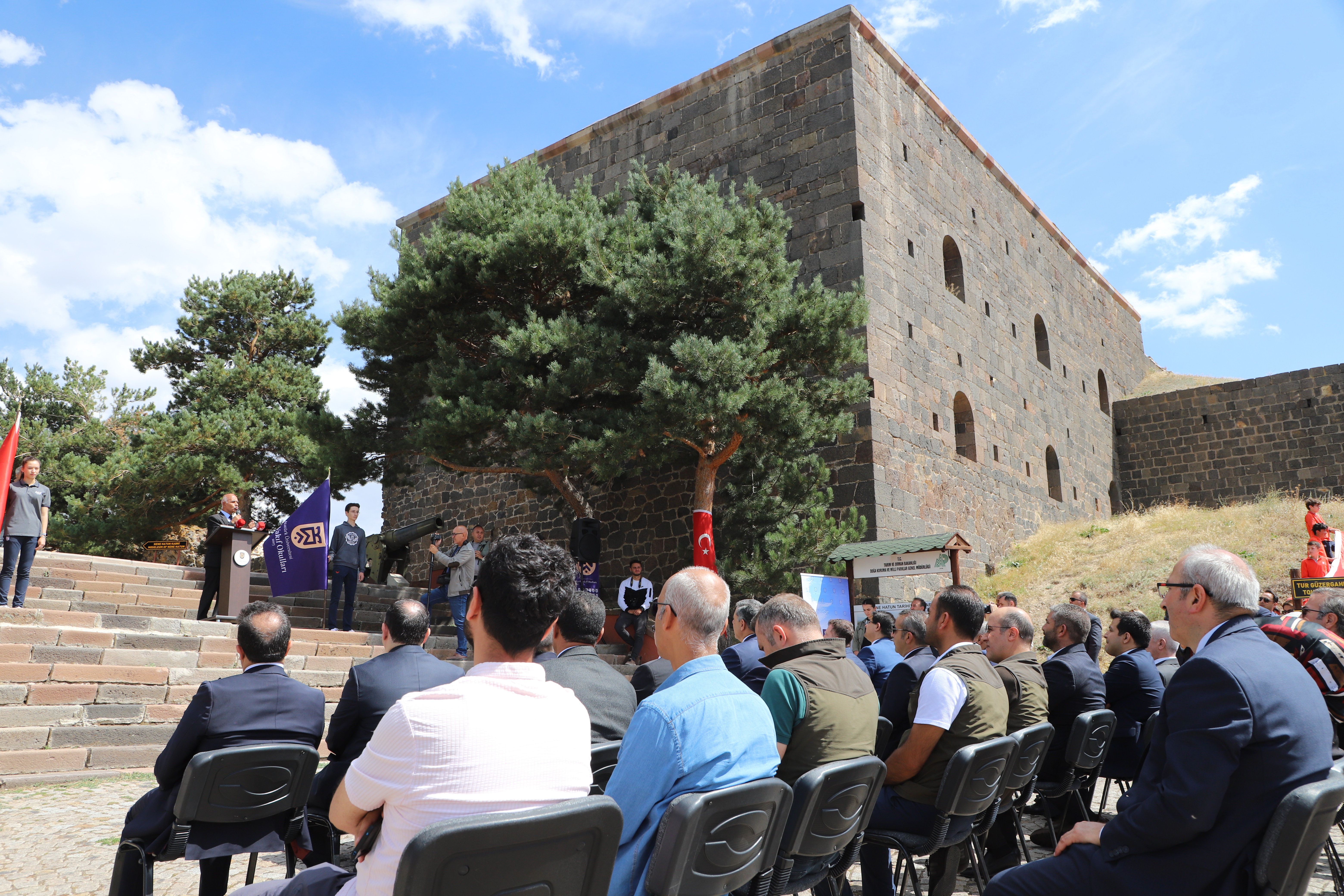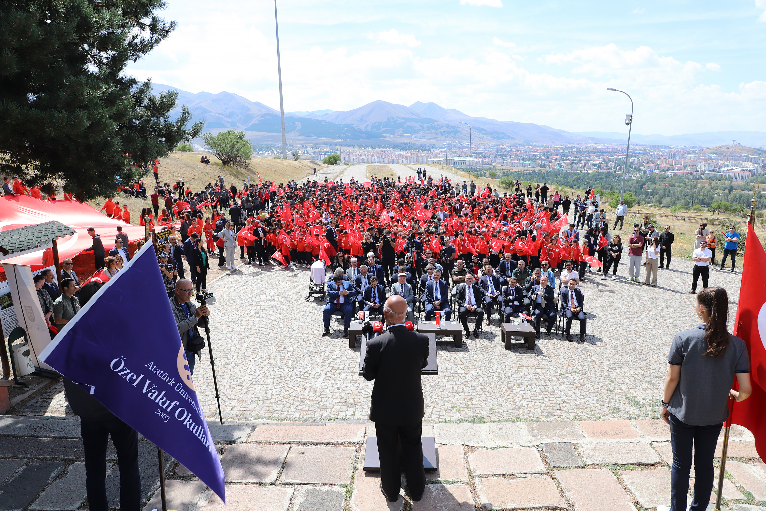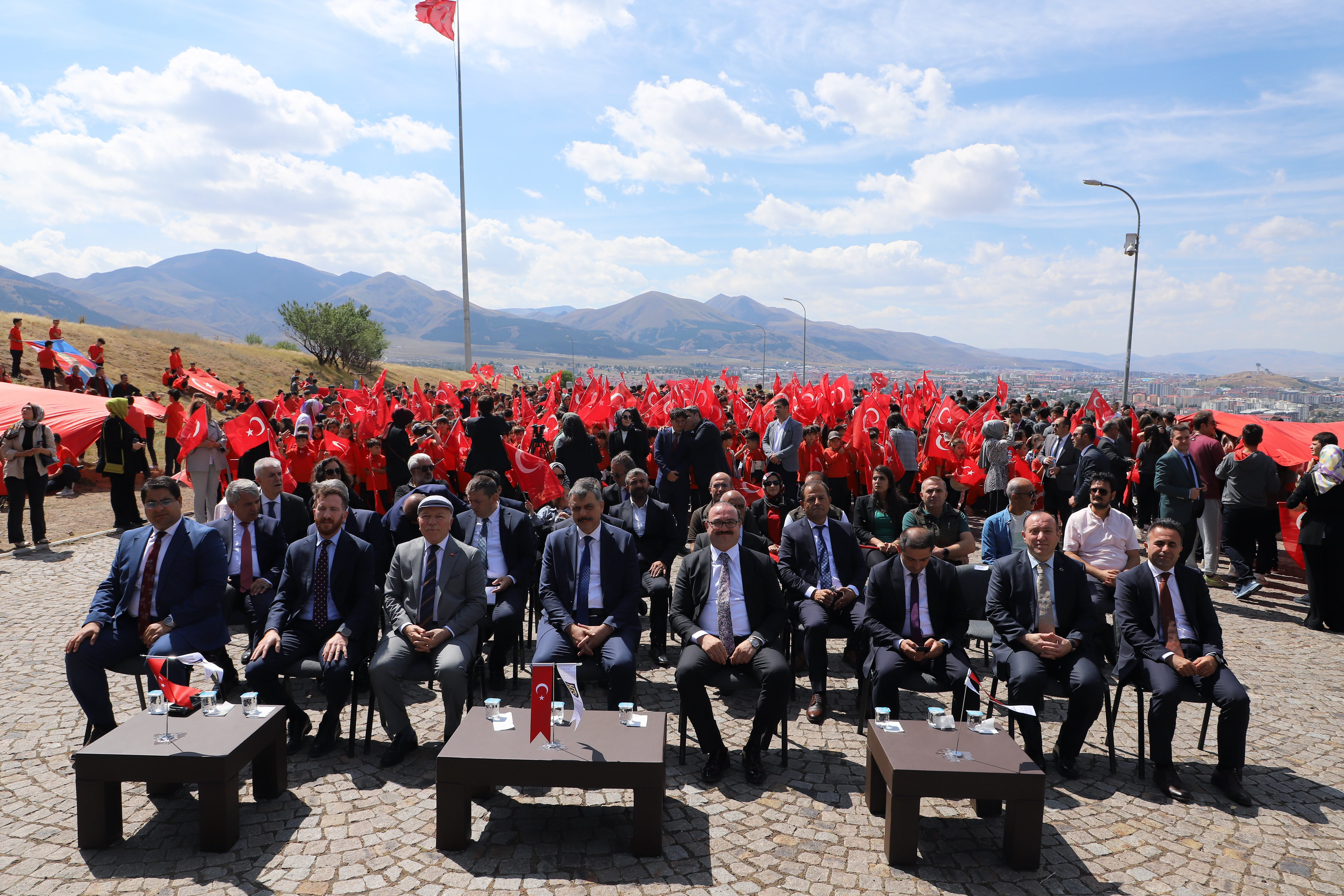 The opening program at Aziziye Bastions, which was organized with the theme of "First Lesson: Love of the Homeland," was attended by Erzurum Governor Mustafa Çiftçi, Erzurum Metropolitan Municipality Mayor Mehmet Sekmen, Atatürk University Rector Prof. Dr. Ahmet Hacımüftüoğlu and Vice Rectors Prof. Dr. Hasan Yılmaz and Prof. Dr. Yüksel Göktaş, Provincial Director of National Education Yakup Yıldız, Provincial Director of Culture and Tourism Ahmet Yer, Private Foundation Schools General Manager Erdal Karagülle, and teachers and students. The event was held at Aziziye Bastions and garnered significant attention.