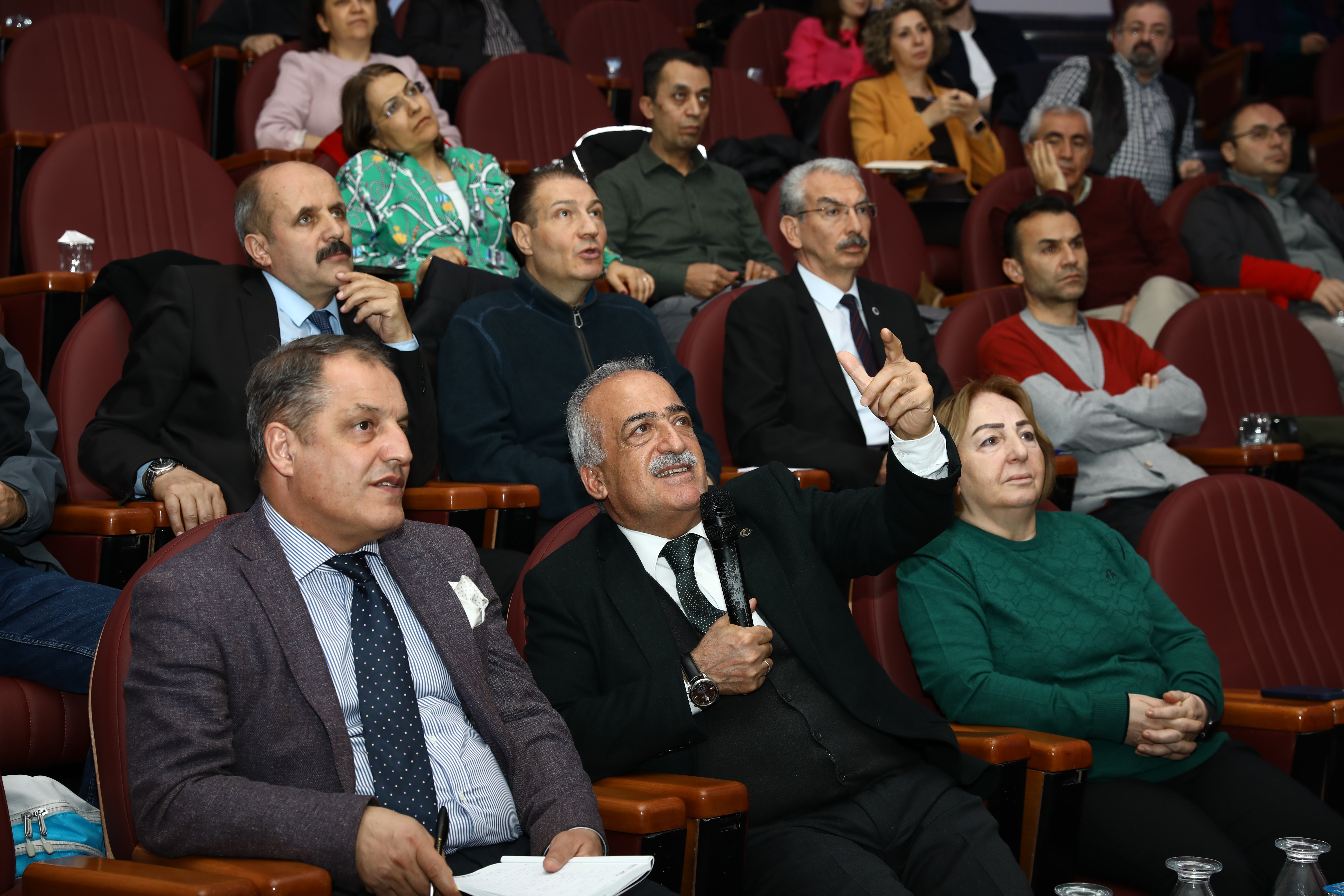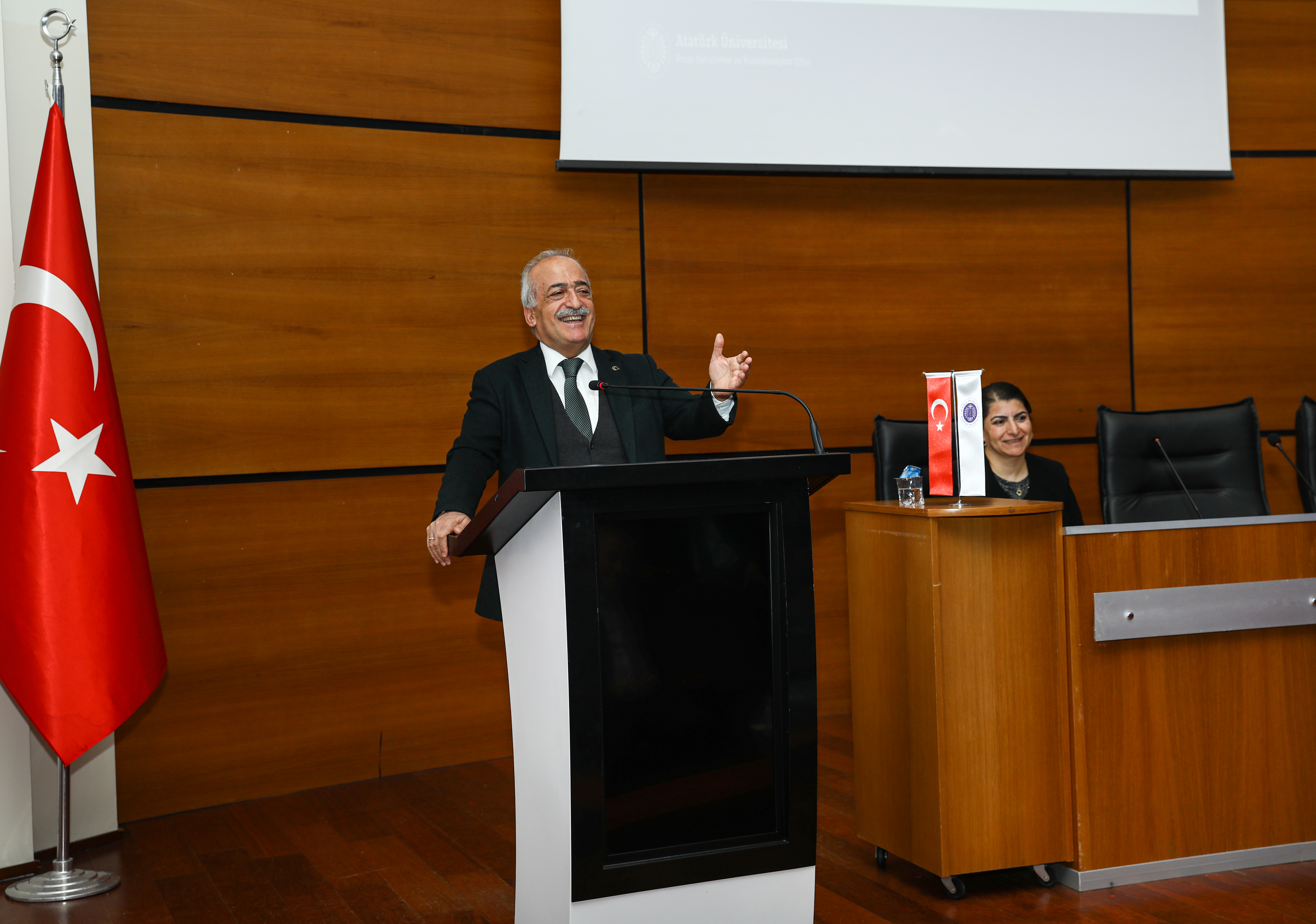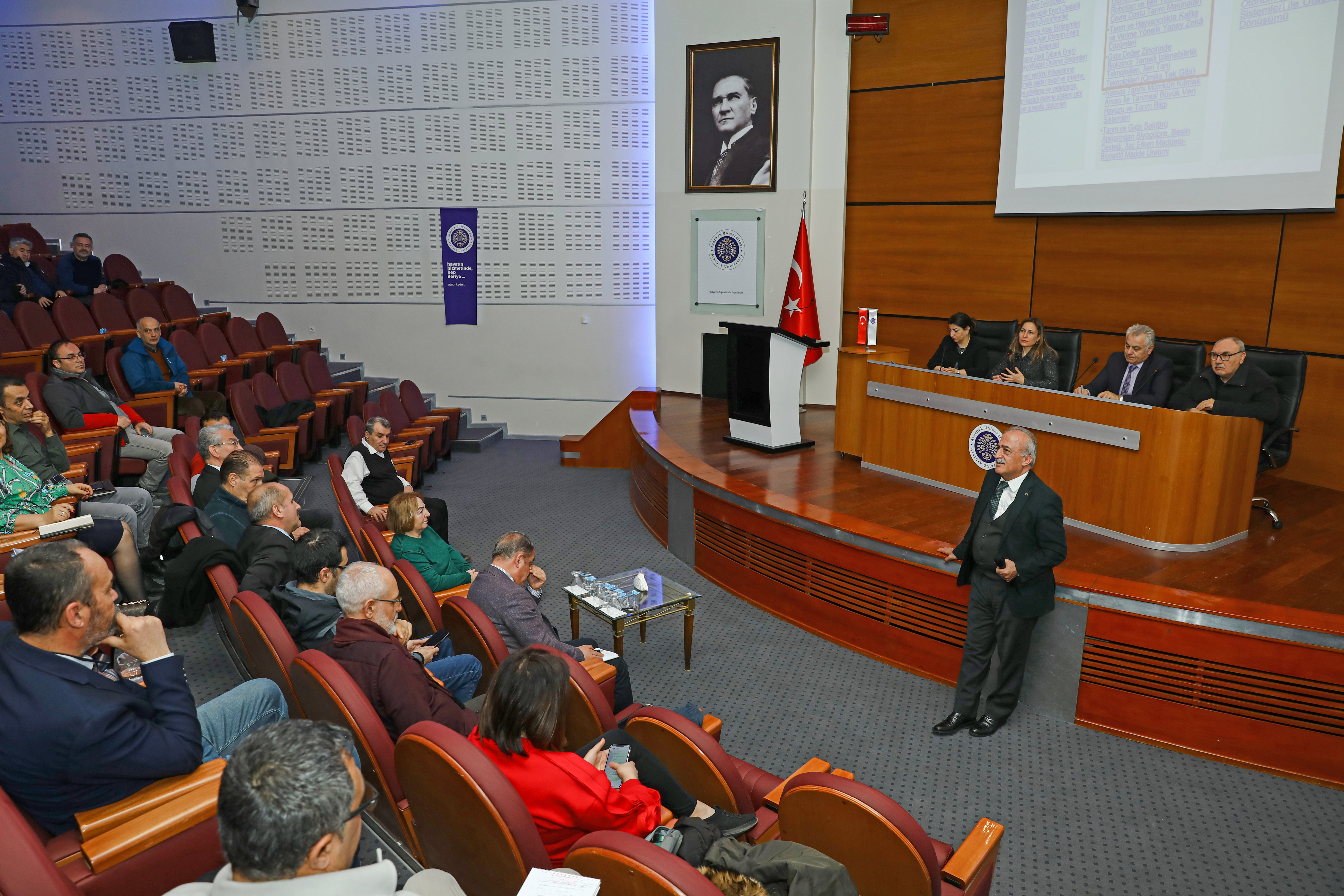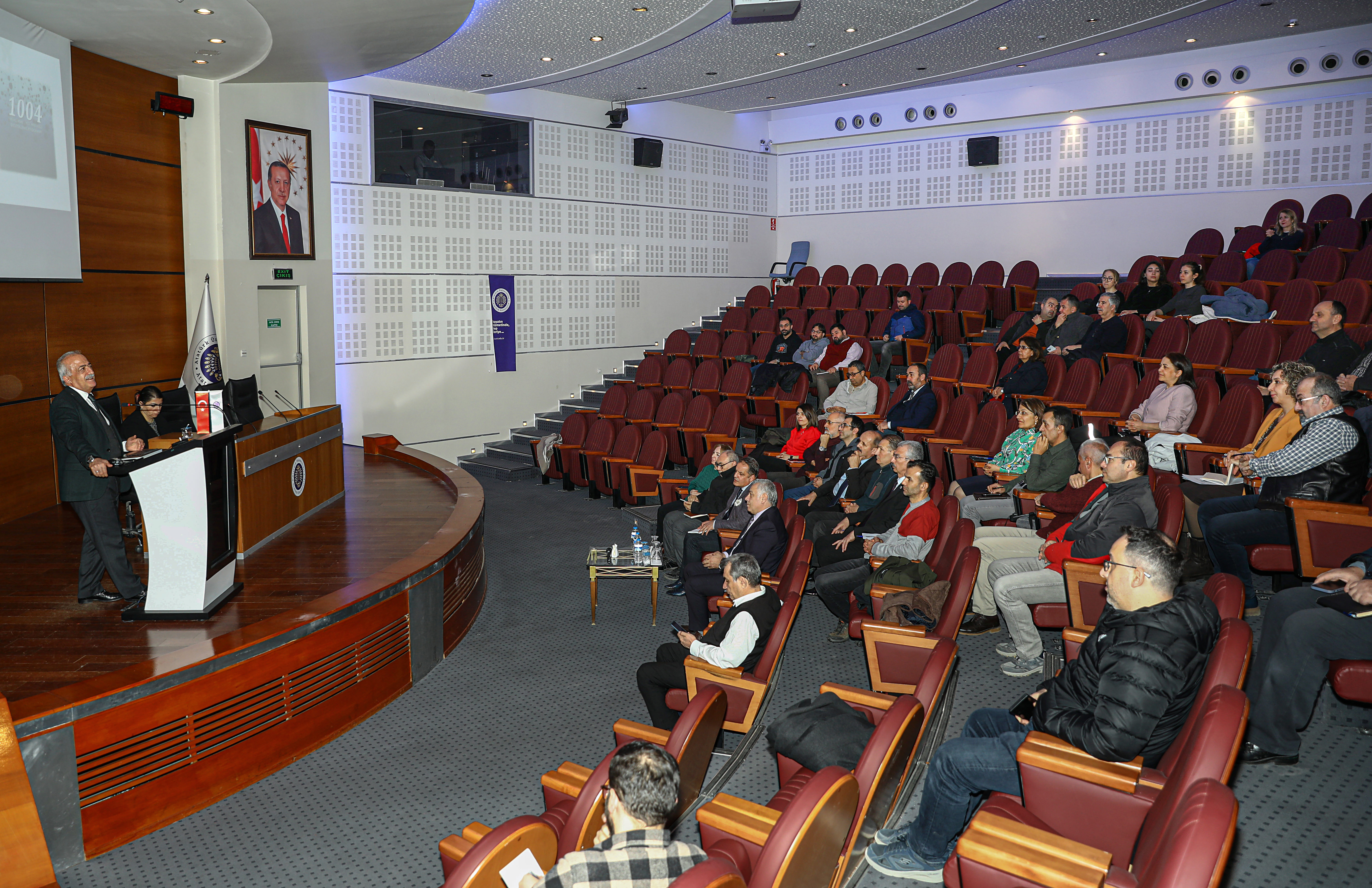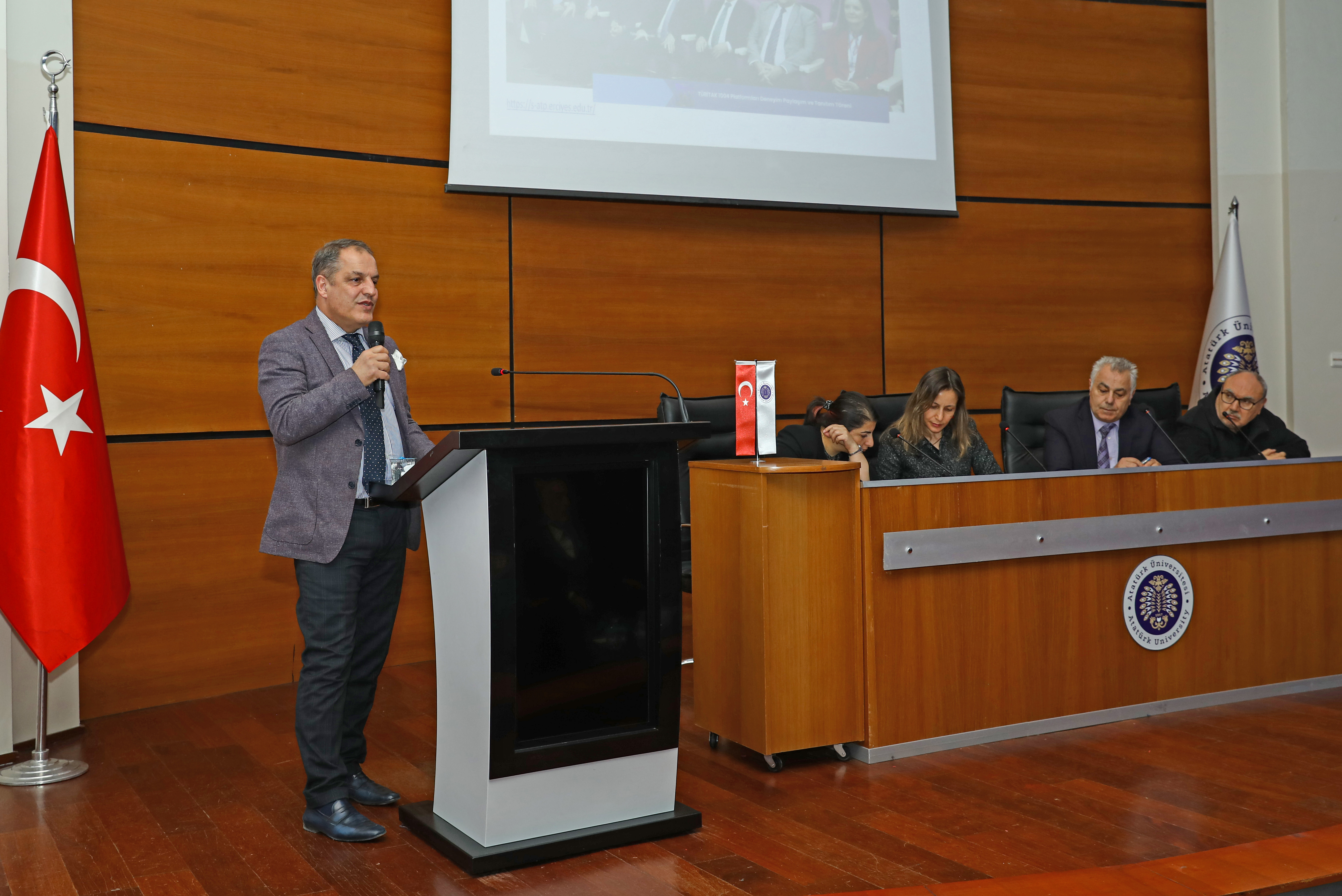 Numerous faculty members, including Atatürk University Rector Prof. Dr. Ömer Çomaklı, and members of the Project Development and Coordination Office team were in attendance at the information meeting conducted in the Prof. Dr. Kemal Bıyıkoğlu Hall of the Cultural Center as part of this call, in which research universities participate.