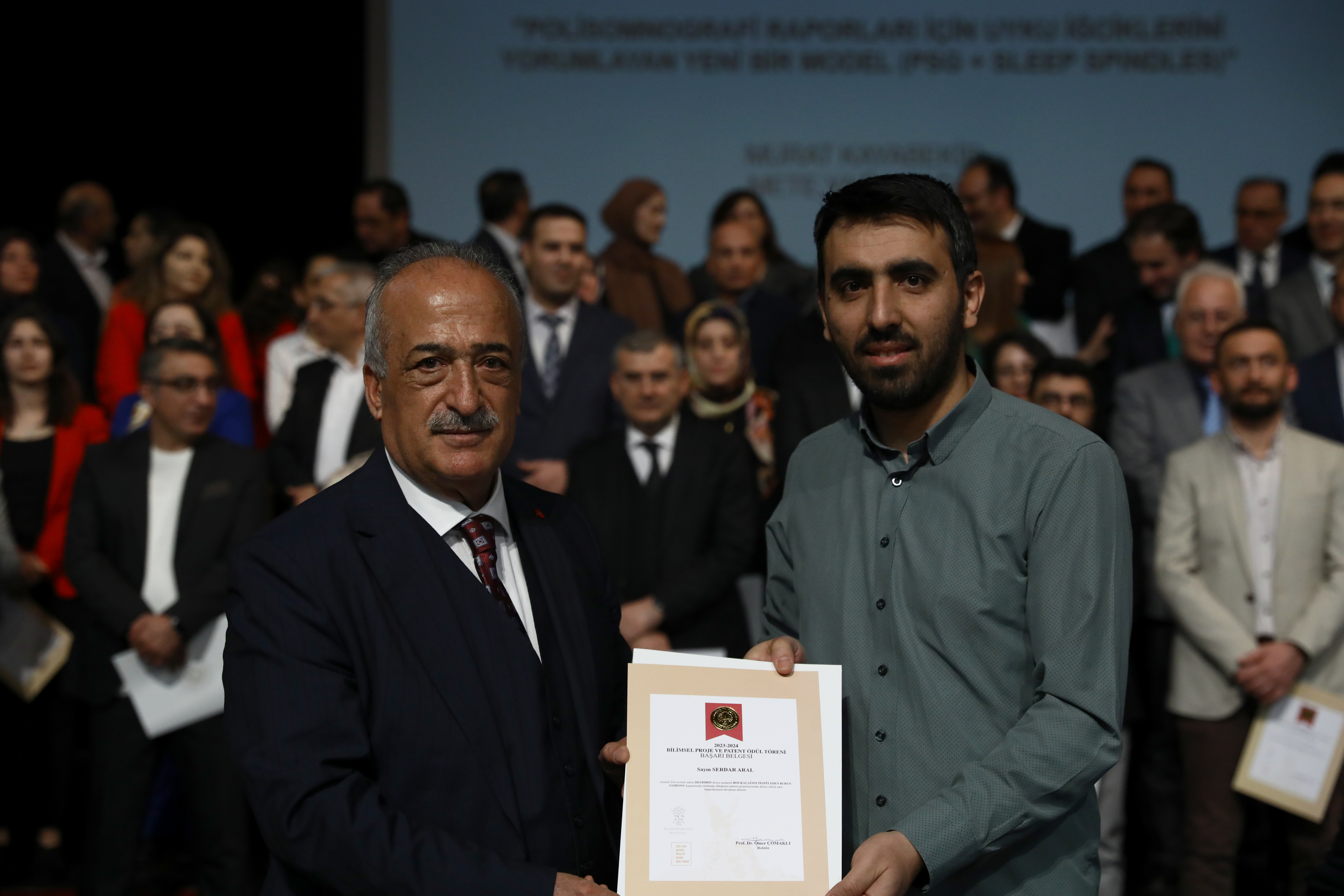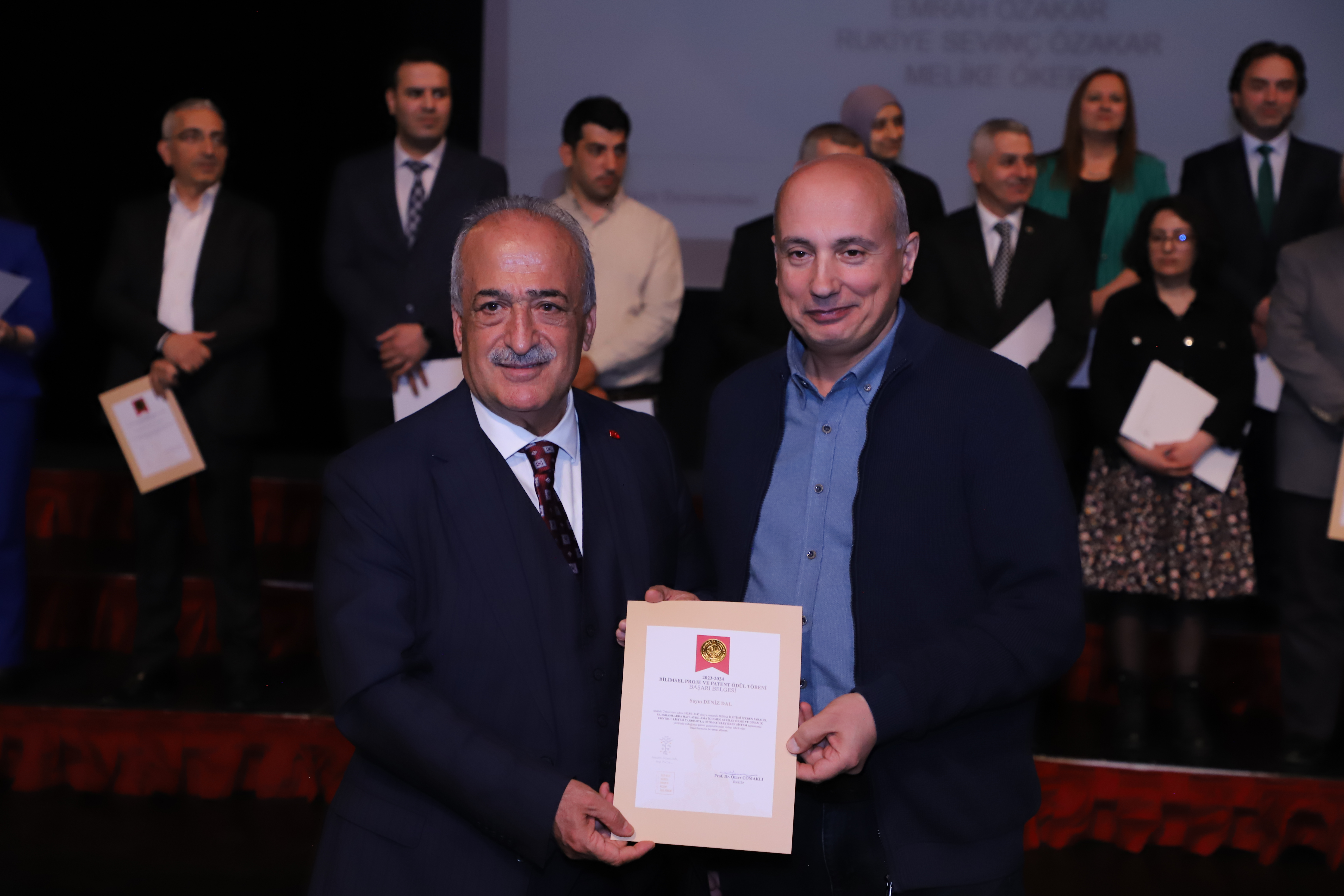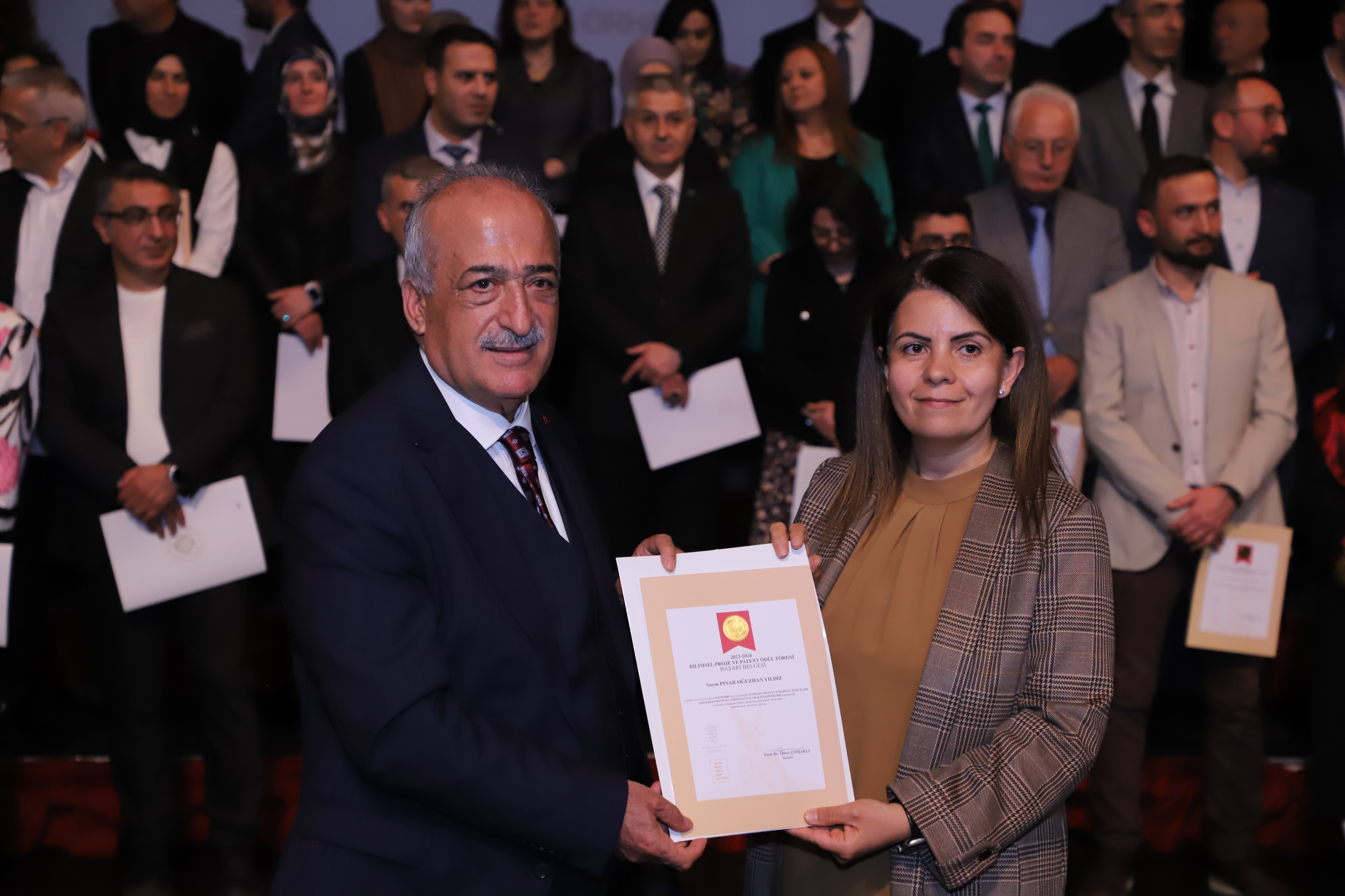 Prof. Dr. Ömer Çomaklı, the rector of Atatürk University, presented certificates of accomplishment to faculty members who submitted applications for a cumulative of 140 patents during the academic year 2023. Of these patents, 97 were classified as national and 43 as international.