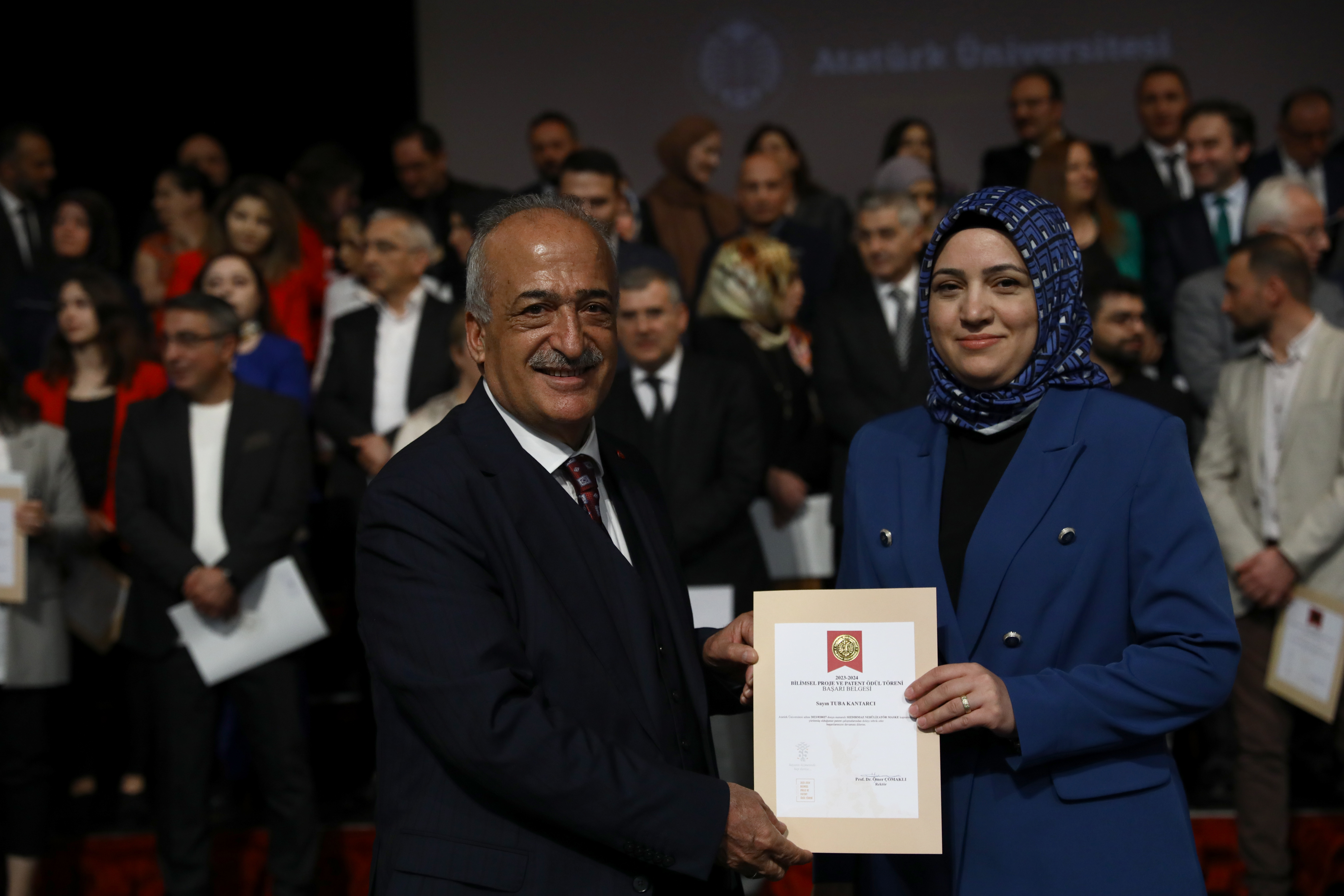 Atatürk University, which honors accomplished academic endeavors, has added a new ceremony to its repertoire. On July 15, the faculty members who were eligible to receive awards in relation to the patent applications submitted in 2023 gathered at the National Will Hall with their accompanied group members.
