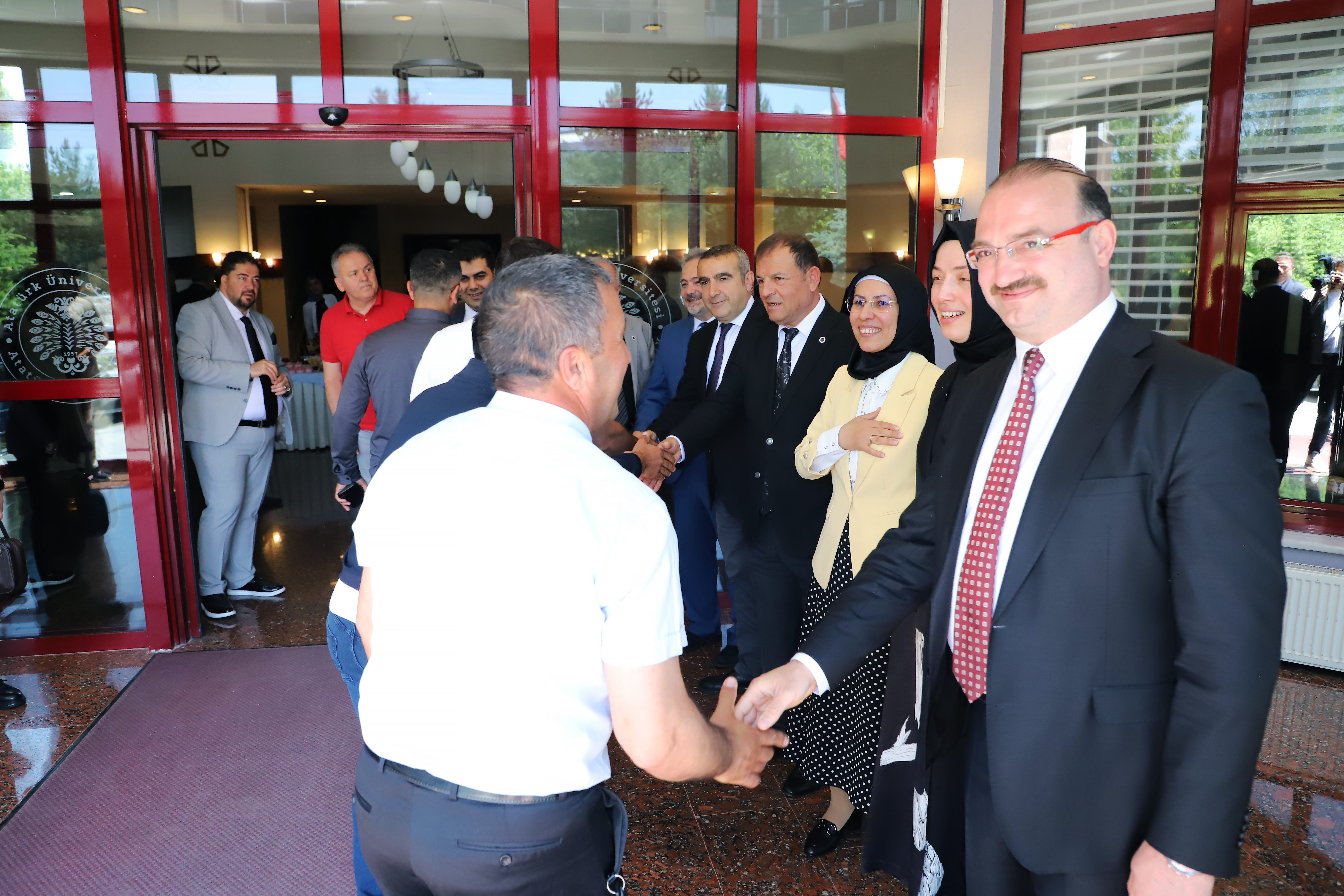 At the holiday celebration program, Rector Prof. Dr. Ahmet Hacımüftüoğlu underscored the importance of these events, which are deeply entrenched traditions of Atatürk University, in fostering a sense of unity and solidarity and strengthening institutional belonging. Rector Hacımüftüoğlu stated, "These significant days, during which we convene with our academic and administrative staff, serve to fortify our university's sense of unity." We place a high value on programs that enhance the value of collaboration, production, and sharing. I once again extend my congratulations to our members and the entire Islamic world on the occasion of Eid al-Adha, and I aspire for it to serve as a catalyst for the cessation of global oppression.