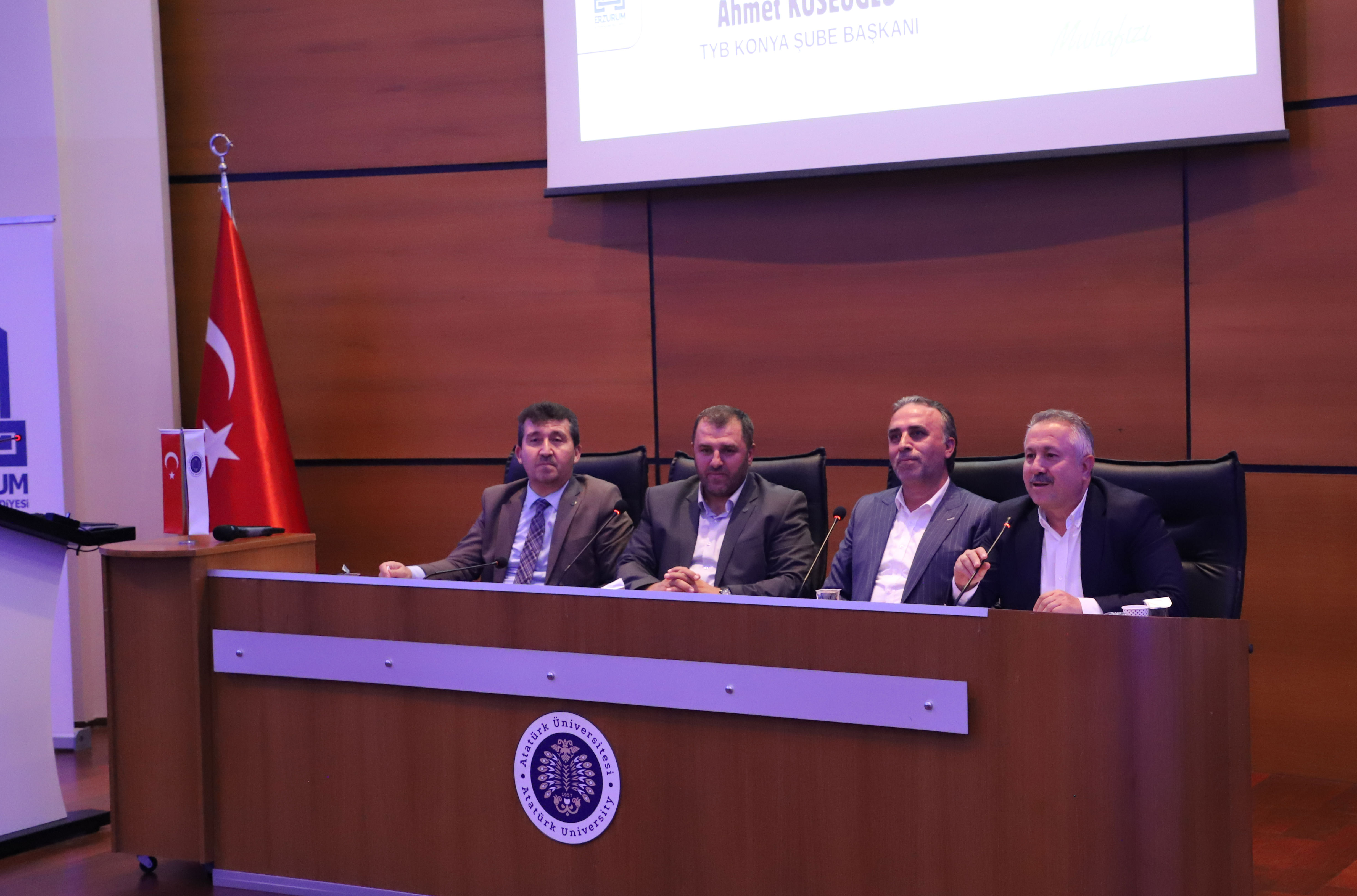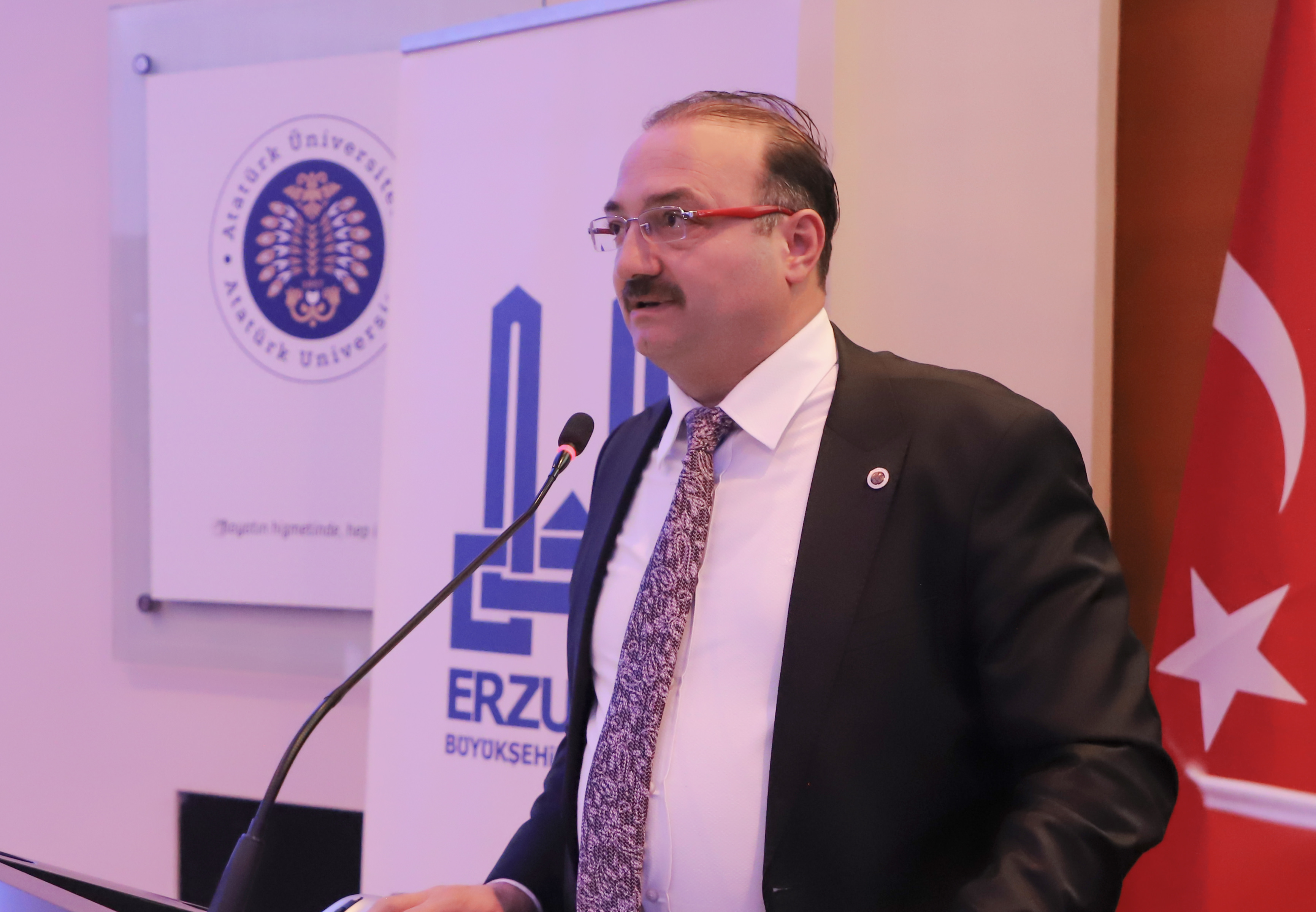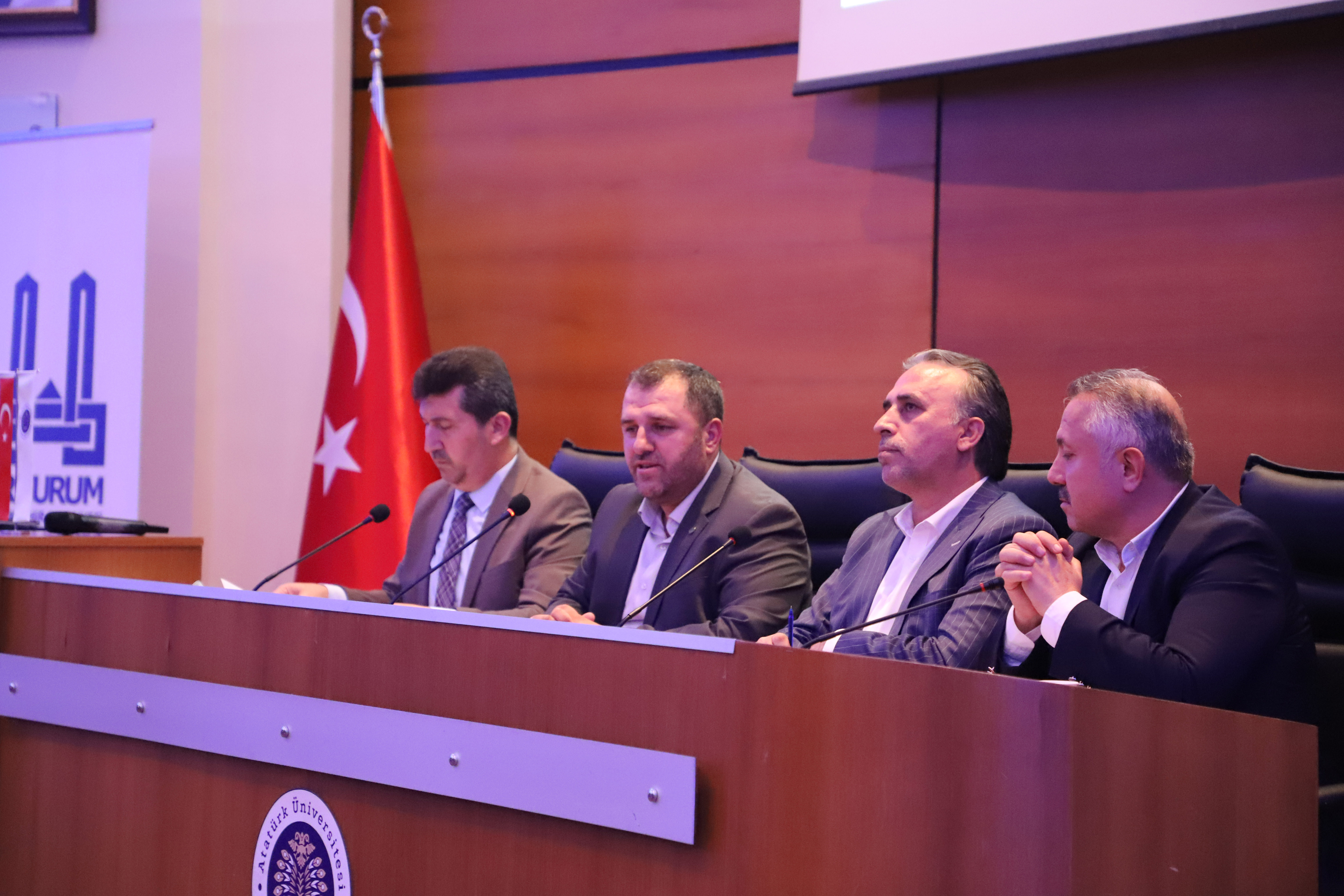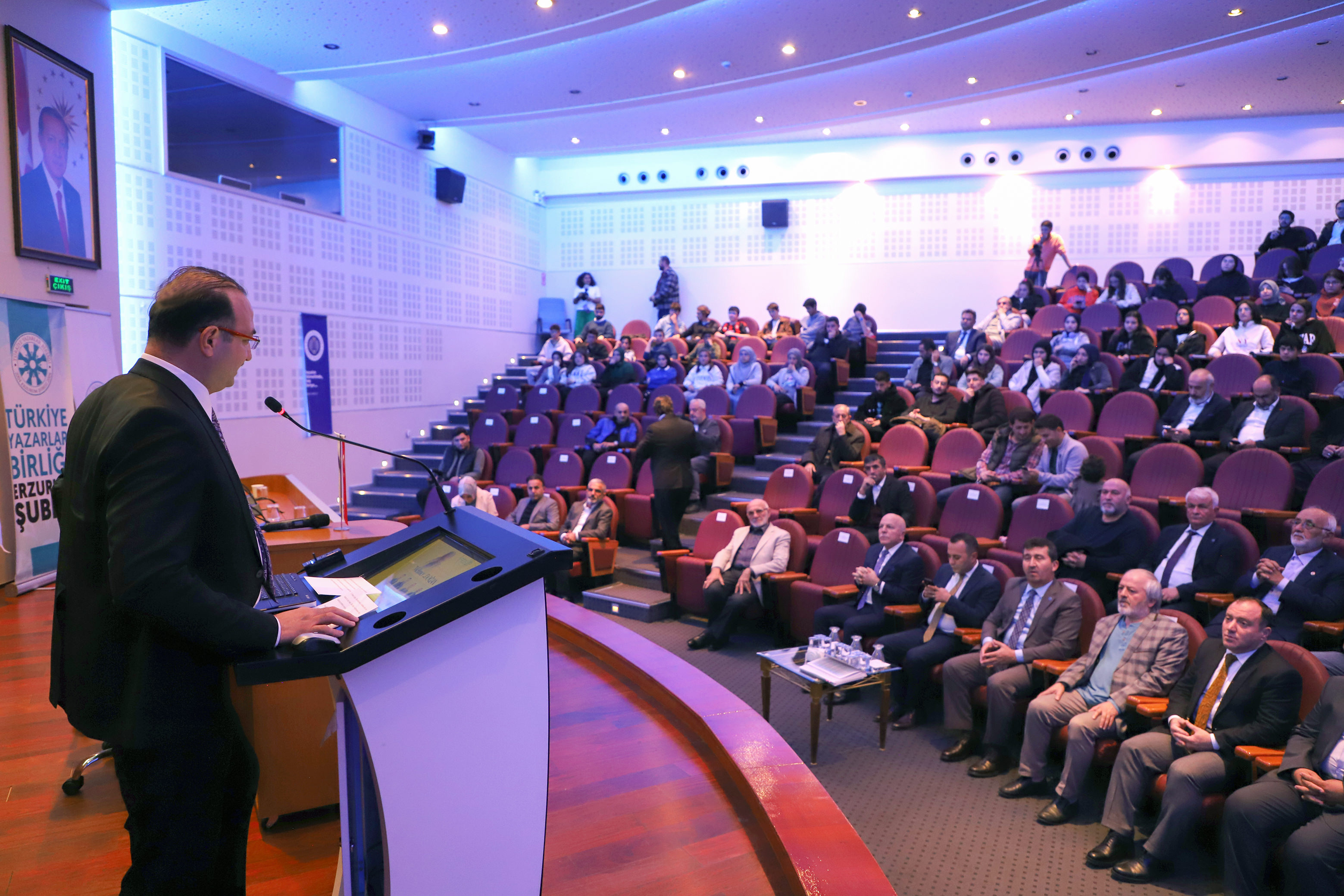 In the panel moderated by TYB Erzurum Branch President Mehmet Gözütok, Ankara Social Sciences University Rector and TYB General President Prof. Dr. Musa Kazım Arıcan delivered presentations titled "A Philosopher's Life," "A Cultural Alperen," and "The Noble Guardian of Words," respectively, following the opening speeches.