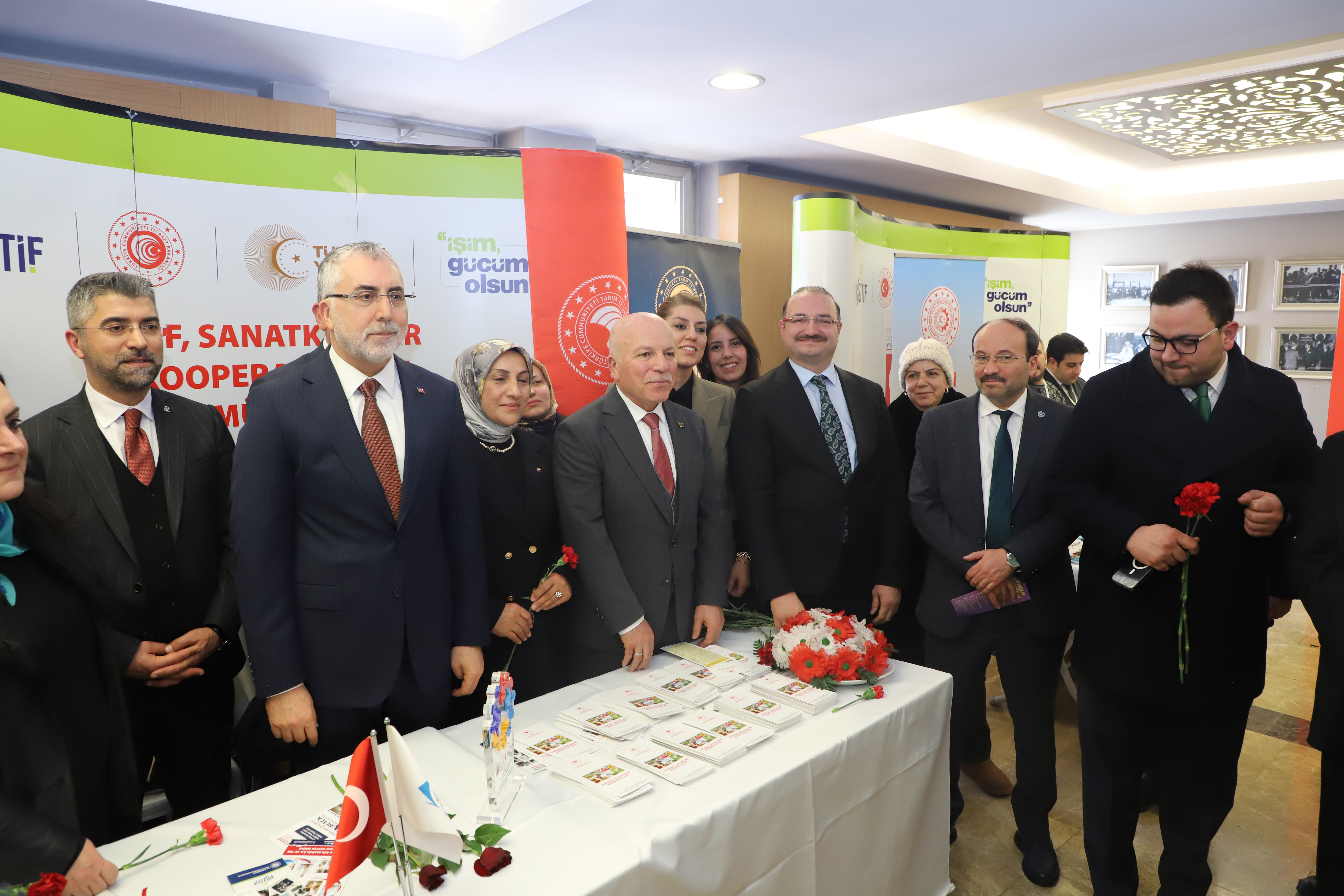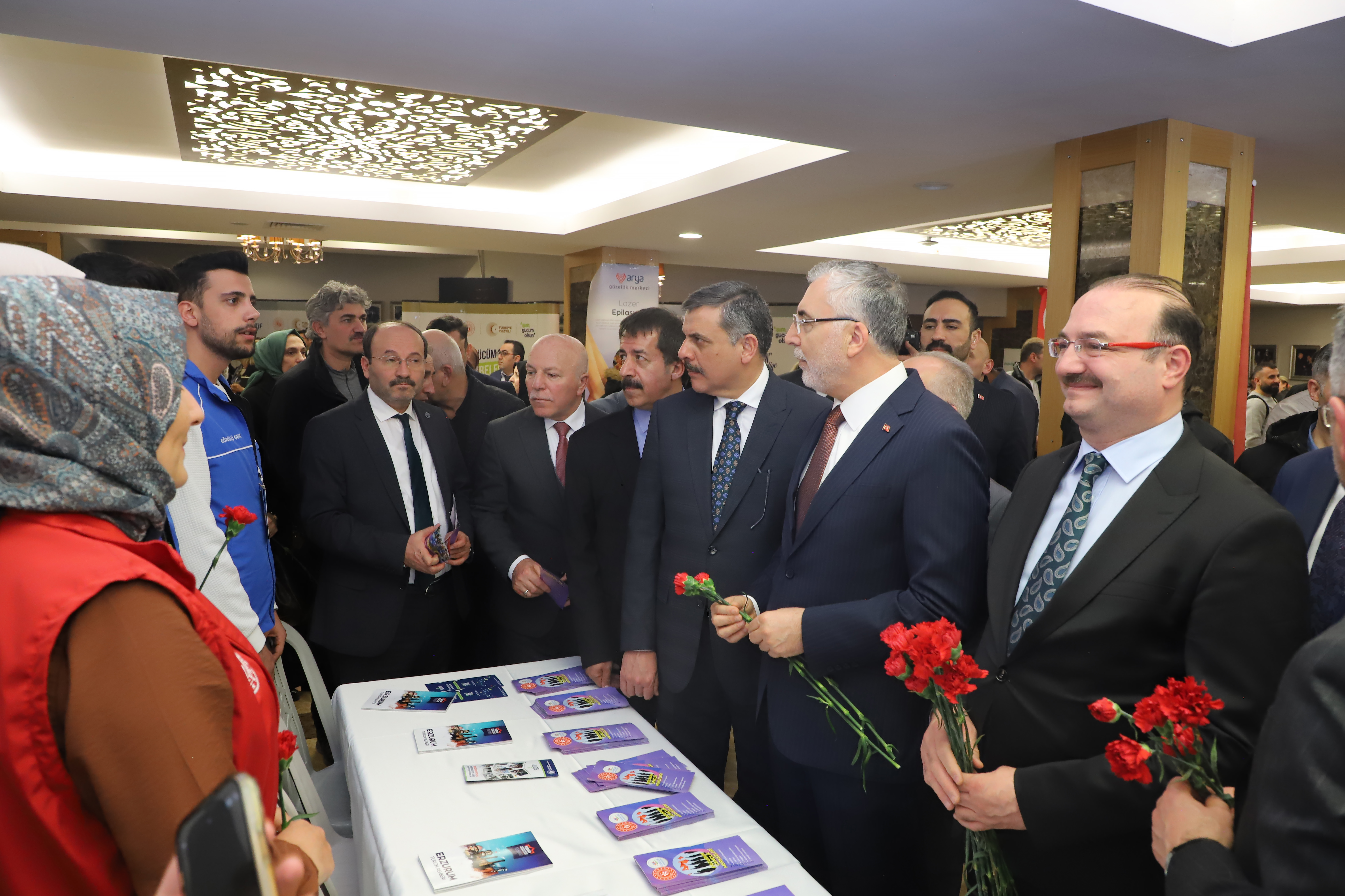 Plaques were distributed to the business proprietors in the city who employ the most women as part of the initiative. Minister Işıkhan and his delegation visited the "Women's Employment Fair" at the Atatürk University foyer area, where they inspected the exhibits and distributed carnations to the female attendees.
