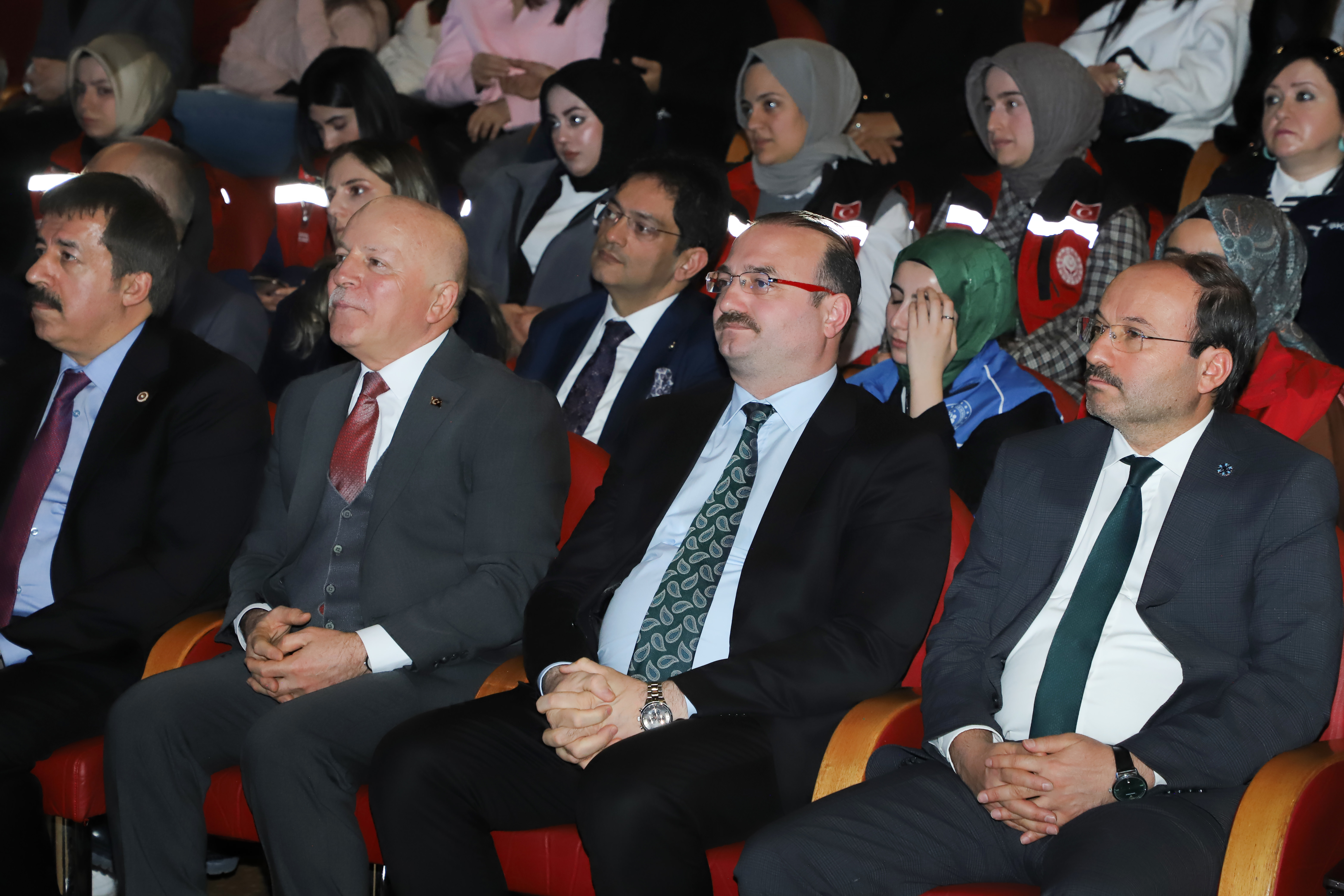 The Cultural Center July 15 National Will Hall hosted a program that was attended by a number of distinguished individuals, including former Minister of Internal Affairs and Erzurum Deputy Selami Altınok, Erzurum Deputies Abdurrahim Fırat and Prof. Dr. Kamil Aydın, Erzurum Governor Mustafa Çiftçi, Erzurum Metropolitan Municipality Mayor Mehmet Sekmen, Erzurum Technical University (ETU) Rector Prof. Dr. Bülent Çakmak, academicians, administrative, bureaucratic, and military officials, as well as numerous students and citizens.