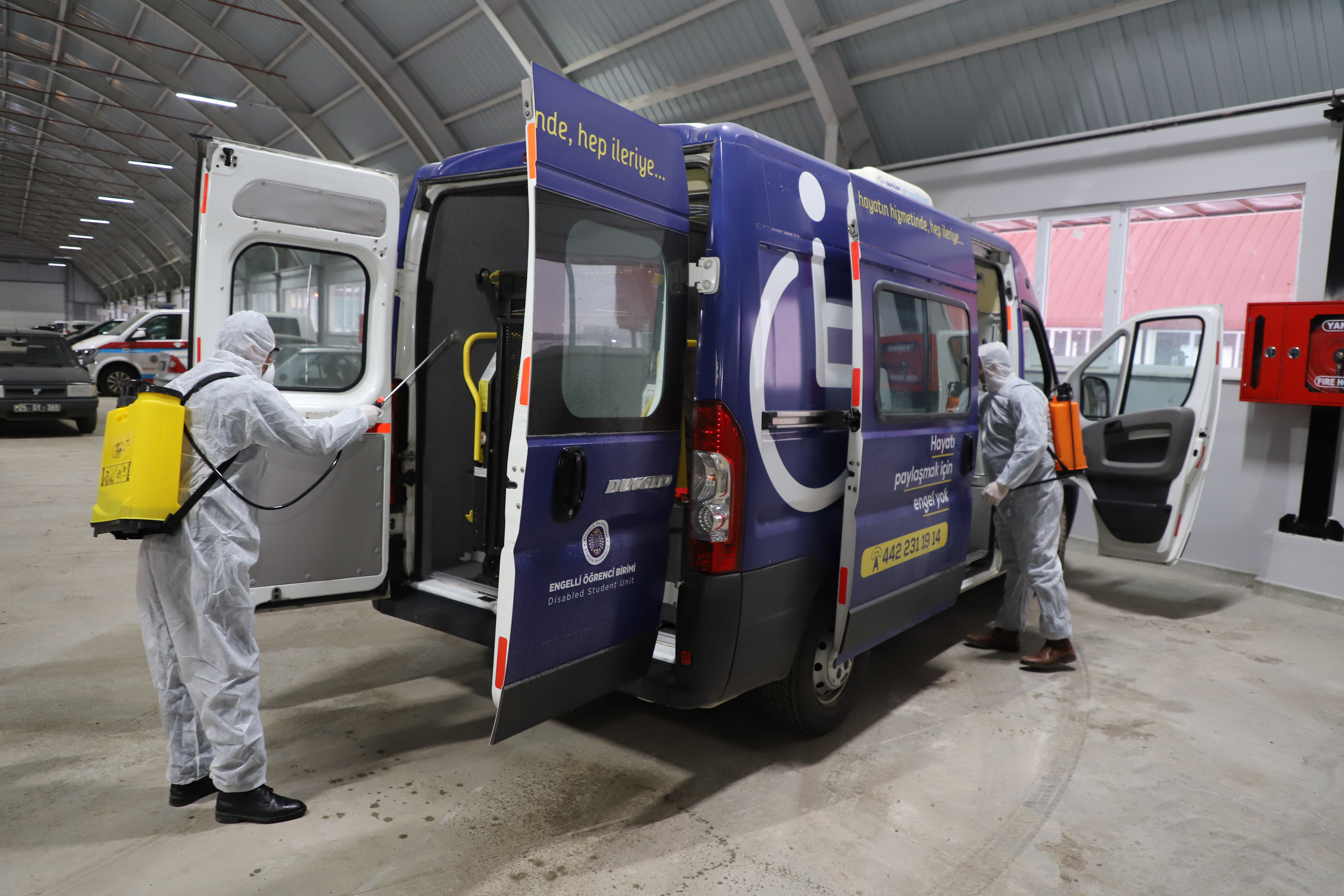 Atatürk University Rector. Dr. Ömer Çomaklı Disinfection processes were initiated in all academic and administrative units with solutions prepared in line with the instructions and the recommendations faculty members in the Faculty of Science, Pharmacy and Engineering.