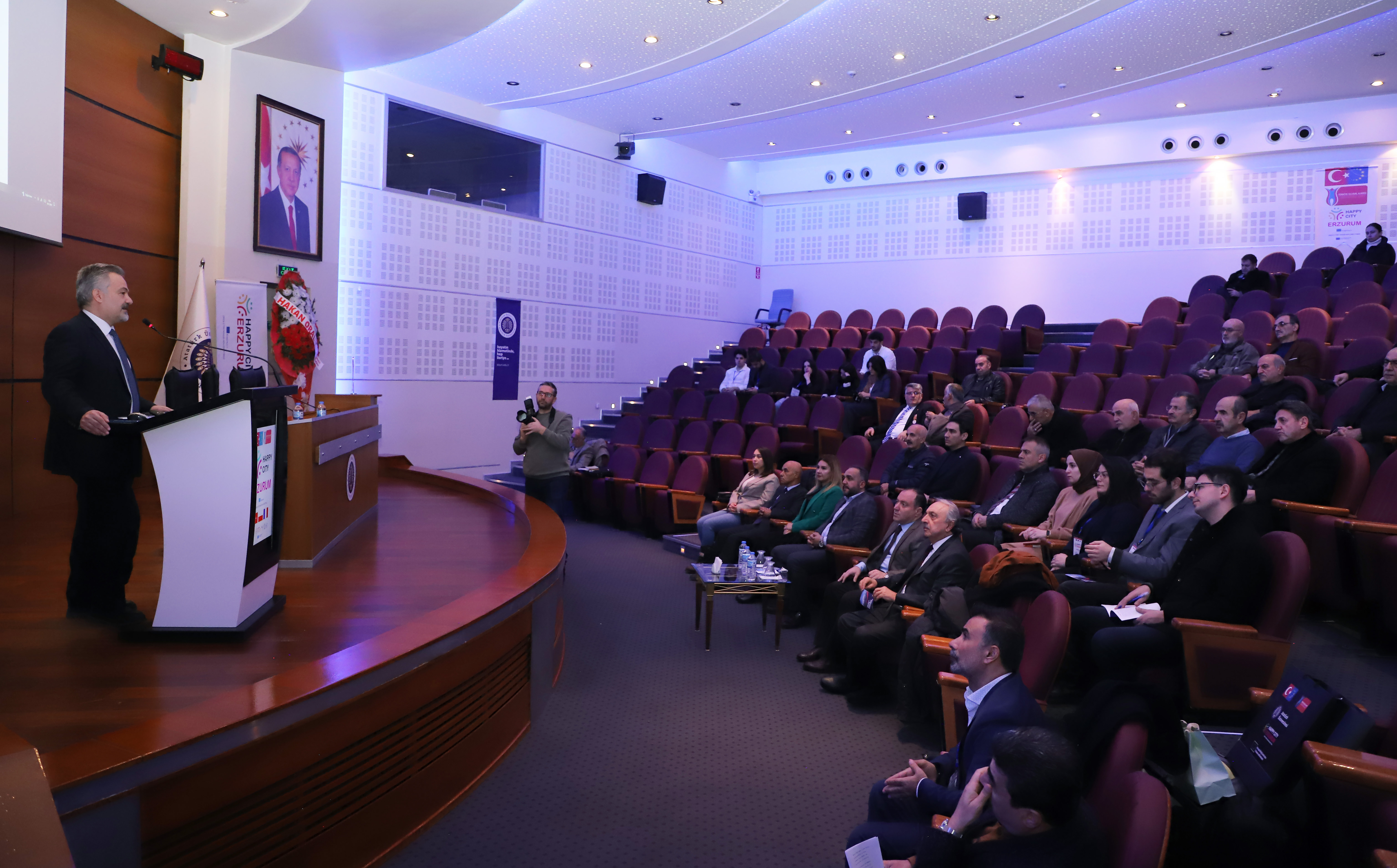 Project Coordinator Prof. Dr. Abdulhak Halim Ulaş delivered the opening speech of the program in the Prof. Dr. Kemal Bıyıkoğlu Hall, which was attended by Atatürk University Vice Rector Prof. Dr. Bülent Çavuşoğlu, Provincial Director of National Education Yakup Yıldız, academicians, and numerous students. Prof. Dr. Ulaş declared that the project will be implemented in collaboration with official and non-governmental organizations. He underscored the importance of the educational activities that will be conducted within this framework in enhancing the city's well-being.