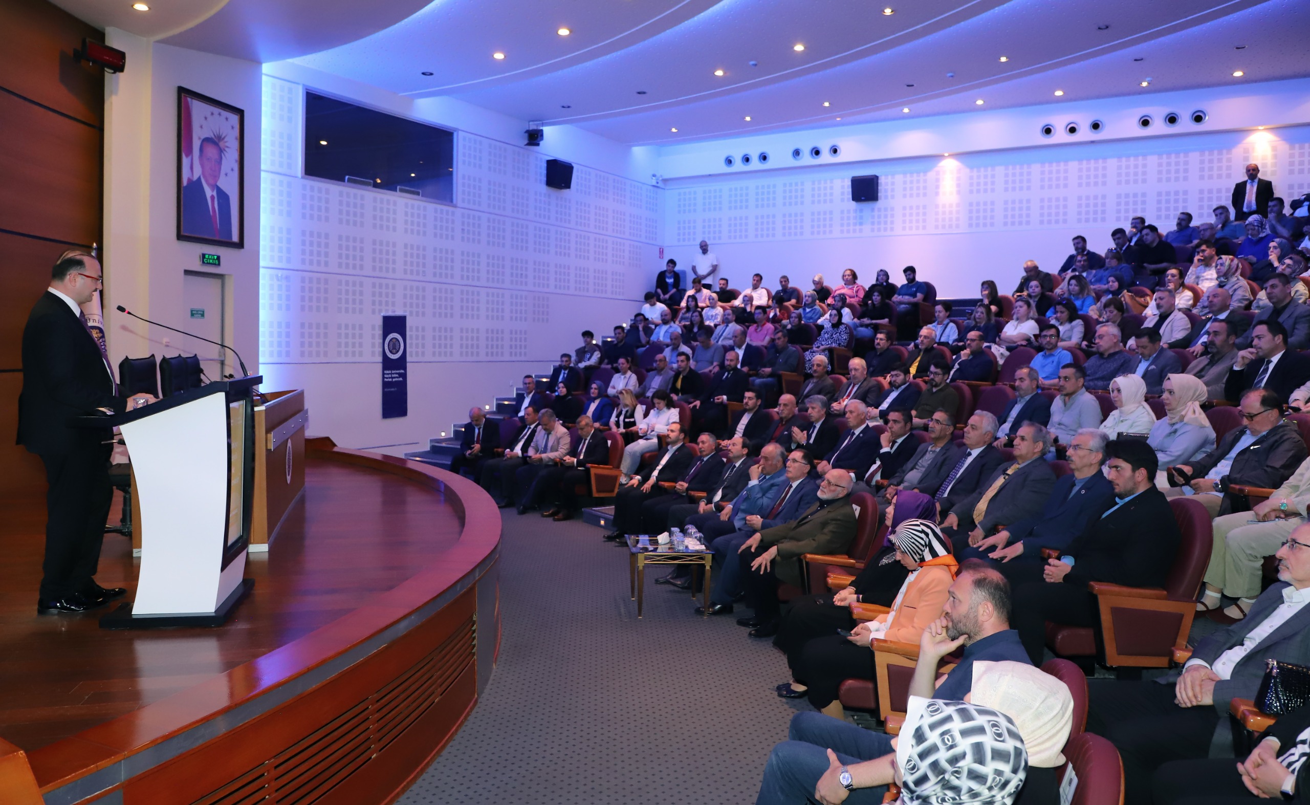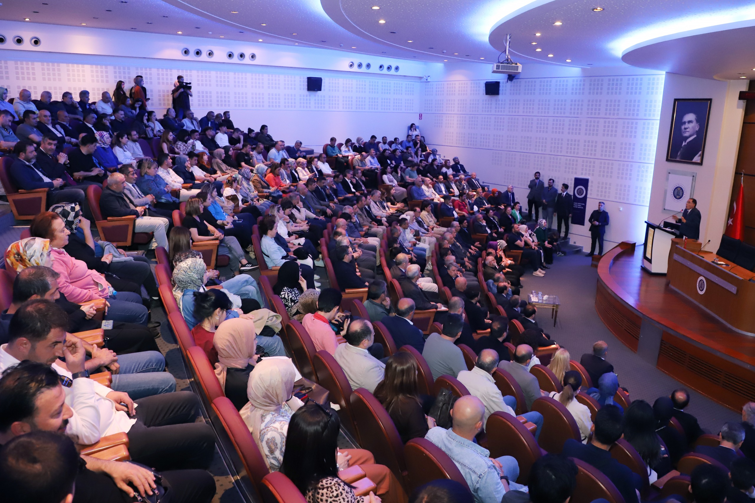 Former National Security Council Secretary General Seyfullah Hacımüftüoğlu, Atatürk University President Prof. Dr. Ahmet Hacımüftüoğlu, Erzurum Technical University President Prof. Dr. Bülent Çakmak, vice rectors, academics, invitees, and numerous students attended the program held in the Cultural Centre Prof. Dr. Kemal Bıyıkoğlu Conference Hall.