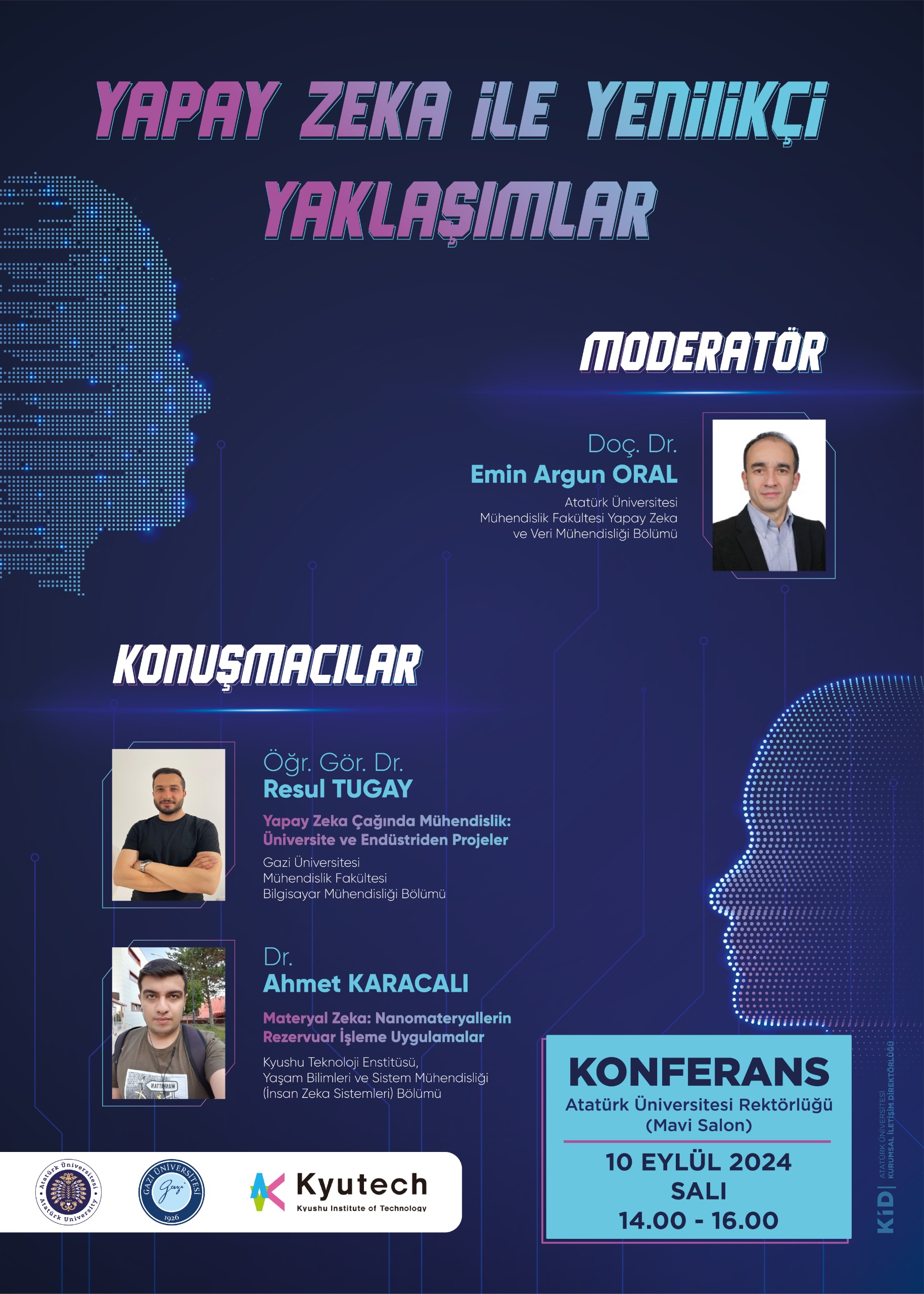 An important conference was held at Atatürk University, during which innovative technologies were the subject of discussion. The University's Cultural Centre Prof. Dr. Kemal Bıyıkoğlu Hall was the site of the conference on Innovative Approaches with Artificial Intelligence. Assoc. Prof. Dr. Emin Argun Oral, a faculty member of the Faculty of Engineering, moderated the conference.