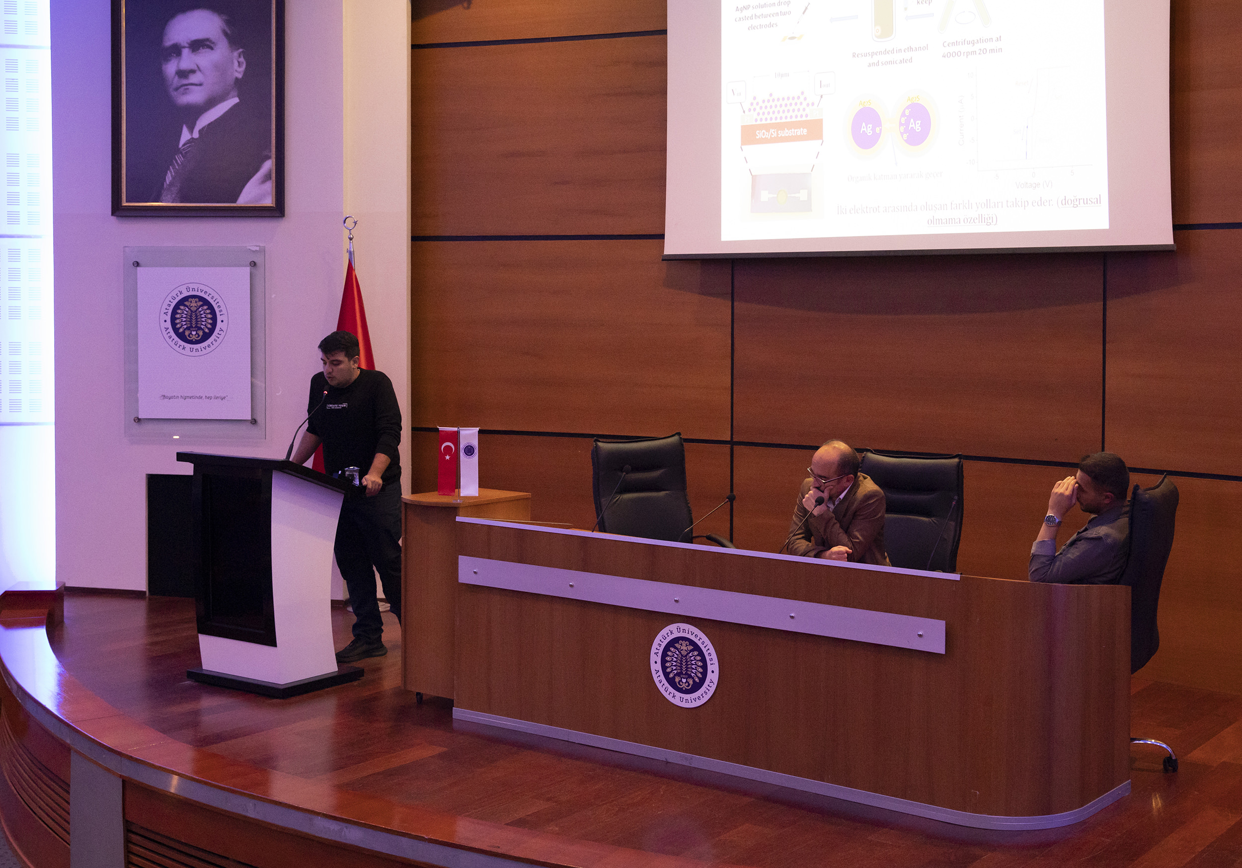 The most recent advancements in the field of artificial intelligence were the subject of discussion at the event, which was enhanced by the presentations of Lecturer Dr. Resul Tugay from Gazi University and Dr. Ahmet Karacalı from Kyushu Institute of Technology. Dr. Tugay delivered a presentation entitled "Engineering in the Age of Artificial Intelligence: Projects from University and Industry" in which he underscored the significance and function of artificial intelligence in industrial and engineering applications. Dr. Karacalı delivered a presentation entitled "Material Intelligence: Reservoir Processing Applications of Nanomaterials." He elucidated the revolutionary potential of artificial intelligence to optimise nanomaterials in reservoir processing.