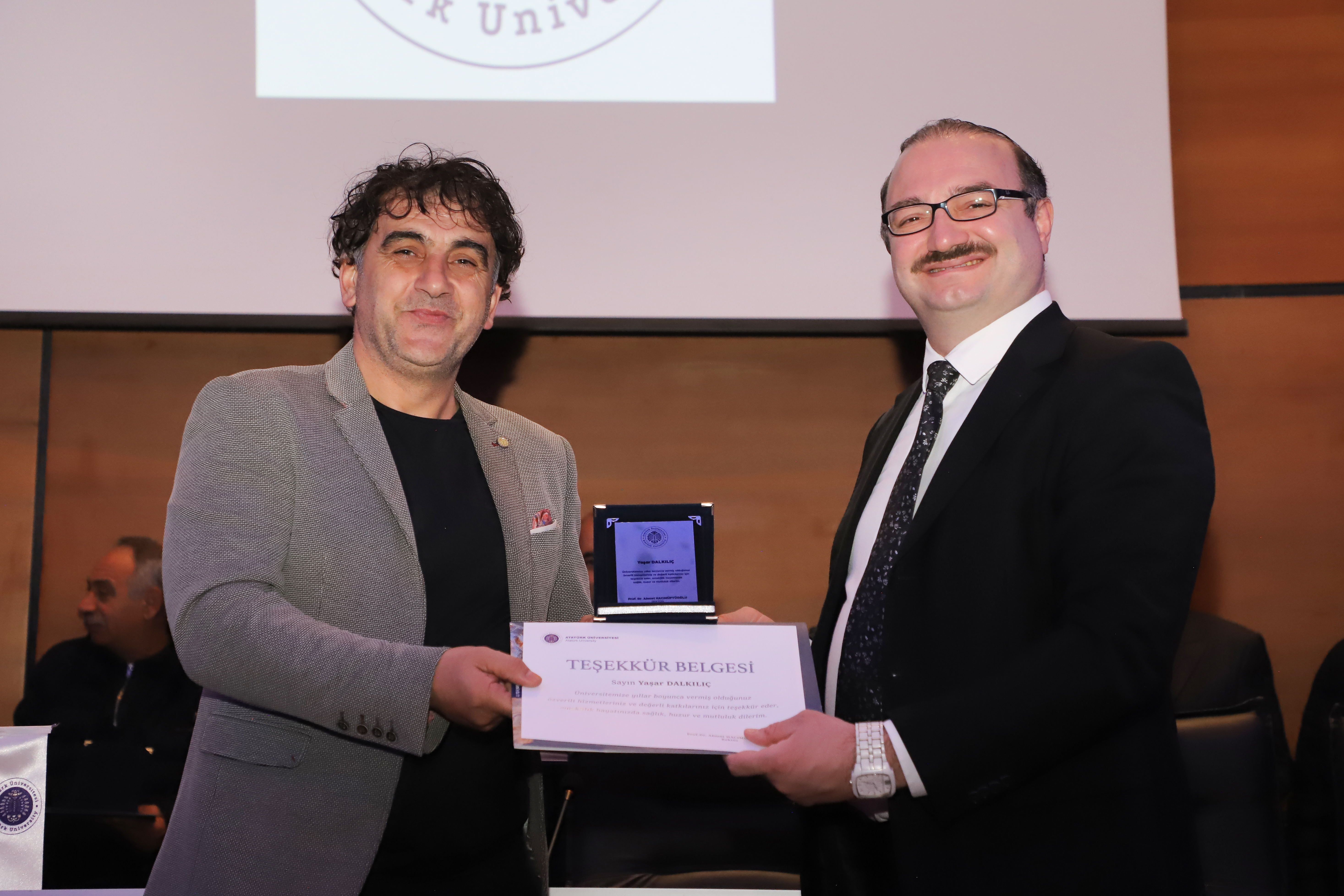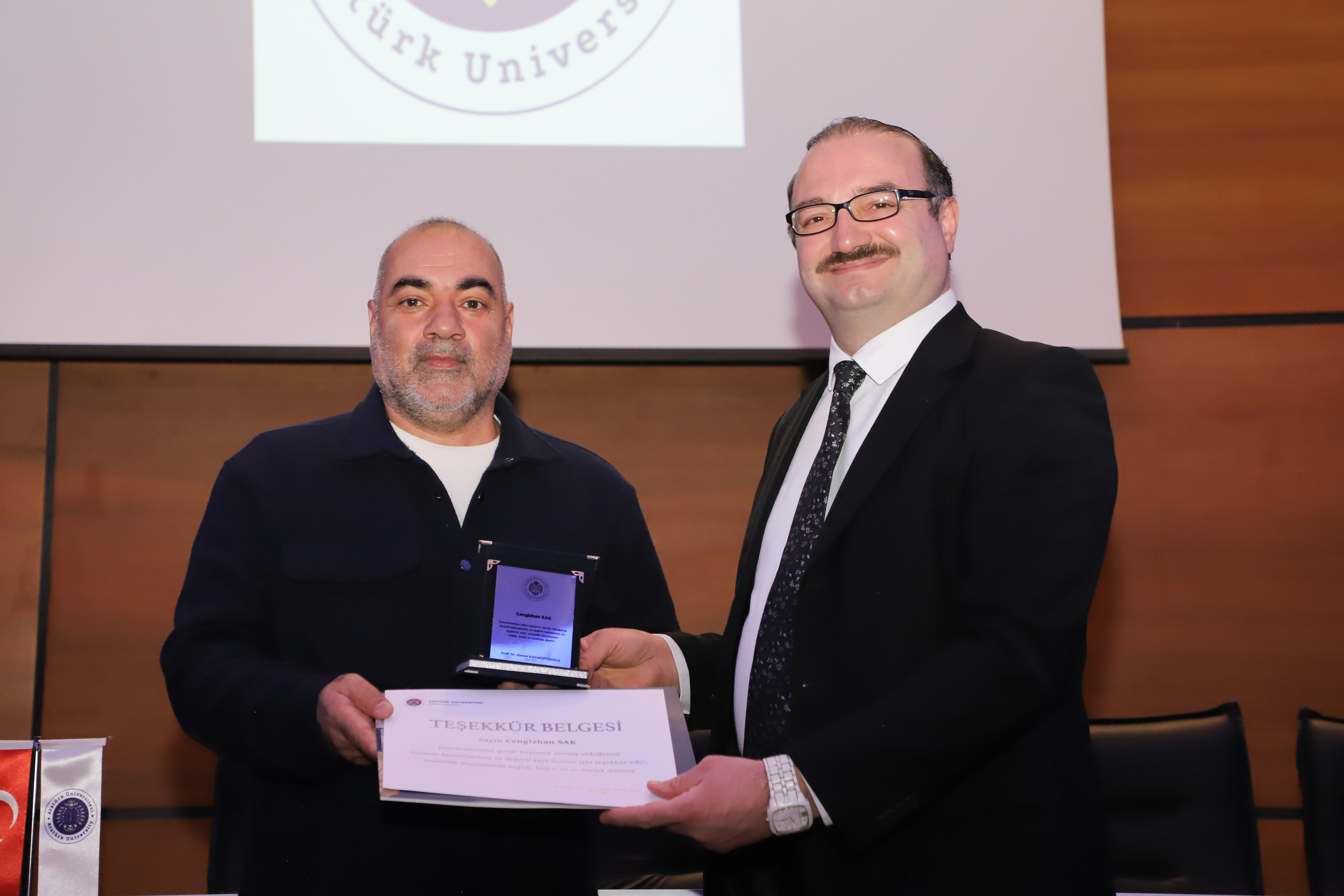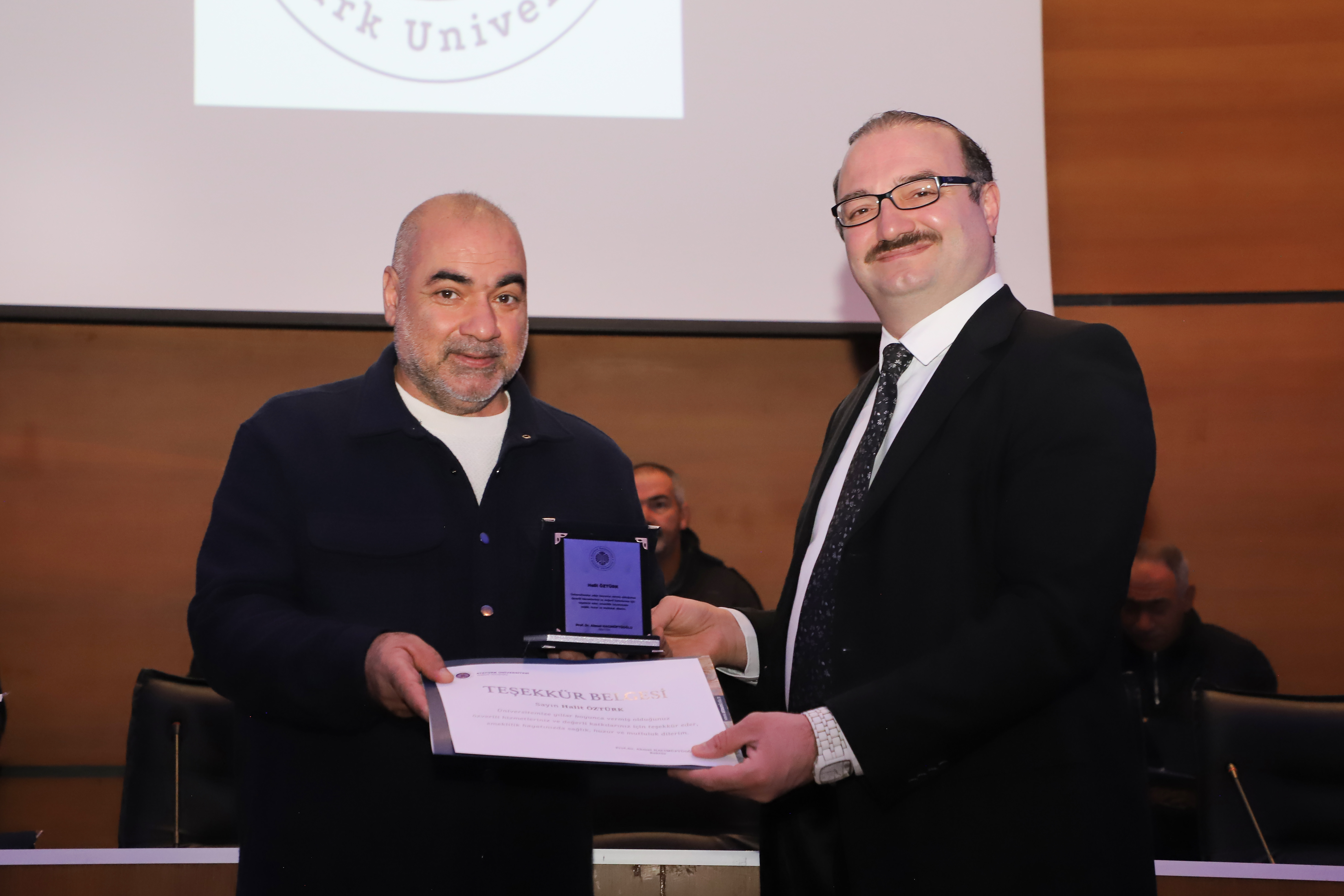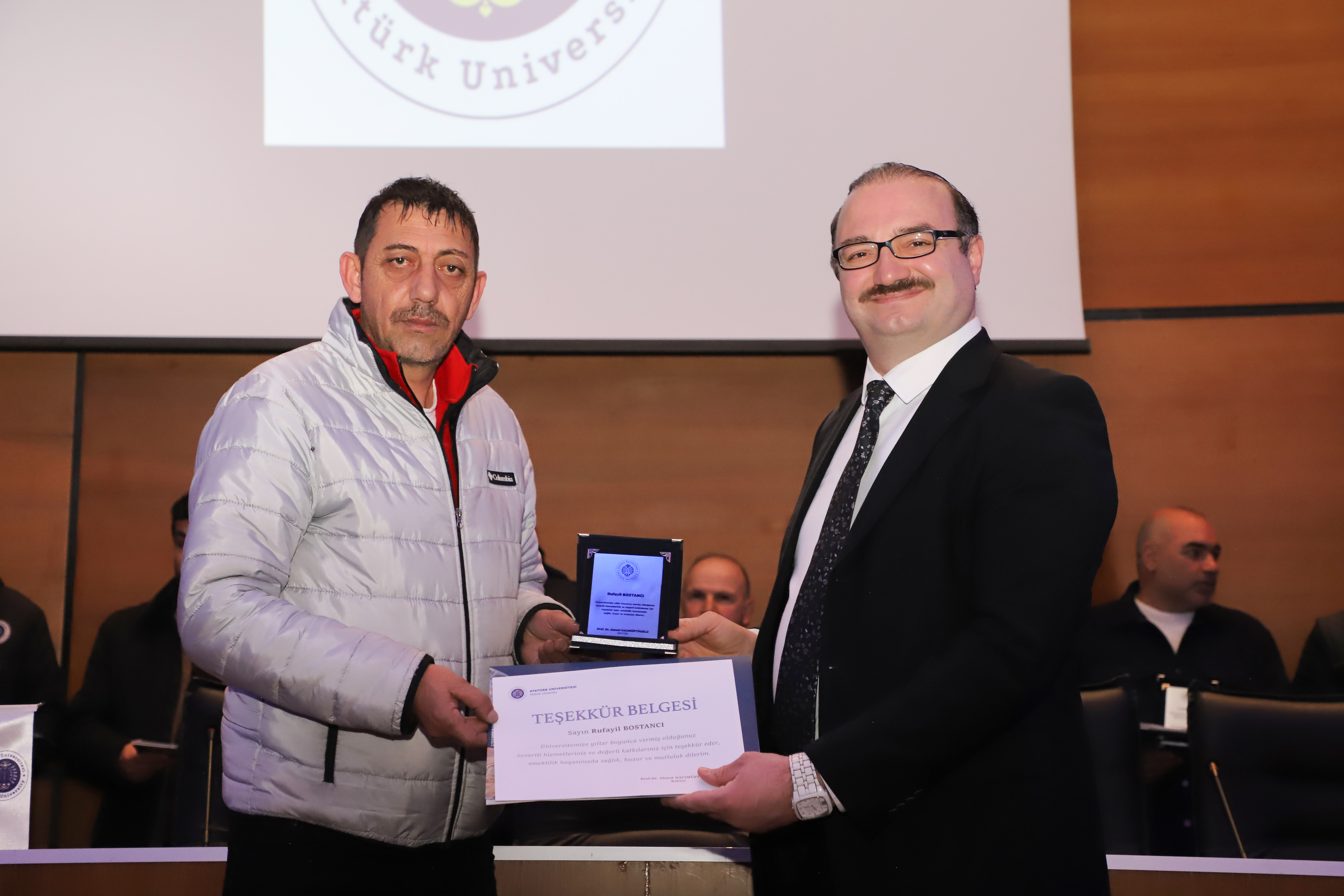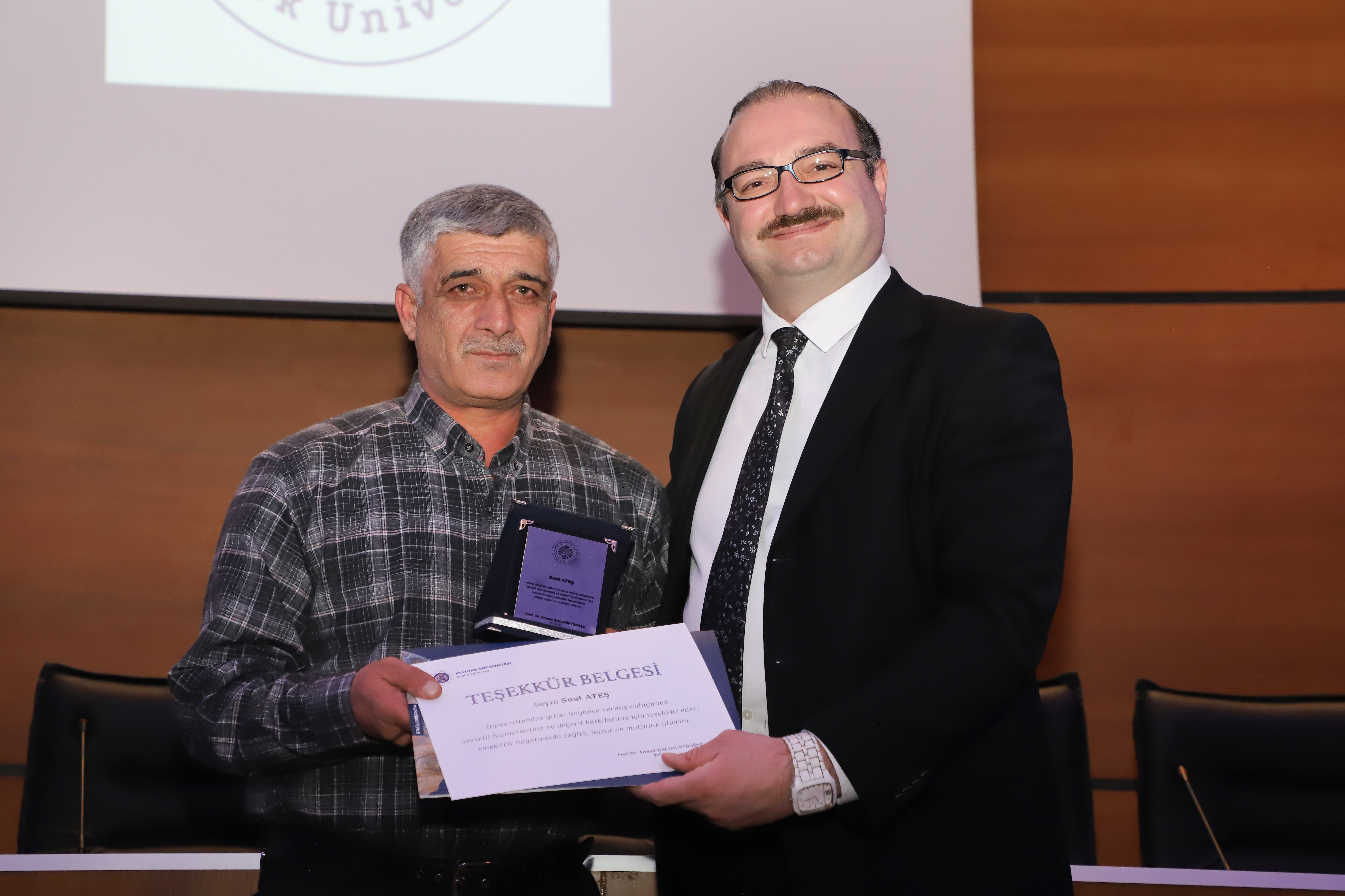 Prof. Dr. Ahmet Hacımüftüoğlu, the Rector of Atatürk University, began his opening address by recognizing the contributions of the personnel who have contributed to the university's development. He stated, "Atatürk University is a large family that is shaped by a deep-rooted tradition and a sense of belonging, transcending the confines of an educational institution." During their tenure in office, each member of this family has made a valuable contribution to the advancement of our university by utilizing their experiences and knowledge. We are currently experiencing a mixture of emotions as we bid farewell to our esteemed colleagues who have dedicated a significant amount of time to our university. Your loyalty and devotion to the institution, as well as the traces you have left behind, will always serve as a source of inspiration for us. "We, the Atatürk University family, extend our best wishes for a retirement life that is both happy and peaceful," he concluded.