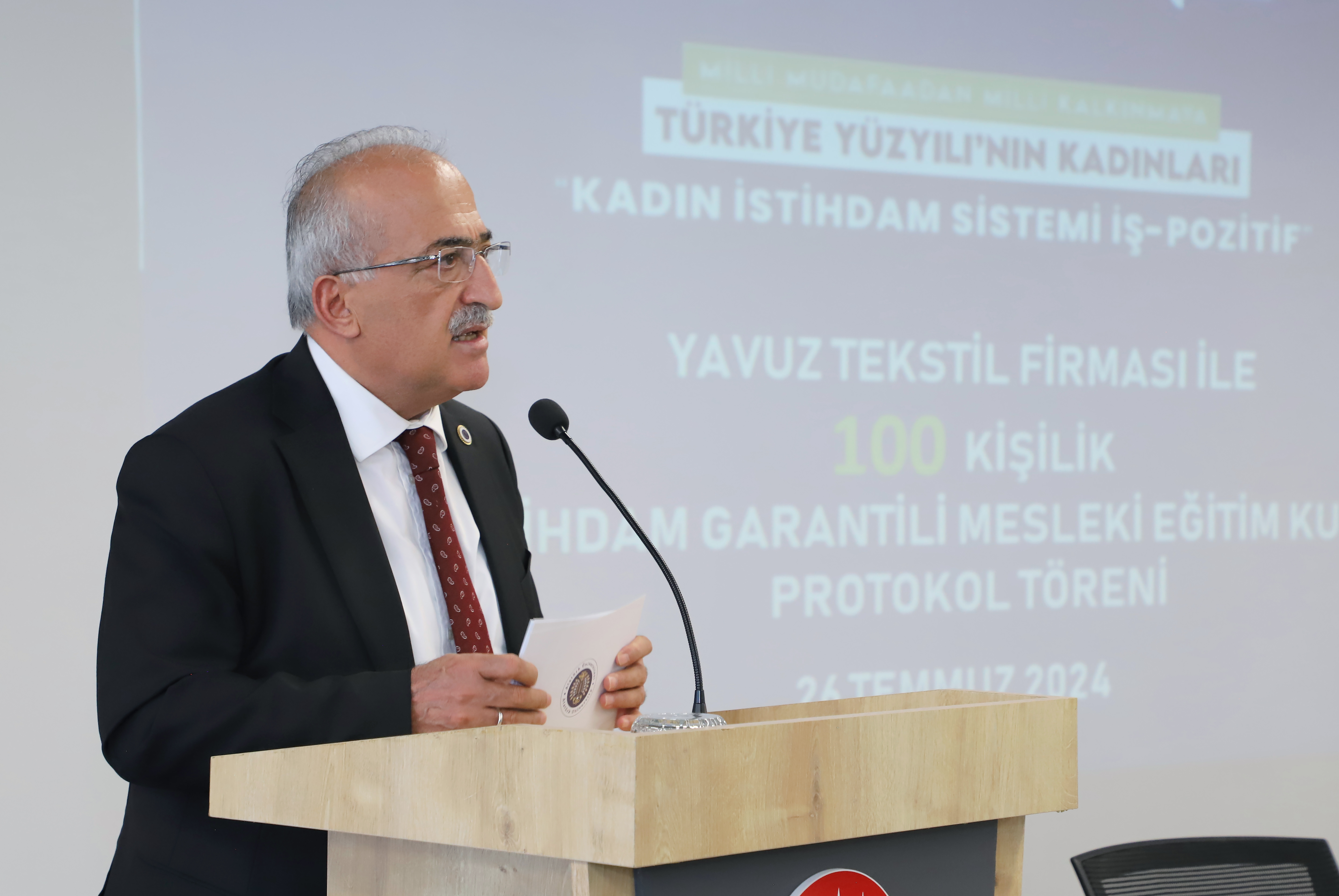Apart from Atatürk University Rector Prof. Dr. Ömer Çomaklı, Erzurum Metropolitan Municipality Mayor Mehmet Sekmen, AK Party Provincial Chairman İbrahim Küçükoğlu, İŞKUR Erzurum Provincial Director Abdulkadir Mutlu, 1st Organised Industrial Zone President Murat Urkuç, Yavuz Tekstil General Manager Alaattin Torunoğlu, KOSGEB Provincial Director Lütfullah Aktaş and trainees attended the protocol ceremony.