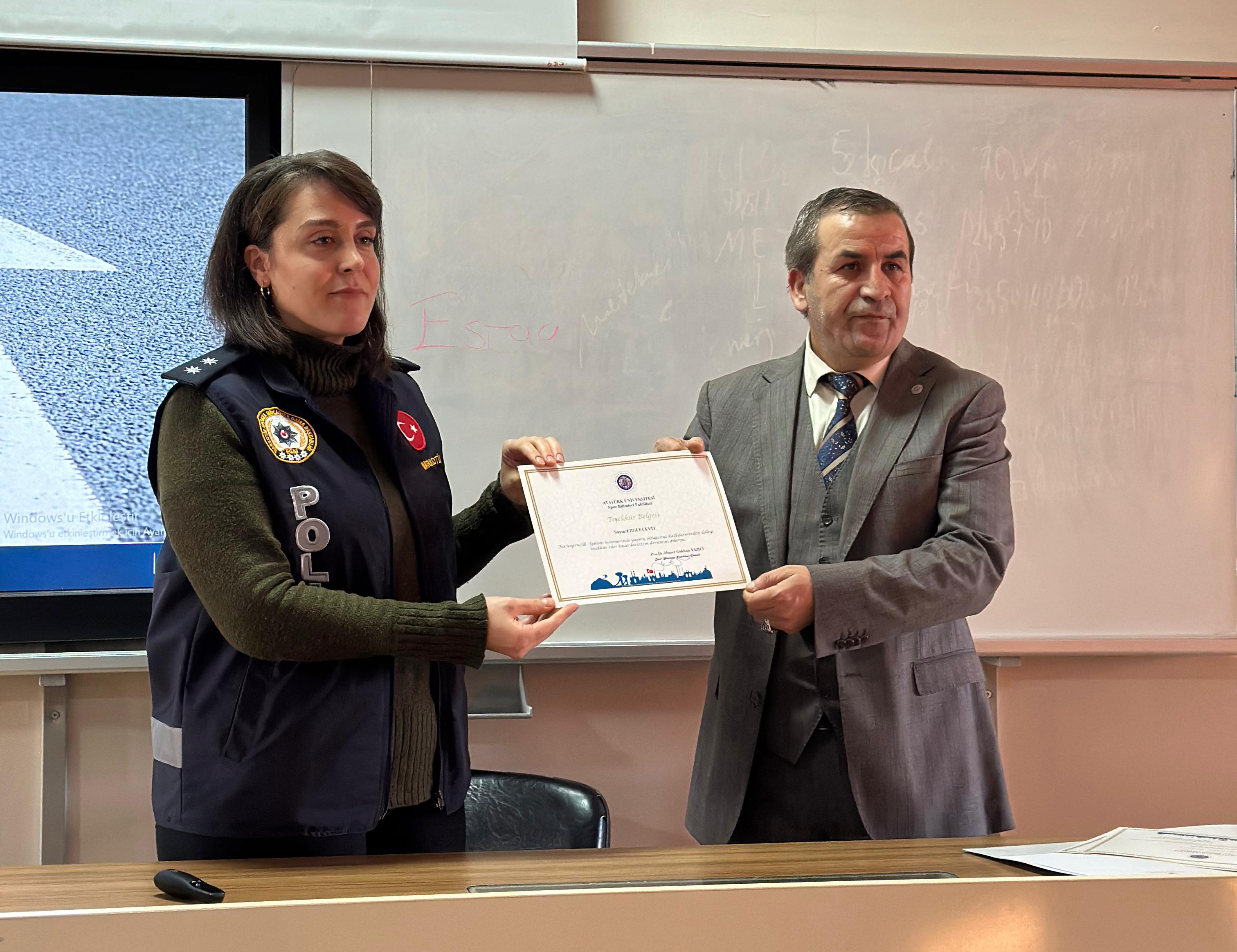Narkogençlik, an educational seminar organised by the Ataturk University Faculty of Sports Sciences, was attended by the Provincial Police Department and educators from Yeşilay. The purpose of the seminar was to increase student awareness of substance use and addiction.