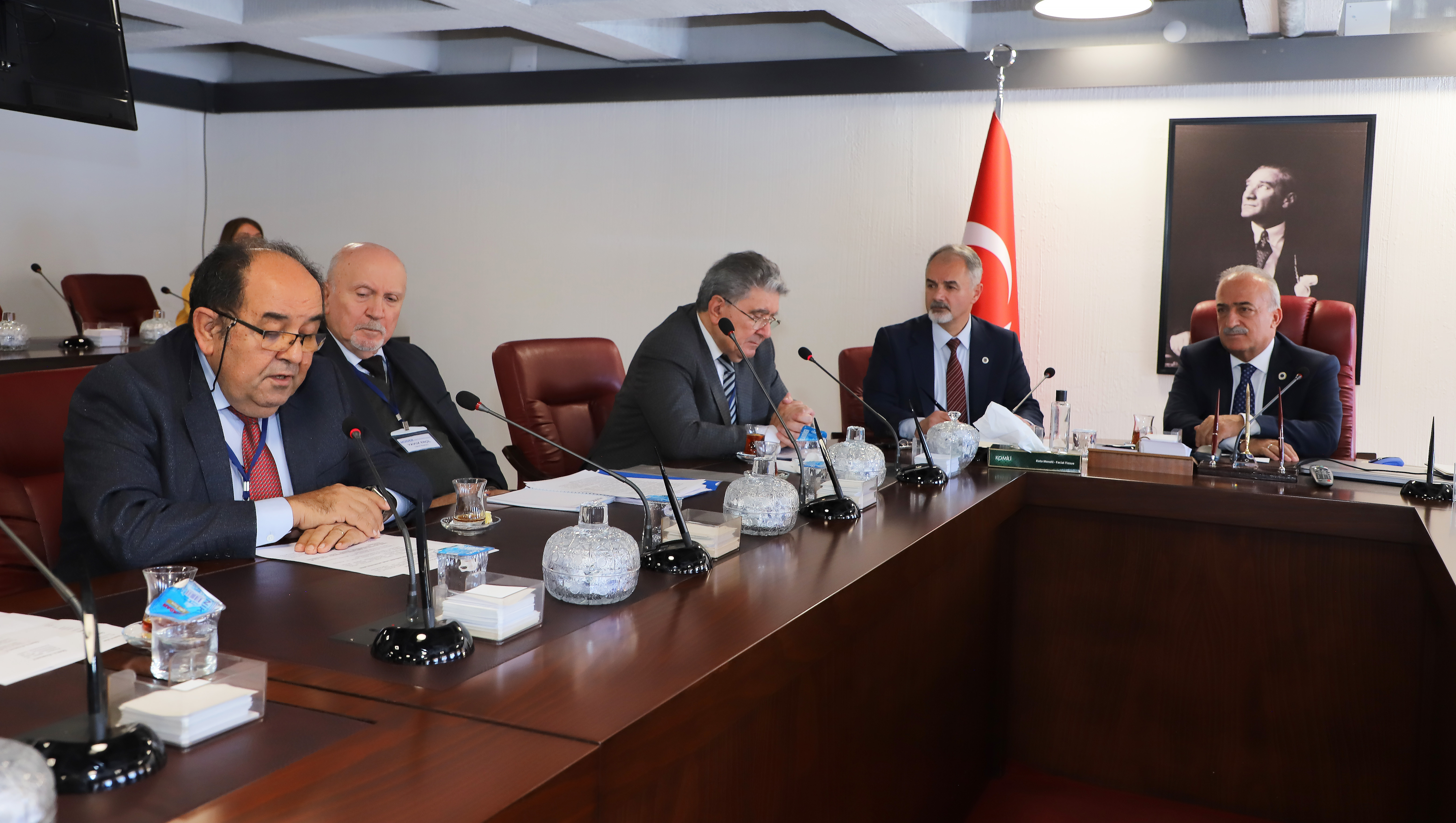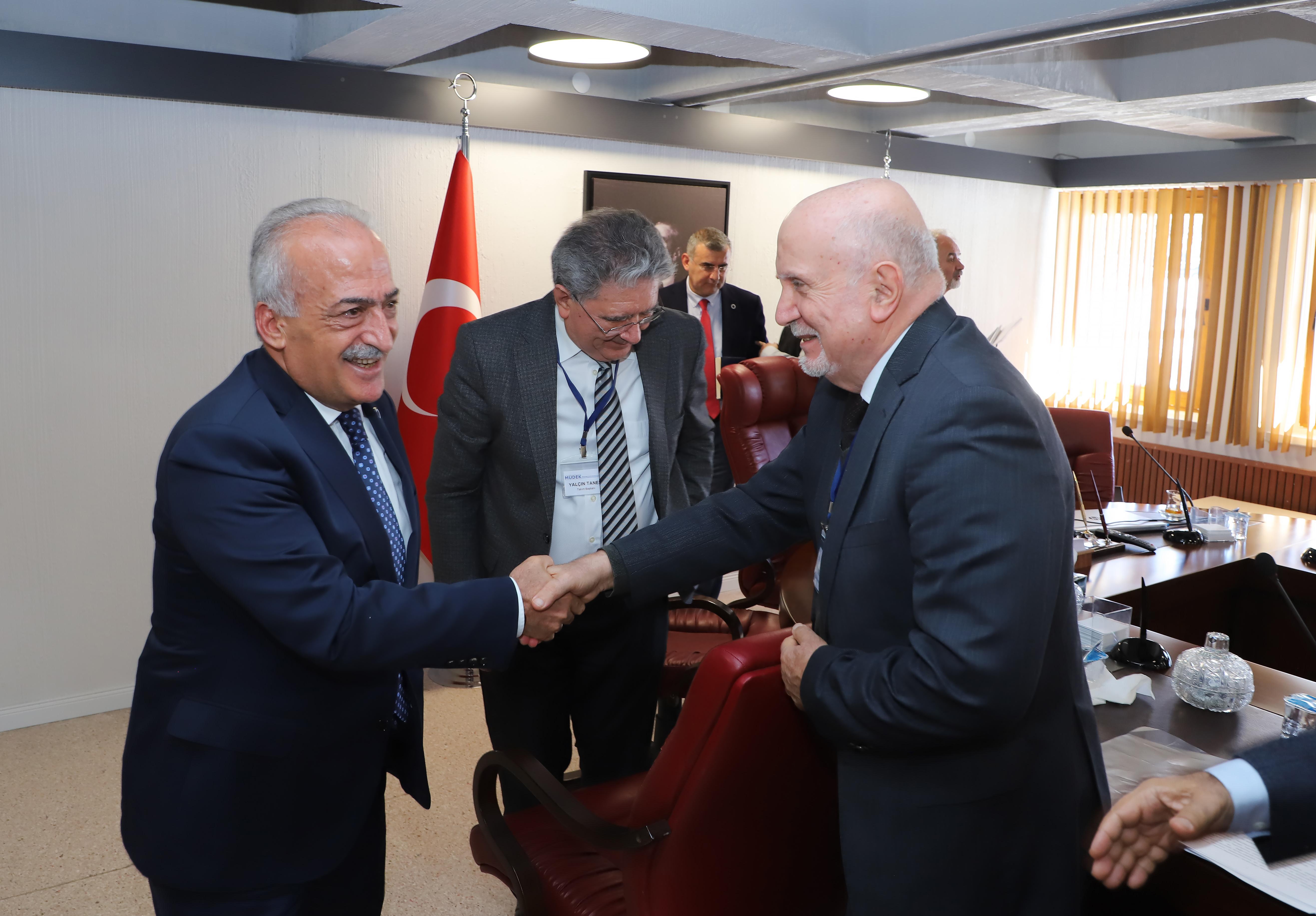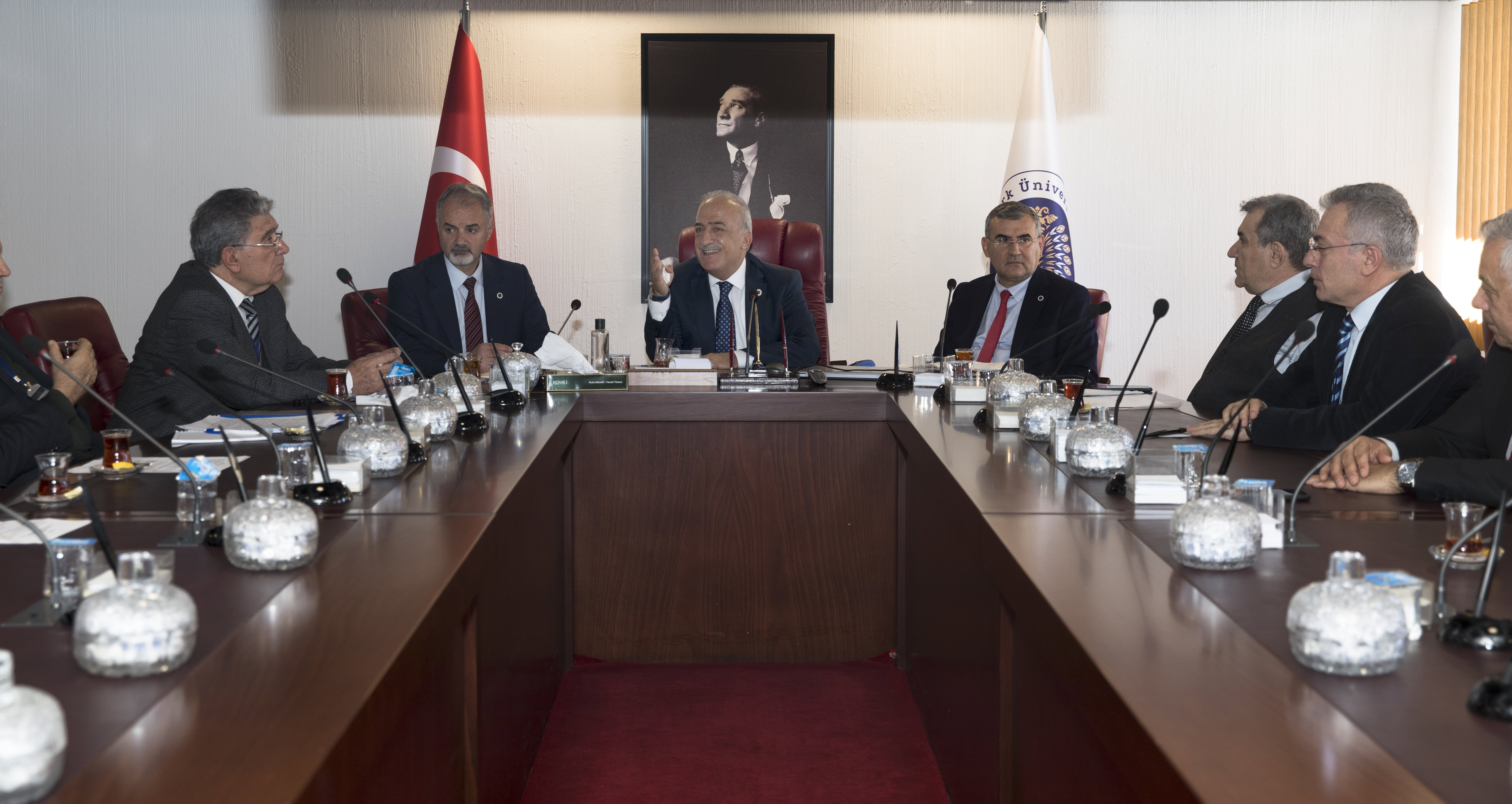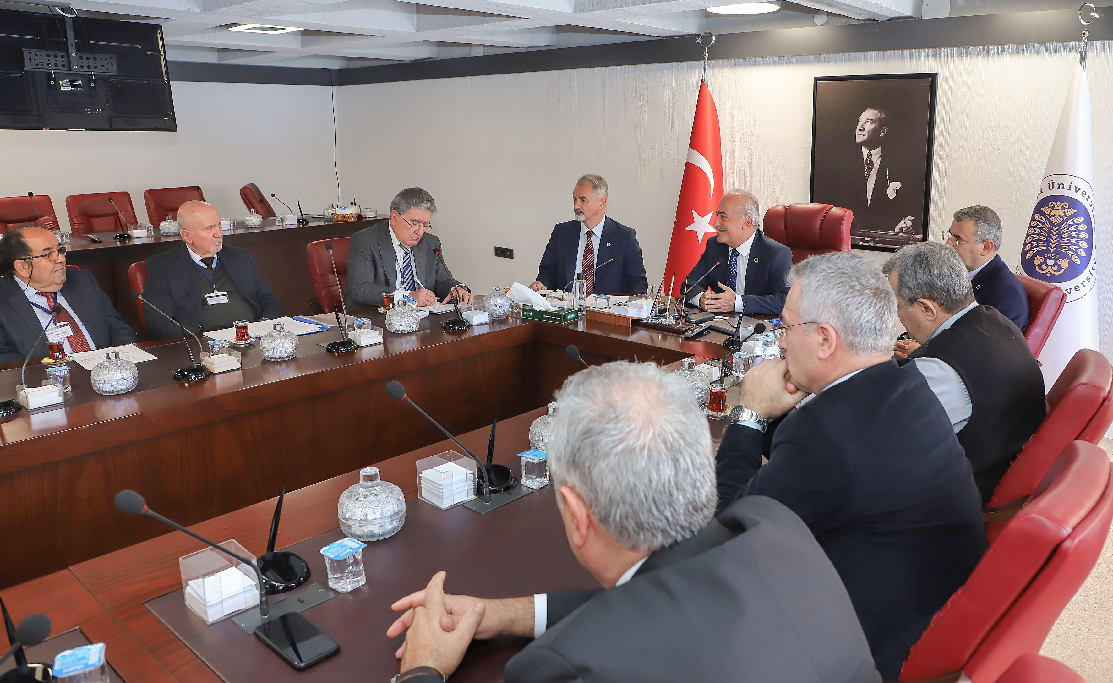 Engineering Education Programs Evaluation and Accreditation officials visited Atatürk University from November 26-28, 2023, in order to accredit programs offered by the Faculty of Agriculture within the Faculty of Engineering, namely Civil Engineering, (Formal Education) Chemical Engineering, (Formal Education) Mechanical Engineering (Formal Education), and Food Engineering. Following an examination of the Engineering and Agriculture Faculties by representatives of the MÜDEK Association, they convened a meeting with rector Prof. Dr. Ömer Çomaklı.