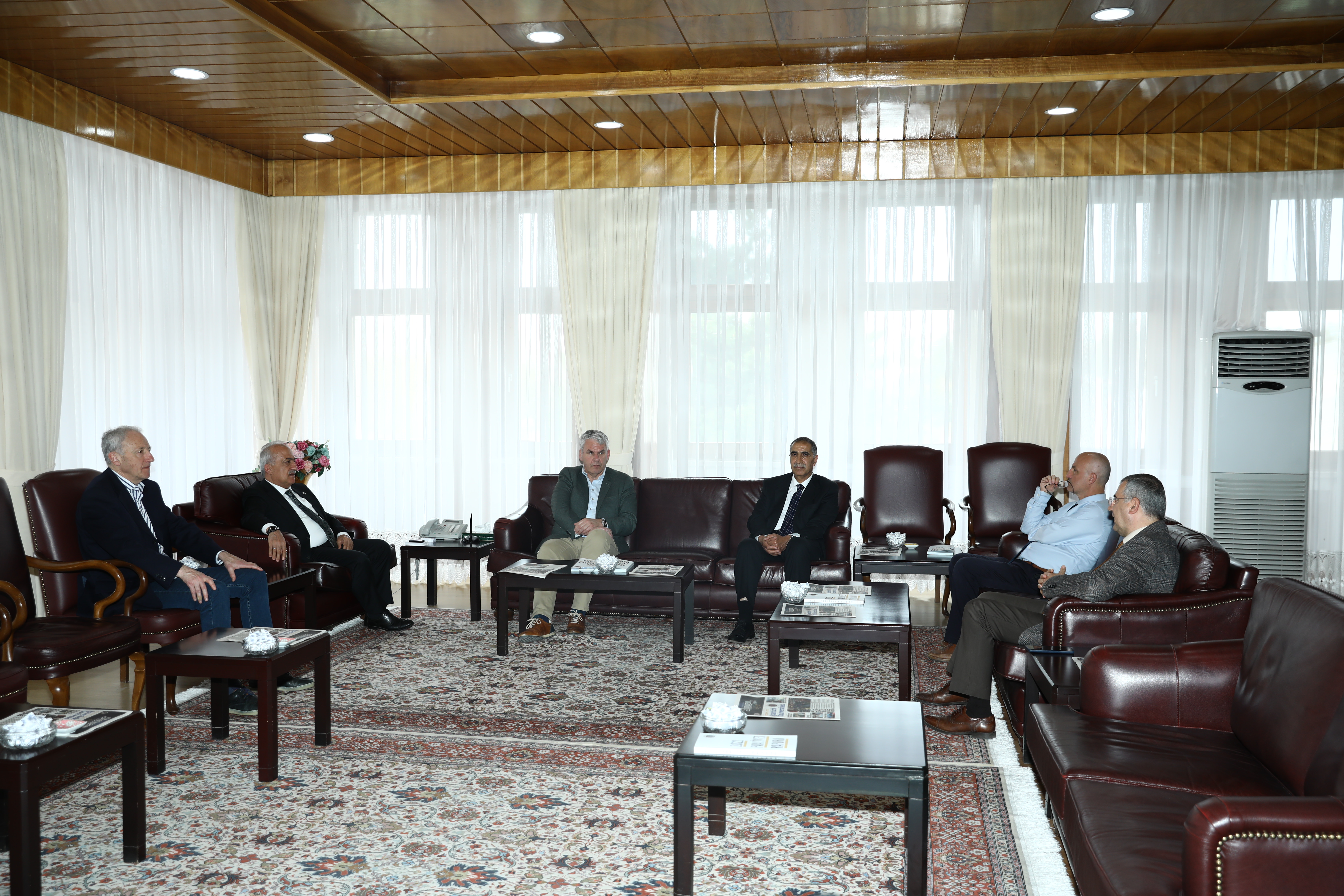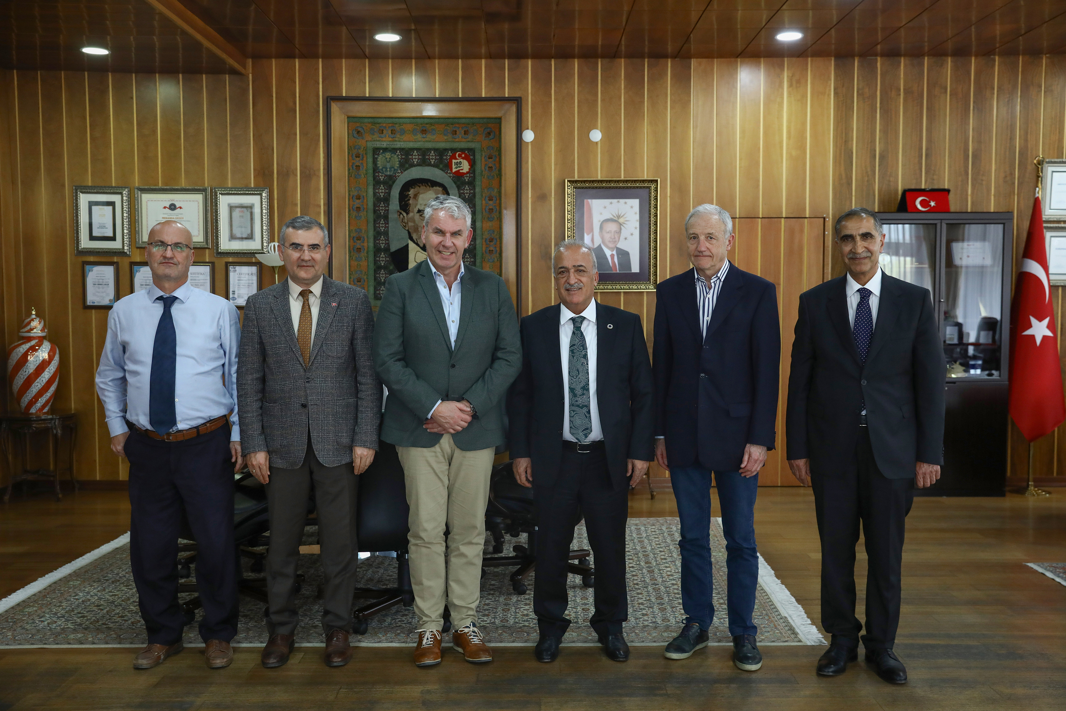 Prof. Dr. Ömer Çomaklı, the rector of Atatürk University, is an active participant in the evaluation team of the Association of European Veterinary Educational Institutions (EAEVE). During the re-evaluation visit that took place from April 23-25, 2024, the Faculty of Veterinary Medicine was assessed in accordance with the requirements of its international accreditation. Prof. Bertil Douw (Chairman of the Netherlands) and Prof. Pierre Lekeux was approved. Prof. Dr. Yavuz Selim Sağlam, dean of the Faculty of Veterinary Medicine, Armağan Hayırlı, EAEVE liaison officer, and Vice Rector Prof. Dr. Mustafa Sözbilir were also in attendance at the reception.