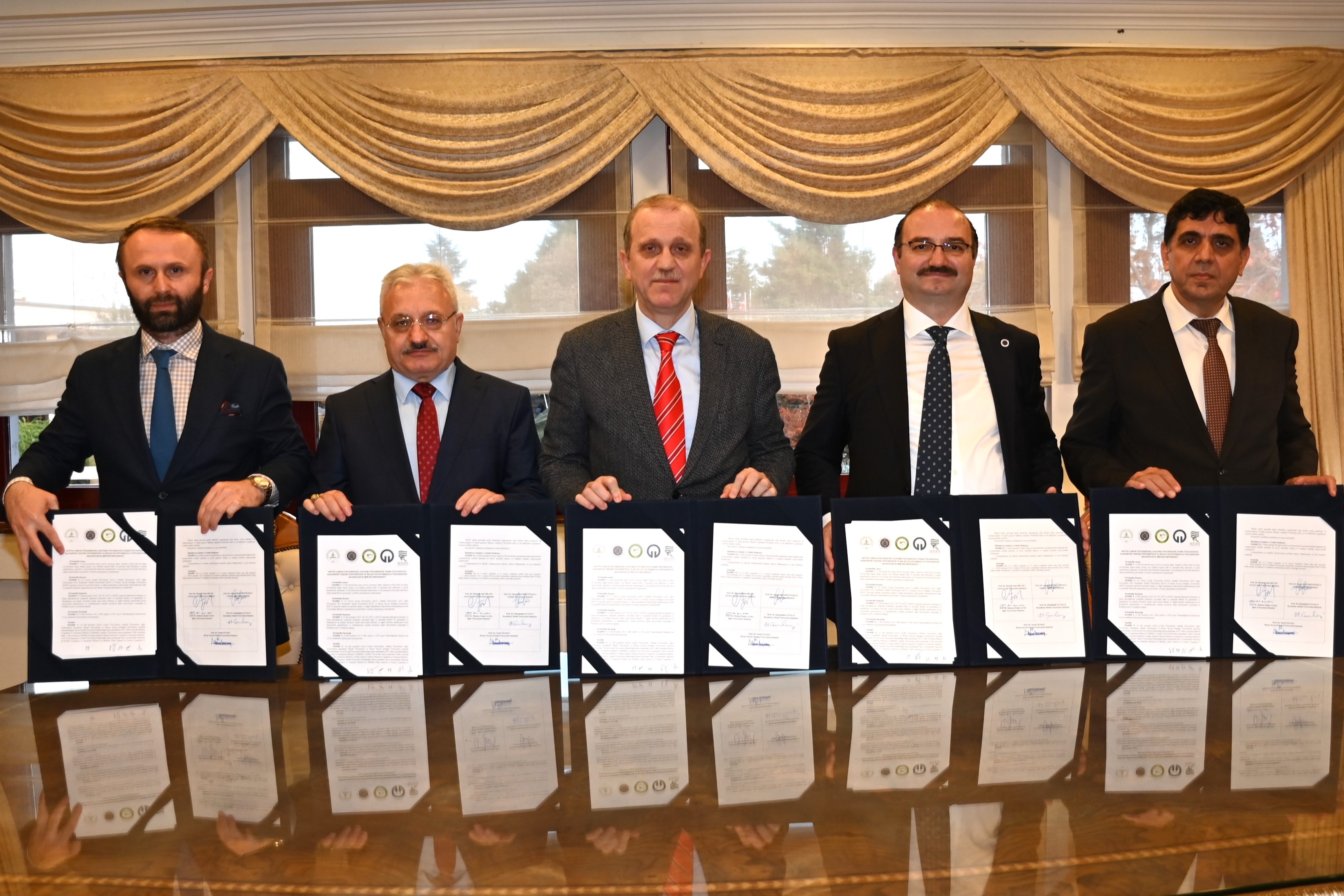 The signing ceremony hosted by Karadeniz Technical University was attended by Atatürk University Rector Prof. Dr. Ahmet Hacımüftüoğlu, Artvin Çoruh University Rector Prof. Dr. Mustafa Sıtkı Bilgin, Iğdır University Rector Prof. Dr. Mehmet Hakkı Alma, Recep Tayyip Erdoğan University Rector Prof. Dr. Yusuf Yılmaz and Karadeniz Technical University (KTÜ) Rector Prof. Dr. Hamdullah Çuvalcı.