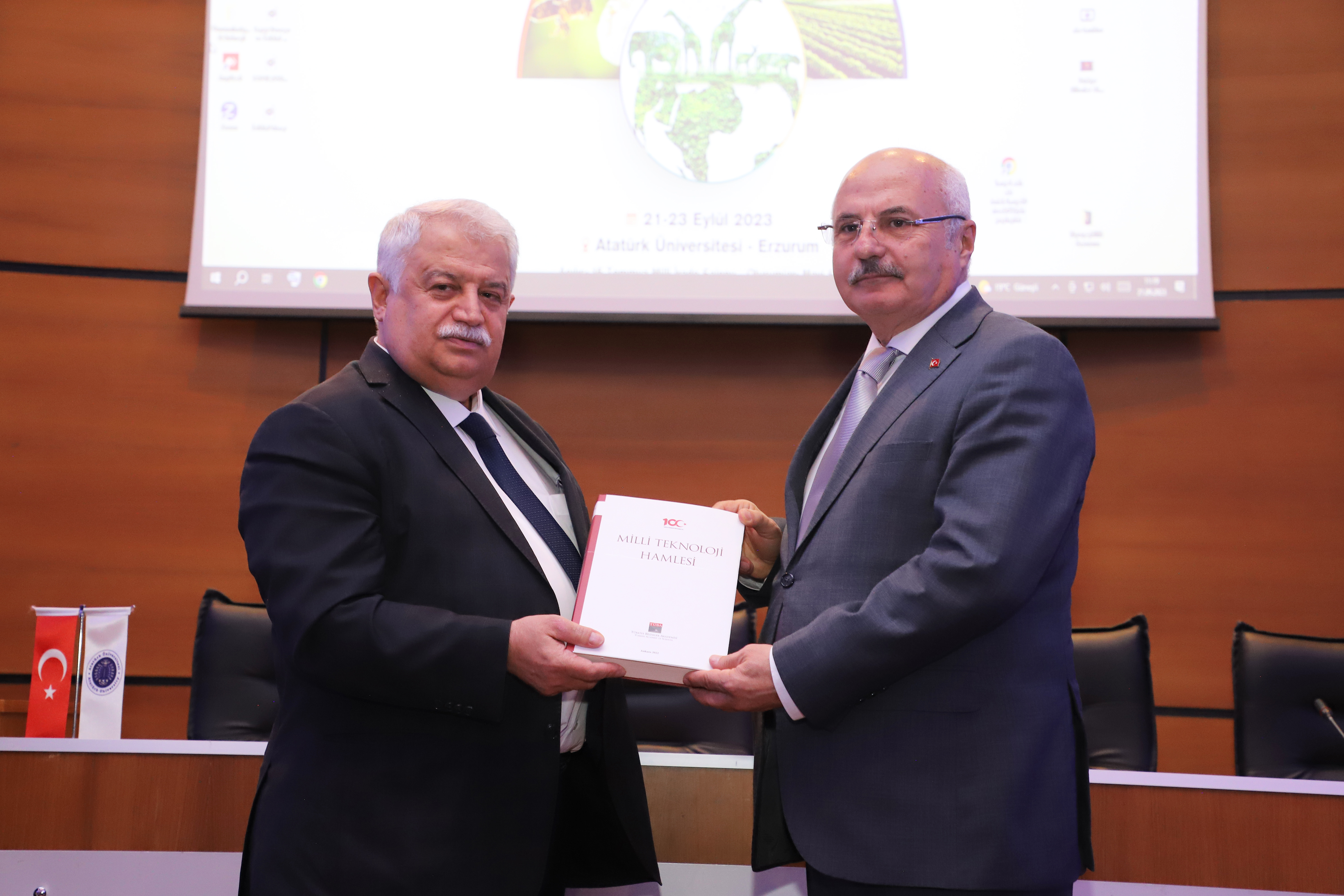 Atatürk University Rector Prof. Dr. Ömer Çomaklı started his speech at the podium by stating that Atatürk University has been restructured by seriously reviewing how it will structure its academic values, educational methodologies and social role for the last 7 years. He said that they wish to be recognized as a university that is at the forefront of universal science, works problem-oriented, develops scientific solutions to social problems, is sensitive to social demands as well as directing social demands, and they continue their work to achieve this ideal.