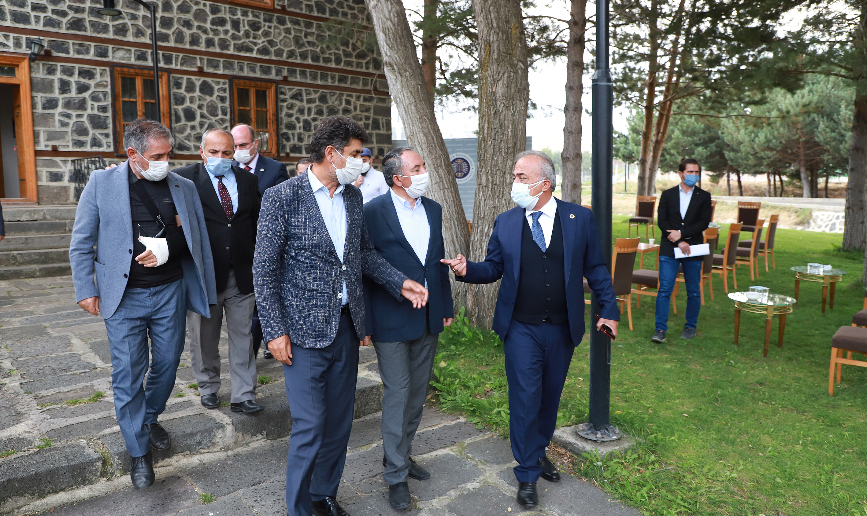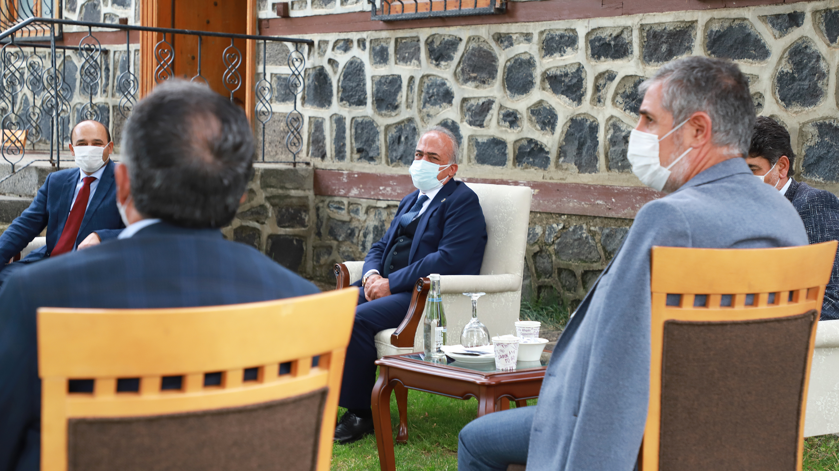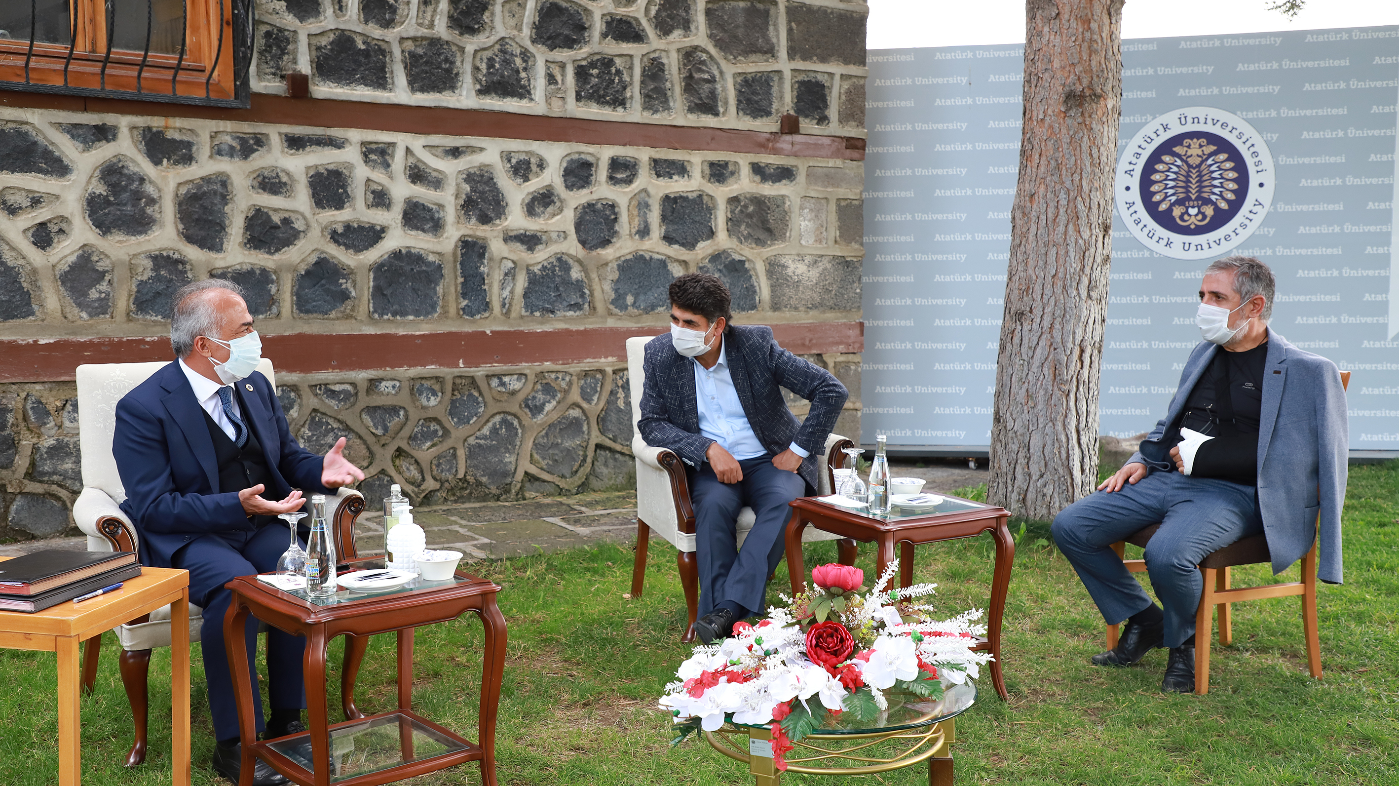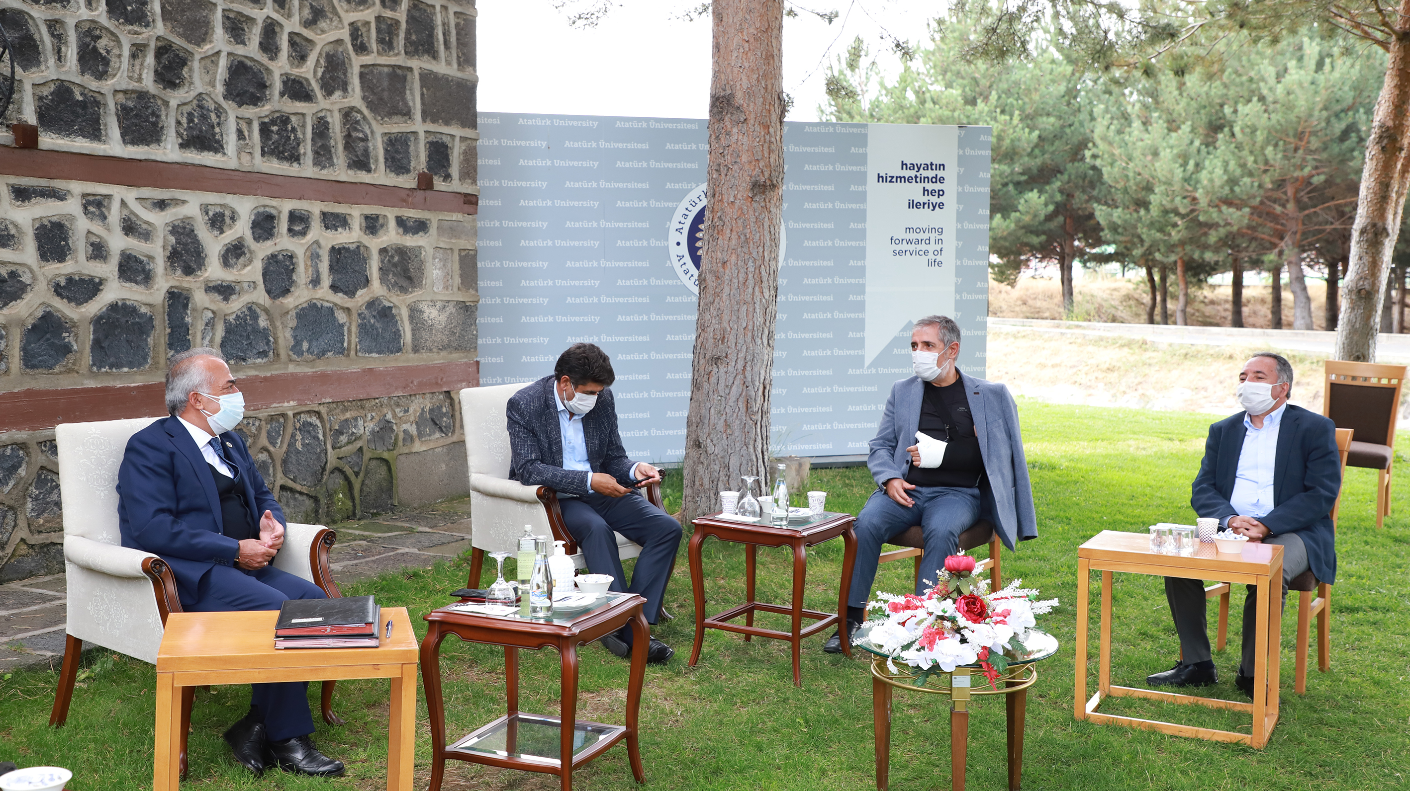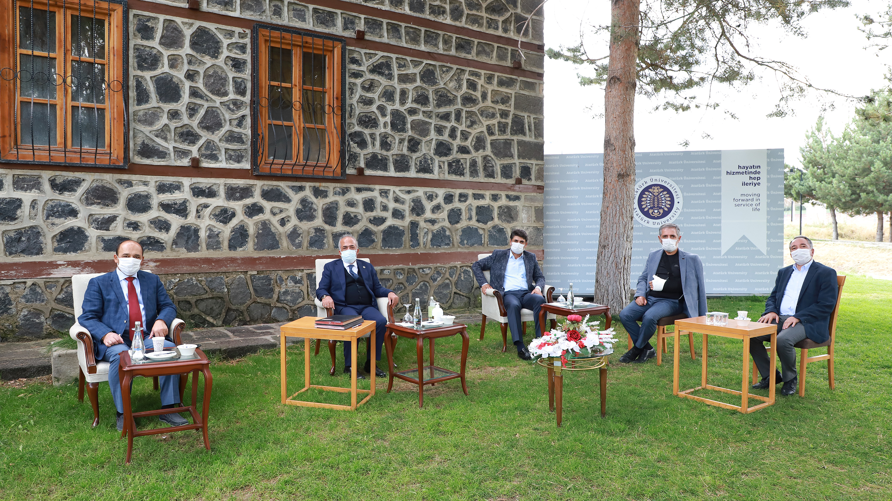 Rector Çomaklı welcomed his guests in the garden of Erzurum House (Stone Building) located in the campus in accordance with the masks and social distance rules, AK Party Ardahan MP Prof. Orhan Atalay, Ardahan University Rector Prof. Mehmet Biber, Ağrı İbrahim Çeçen University Rector Prof. Abdulhalik Kababulut and Kastamonu University former Rector Prof. Seyit Aydın.