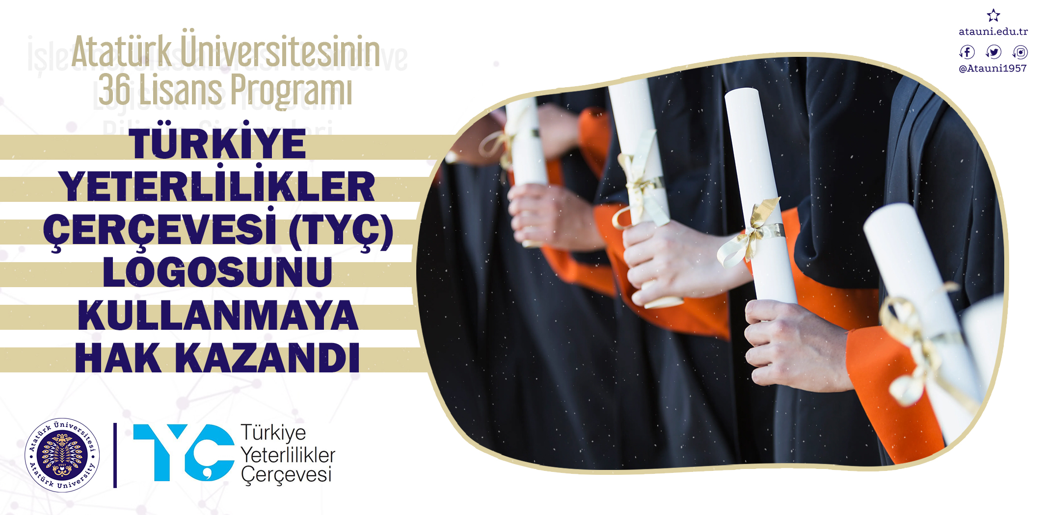 The 36 undergraduate fields of Atatürk University are authorised to utilise the logo of the Turkish Qualifications Framework (TQF).