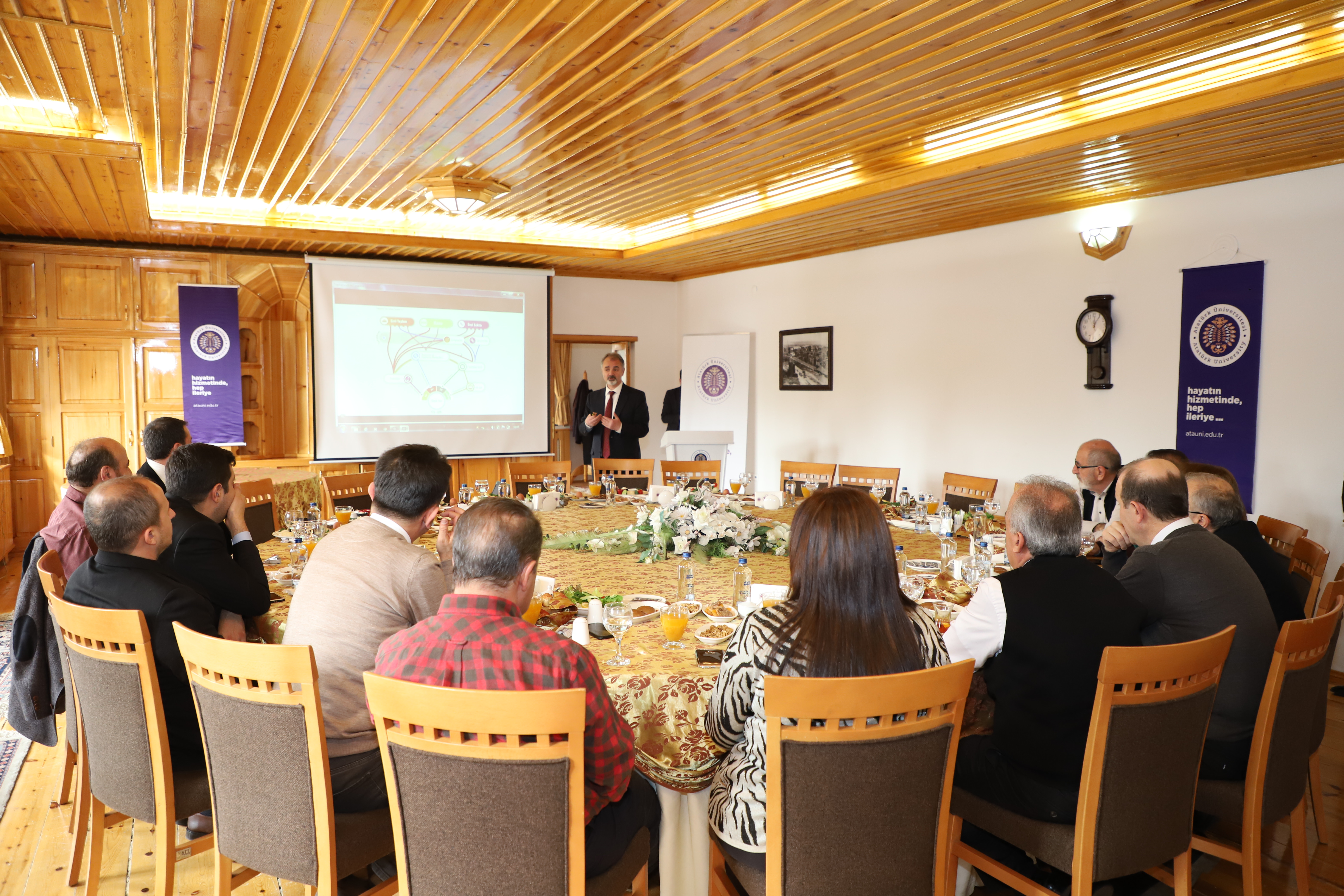 On behalf of Atatürk University, Rector Çomaklı, vice-rectors, university secretary and advisor to the rector attended the meeting while Chairman of the Board Fulya Bankoğlu, Branch Secretary Önder Durmuş, Branch Treasurer Ufuk Bulut, Board Members Res. Assist. Furkan Emre Kan and Res. Assist. Yaşar Sert and Prof. Dr. Hamdullah Çuvalcı, one of the former managers, attended the meeting on behalf of MMO Trabzon Branch.