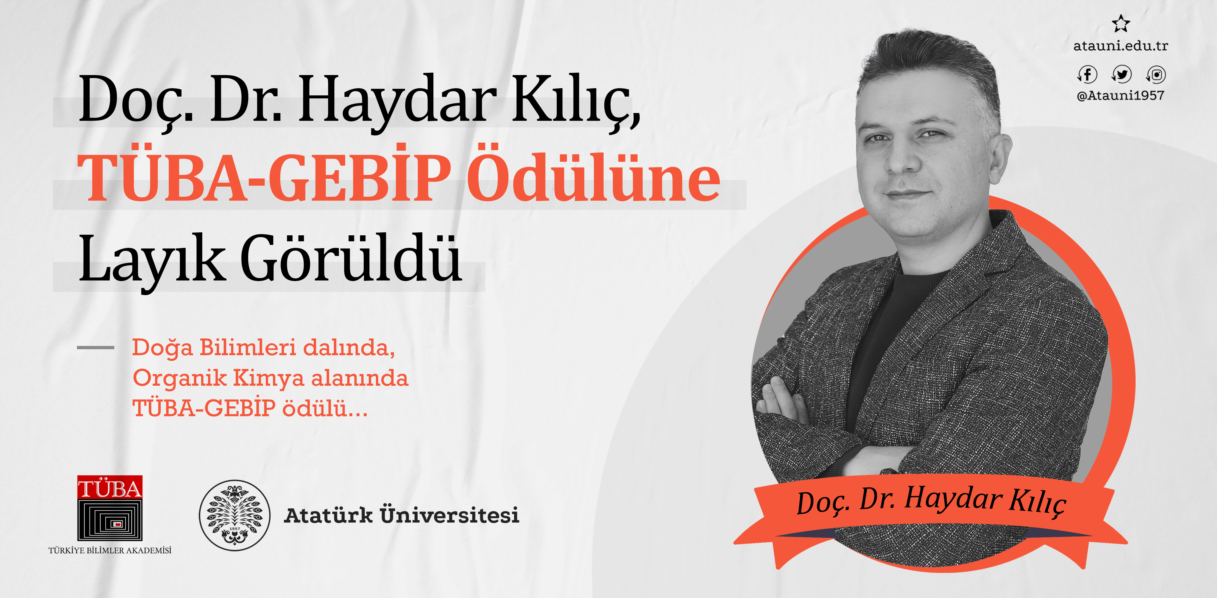 The recipients of the Outstanding Young Scientist Awards (GEBİP) presented by the Turkish Academy of Sciences (TÜBA) for the current year have been declared. Associate Professor, member of the Department of Chemistry at Atatürk University's Faculty of Science. Assoc. Prof. Haydar Kılıç was considered deserving of the TÜBA-GEBİP award in the domain of natural sciences organic chemistry.