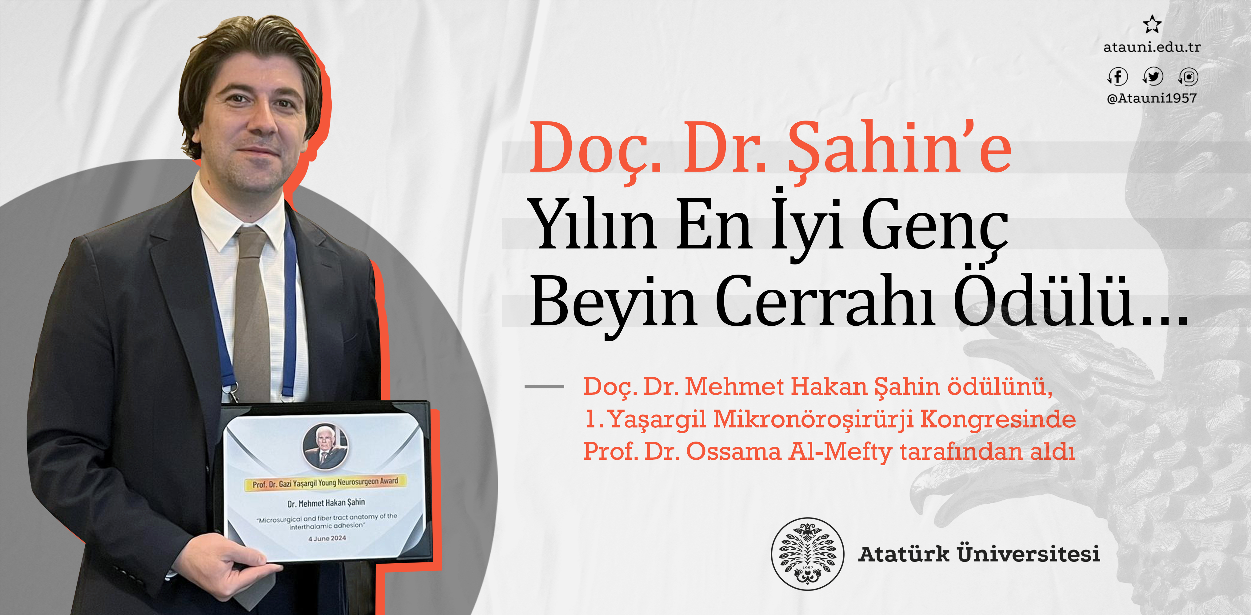 The 1st Yaşargil Microneurosurgery Congress was held in Istanbul, and Assoc. Prof. Mehmet Hakan Şahin, a faculty member of the Department of Brain and Nerve Surgery at Atatürk University, was awarded the title of "Best Young Brain of the Year" for his research on the microsurgical and fiber tract anatomy of the interthalamic adhesion. He was considered deserving of the Surgeon Award.