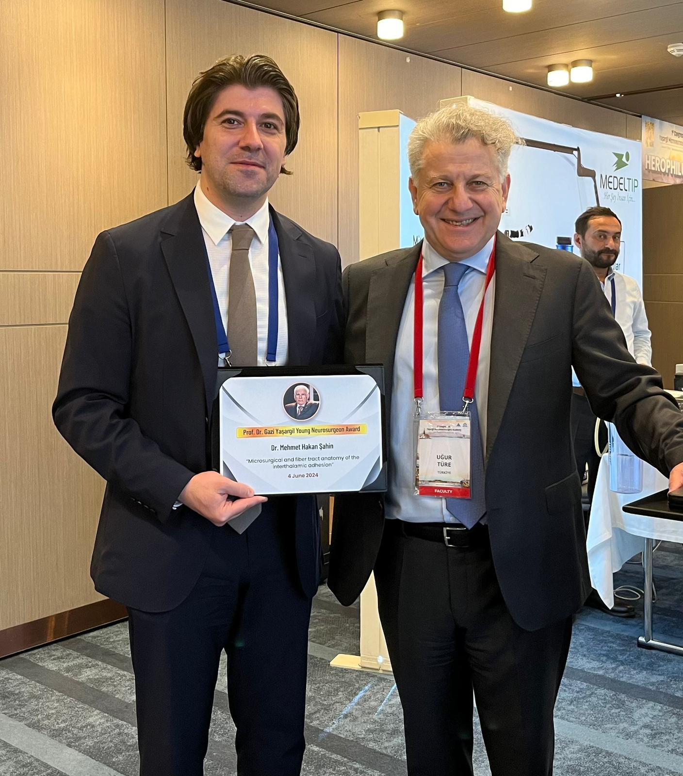 The Interthalamic Study, which was published in the November 2023 issue of the "Journal of Neurosurgery," the world's most prestigious neurosurgery journal, will be awarded the Yaşargil Award. This study was prepared by Prof. Dr. Mehmet Hakan Şahin in the Neuroanatomy laboratory of Yeditepe University under the supervision of Prof. Dr. Uğur Türe. The study was submitted as part of the applications for scientific articles published in the field of microneuroanatomy and microneurosurgery in 2023. It was awarded to the scientific investigation entitled "Microsurgical and fiber tract anatomy of the interthalamic adhesion."
