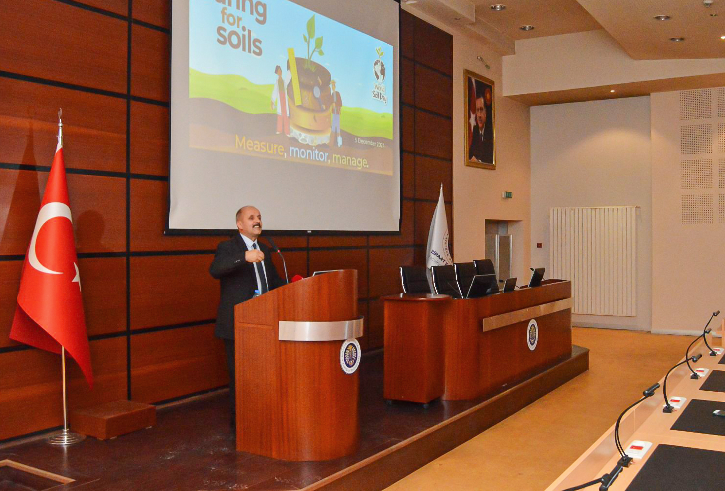 In his speech on Soil and Society, Prof. Dr. Müdahir Özgül, Lecturer at the Department of Soil Science and Plant Nutrition, stated that agriculture is a culture, that soil is the most important part of this culture, that soil has hosted countless civilisations from the past to the present, and that civilisations that could not maintain the culture of soil management perished.