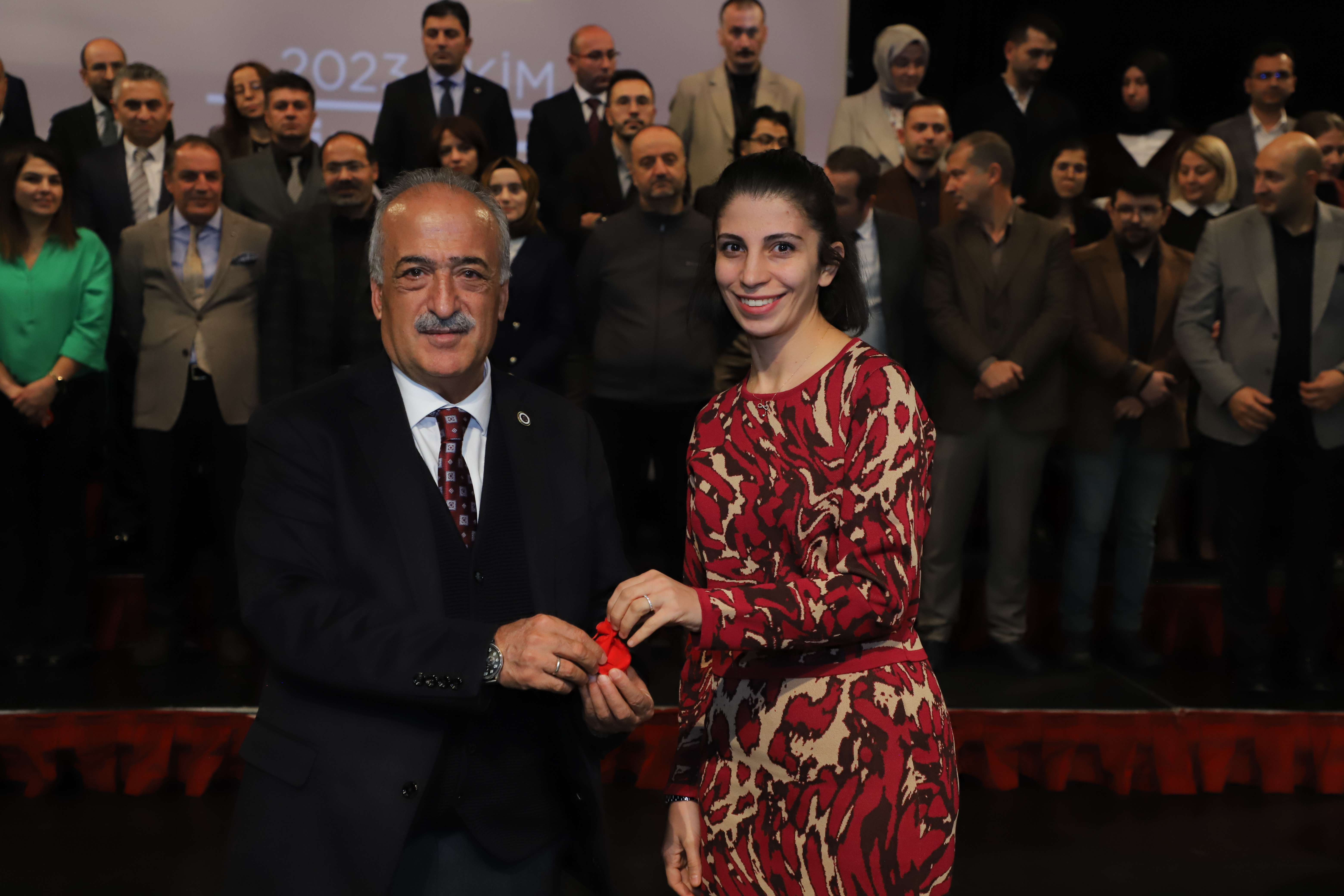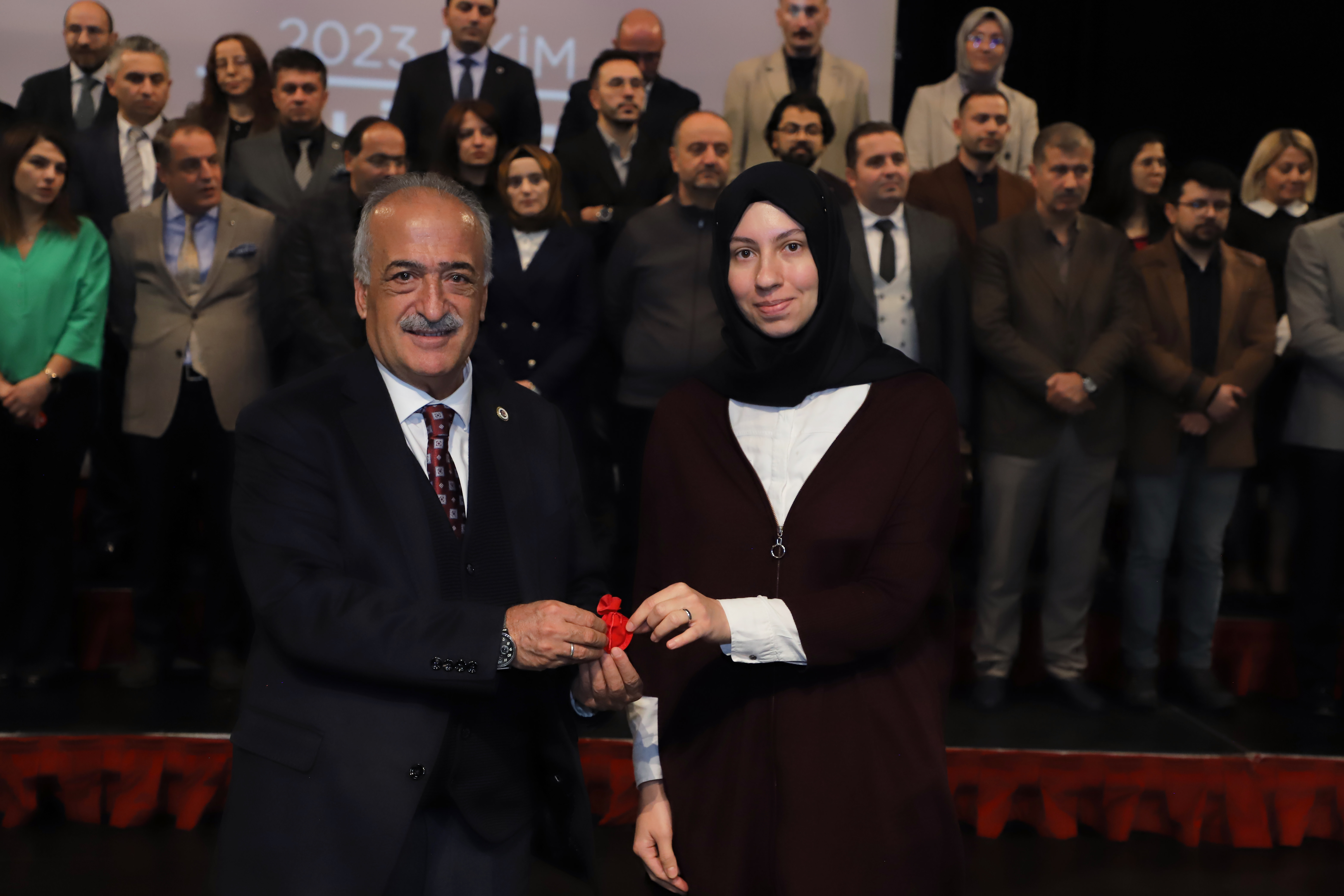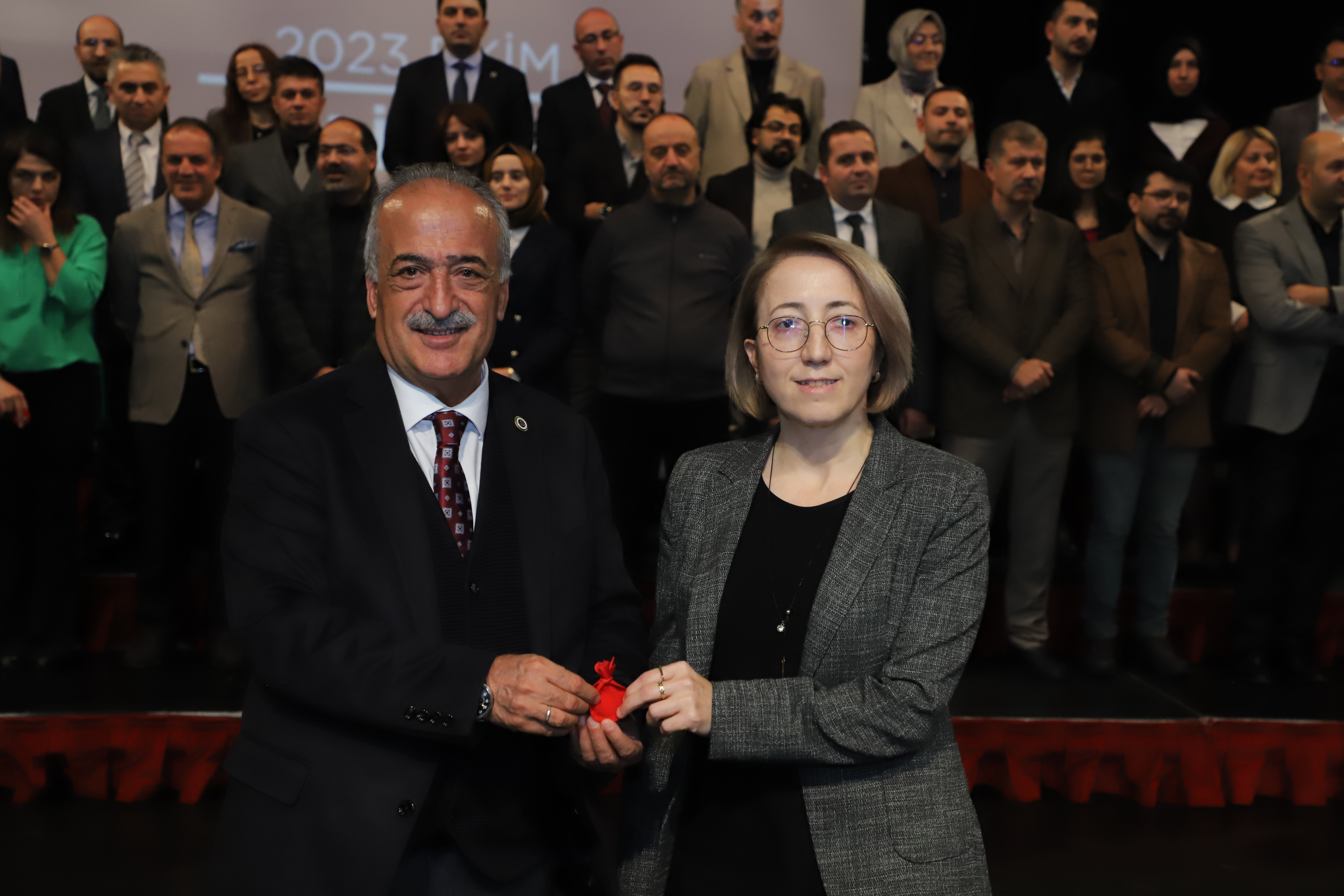 Rector Çomaklı, who presented the awards to the academicians who stood out with their publications, patents, projects and companies in the Culture Centre 15 July National Will Hall, congratulated the academicians for their research-based studies and achievements.
