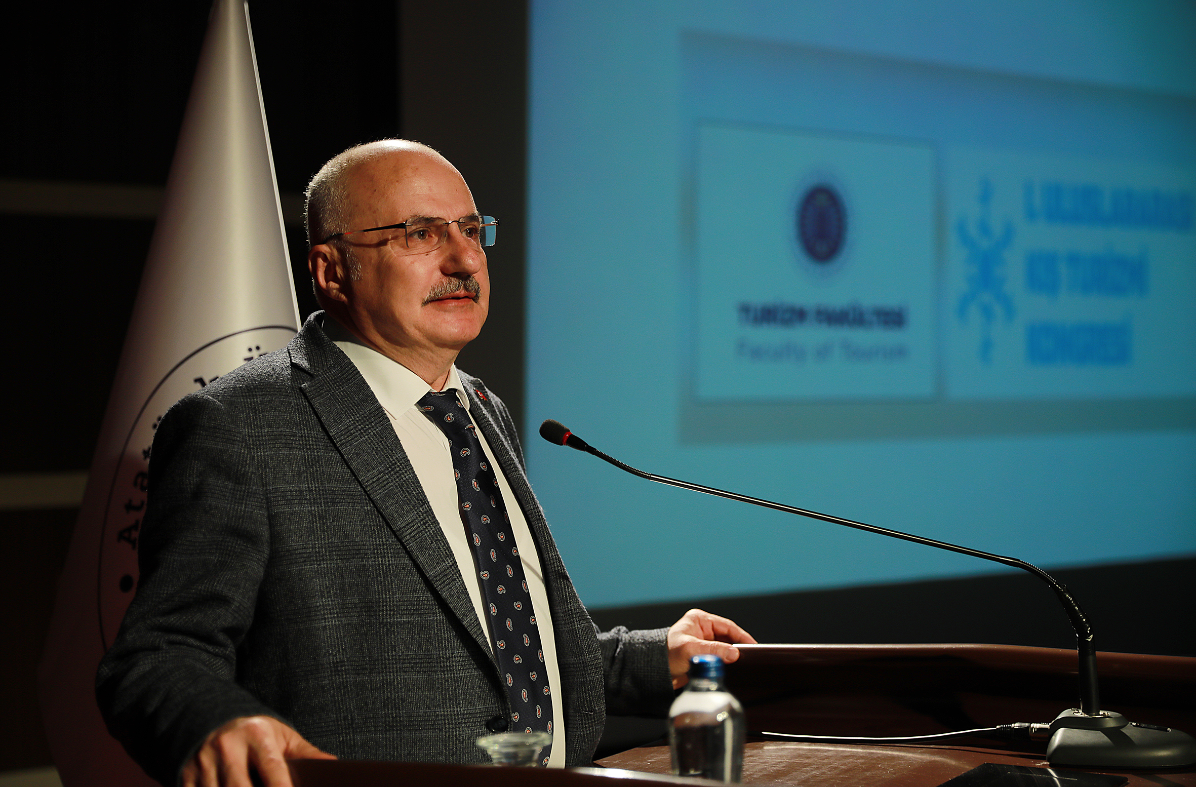 The opening of the 1st International Winter Tourism Congress, hosted and conducted by Atatürk University and organized with the collaboration of the Governorate of Erzurum, Mayoralty of Erzurum Metropolitan Municipality and Tourism Academicians Association (TUADER), started at Nenehatun Cultural Centre.