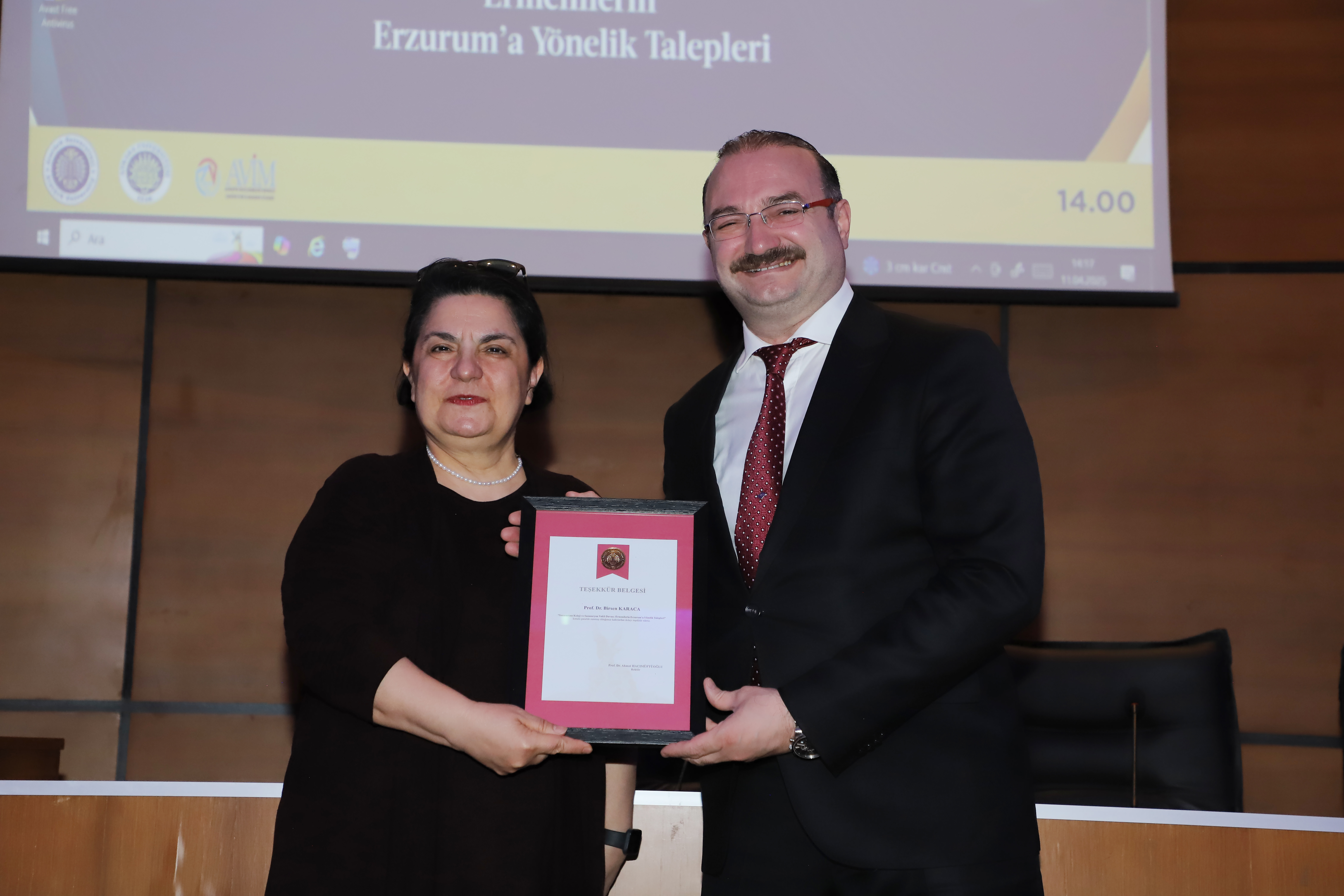 At the conclusion of the panel, the panelists were awarded certificates of appreciation for their valuable presentations, which served as a lasting reminder of the event. Prof. Dr. Birsen Karaca and Assoc. Prof. Dr. Mevlüt Yüksel were also awarded certificates of appreciation for their efforts in organizing the panel. Prof. Dr. Ahmet Hacımüftüoğlu, the Rector of Atatürk University, delivered the presentations.