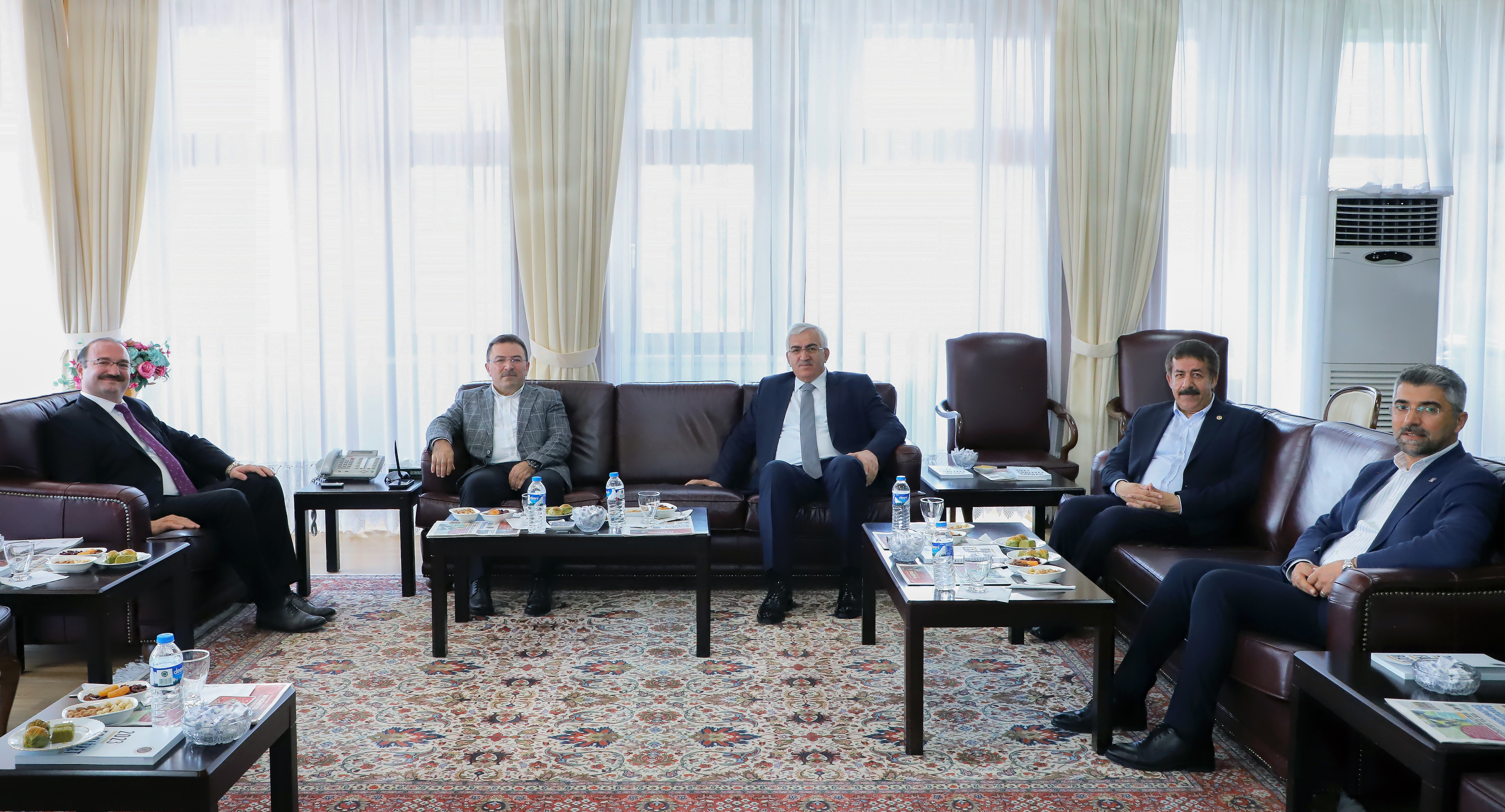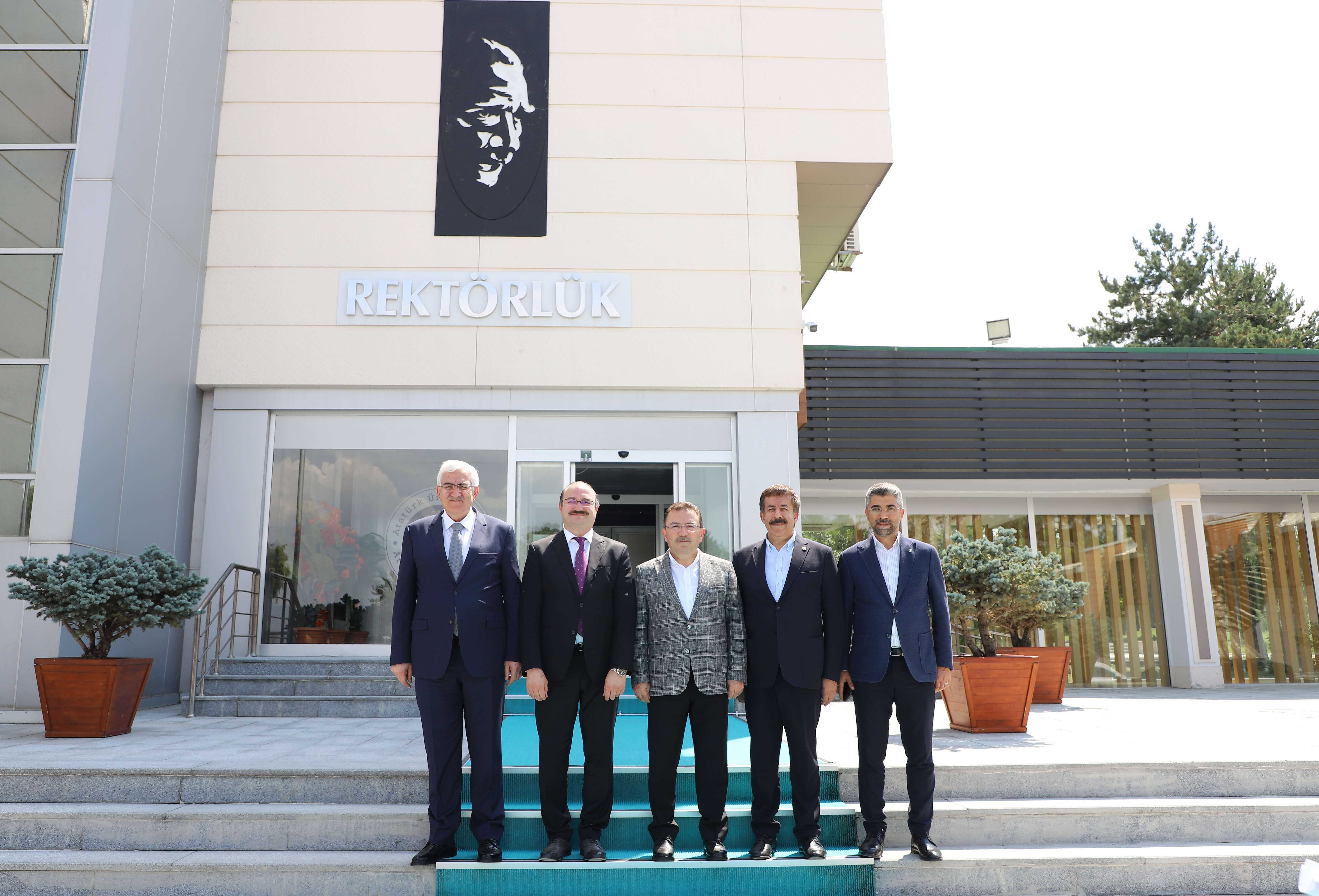 Atatürk University Rector Prof. Dr. Ahmet Hacımüftüoğlu received a congratulatory visit from AK Party Erzurum Deputy and Former Minister of Internal Affairs Selami Altınok, as well as Deputies Mehmet Emin Öz, Abdurrahim Fırat, and AK Party Erzurum Provincial Chairman İbrahim Küçükoğlu. During the visit to the Rector's Office, the University's future vision, initiatives for the development of Erzurum and the region, and the strengthening of university-city cooperation were discussed.