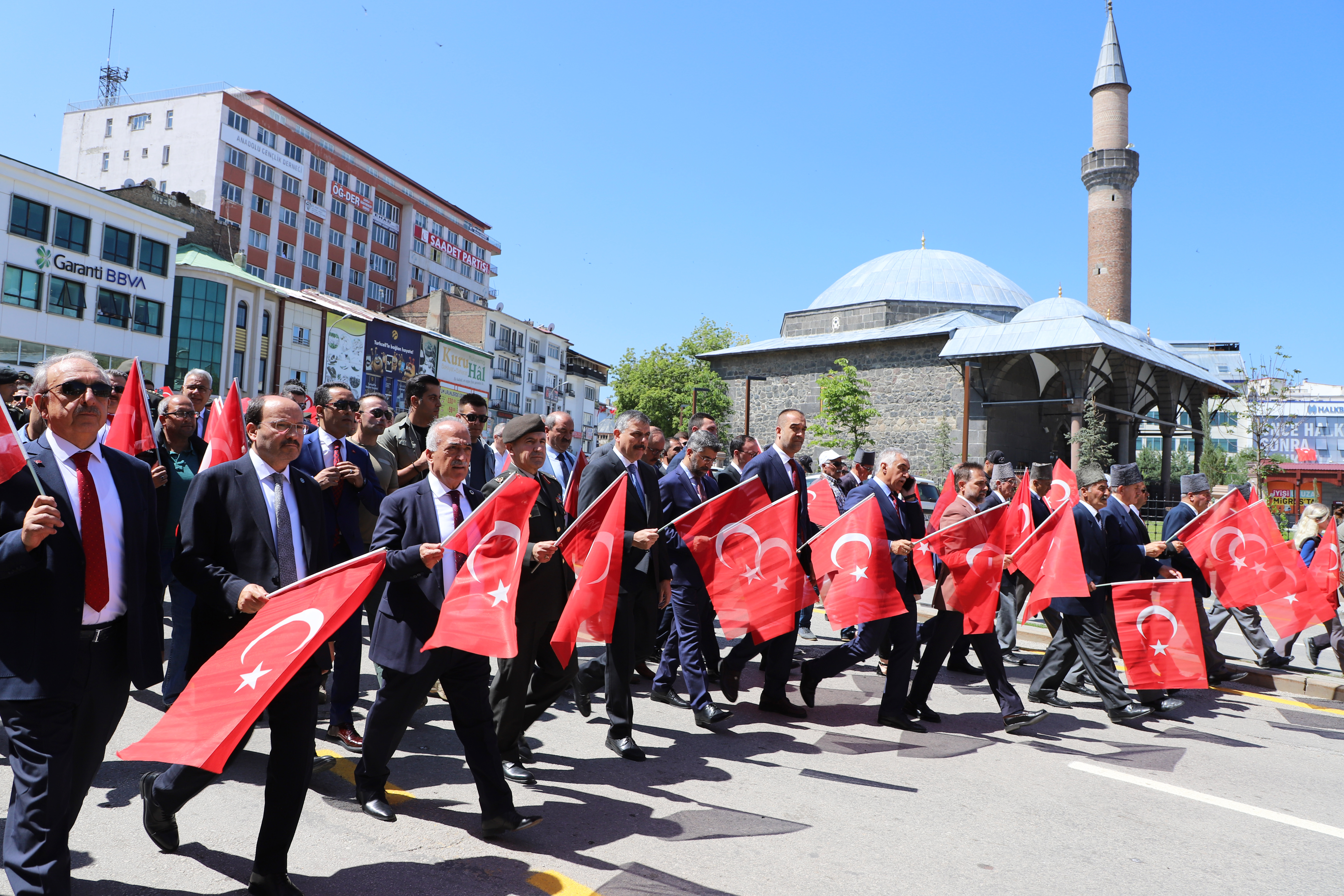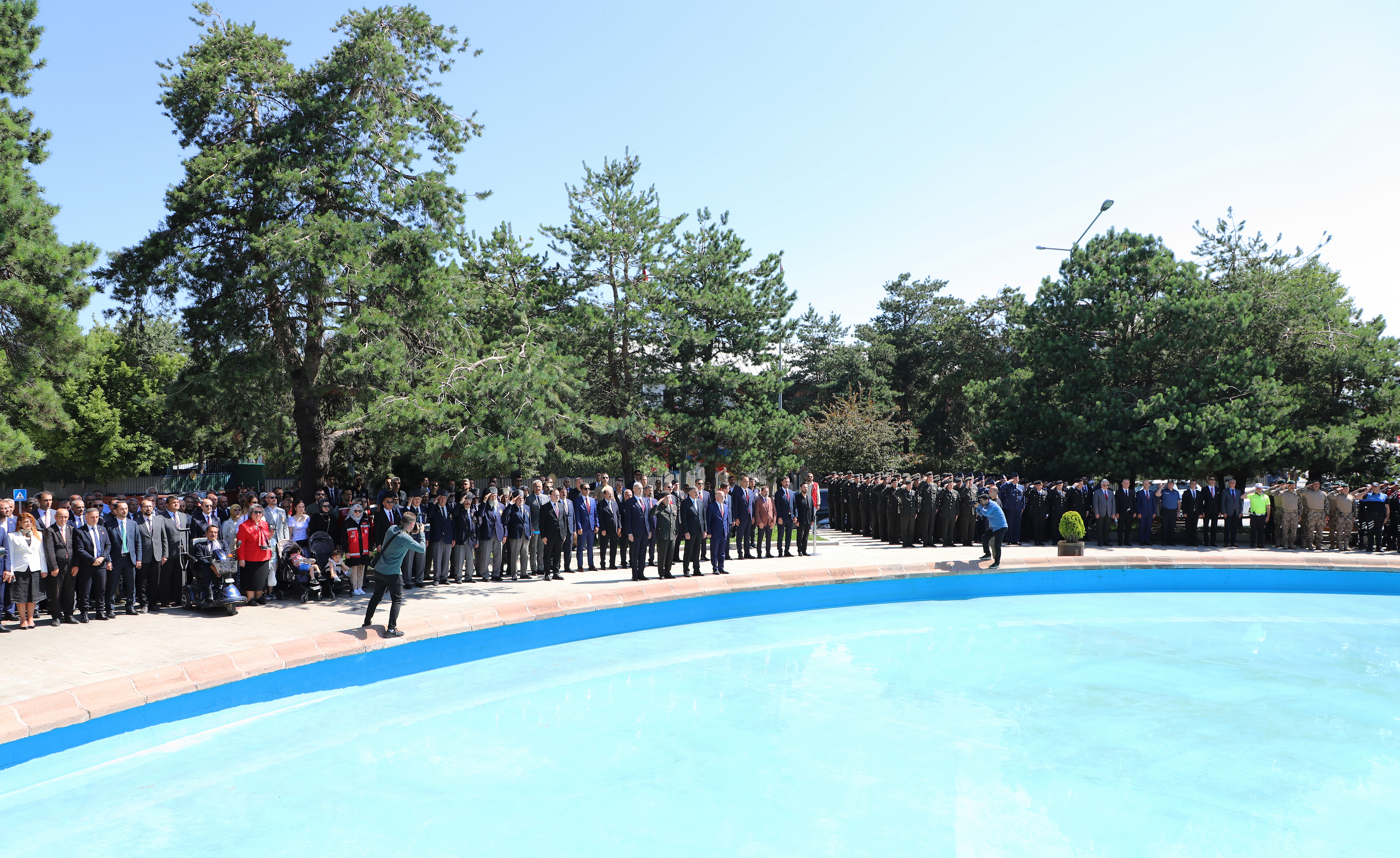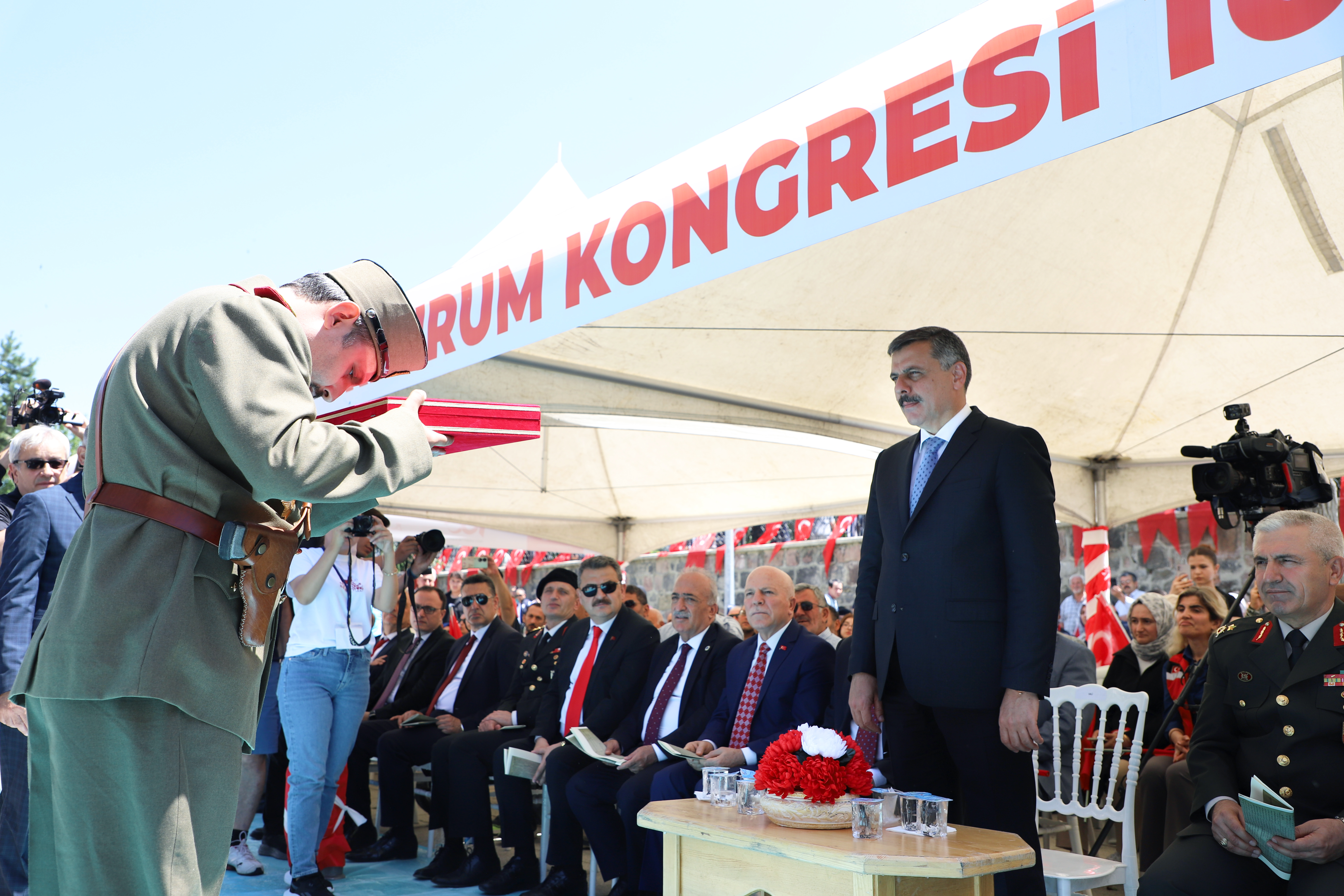 Beginning with the wreath-giving ceremony by the poolside for Atatürk's bust, the festivities included participation from the city's bureaucracy, political, military, and judicial authorities as well as a large number of civilians. Prof. Dr. Ömer Çomaklı, Rector of Atatürk University, was also present at the event. After that, there was a march to the building housing the conference. The program then went on with other events before coming to a finish with the congress building's representative assembly.