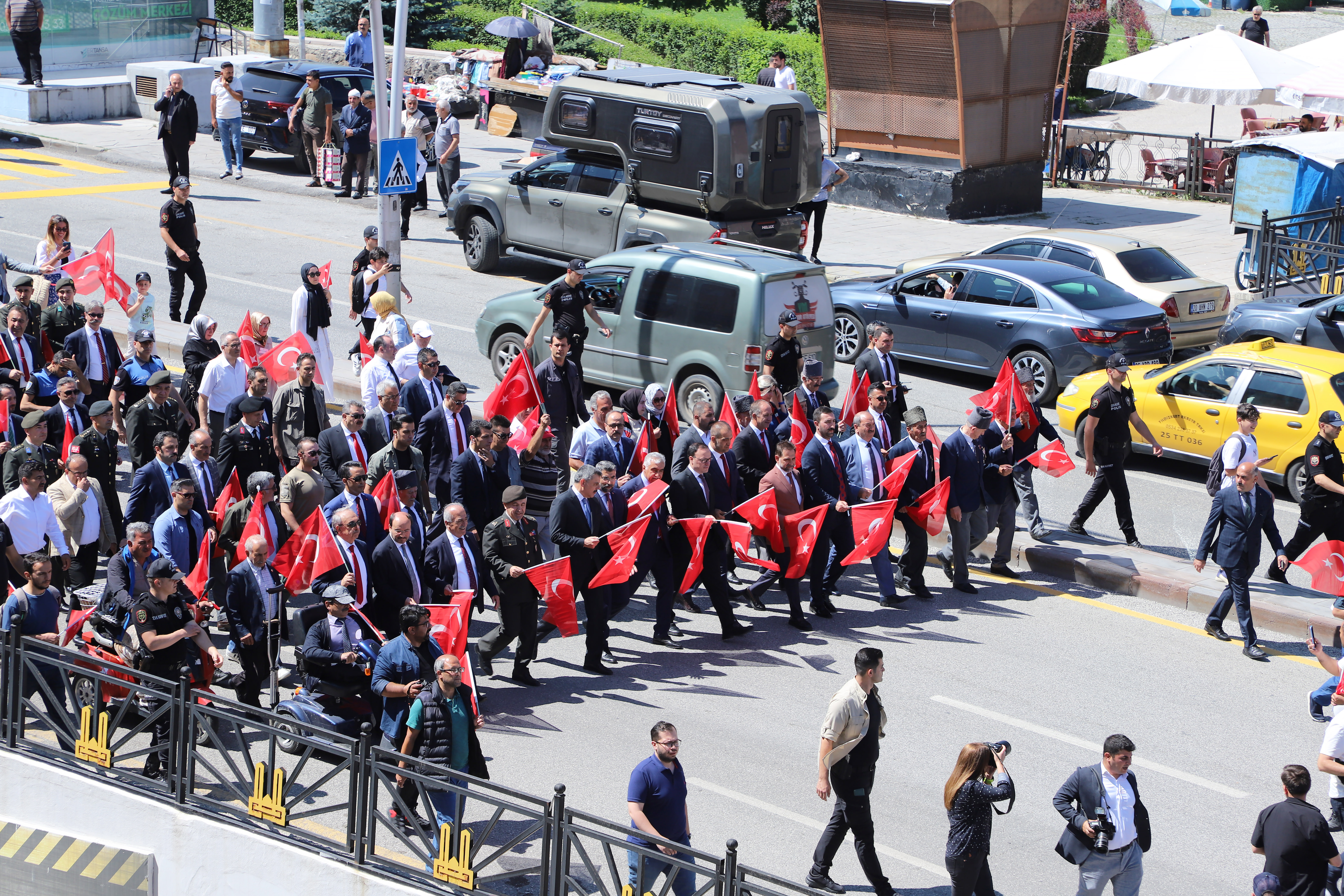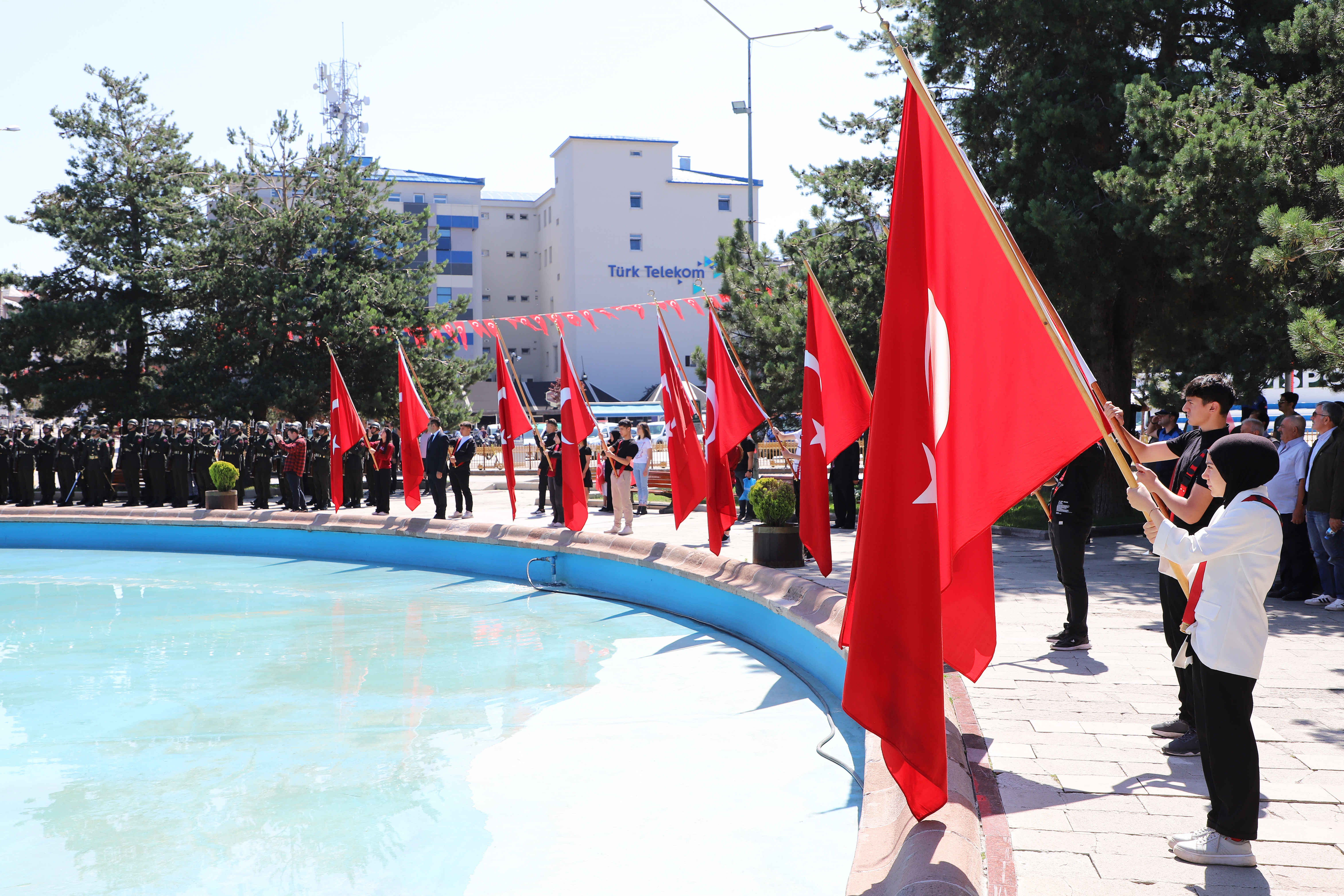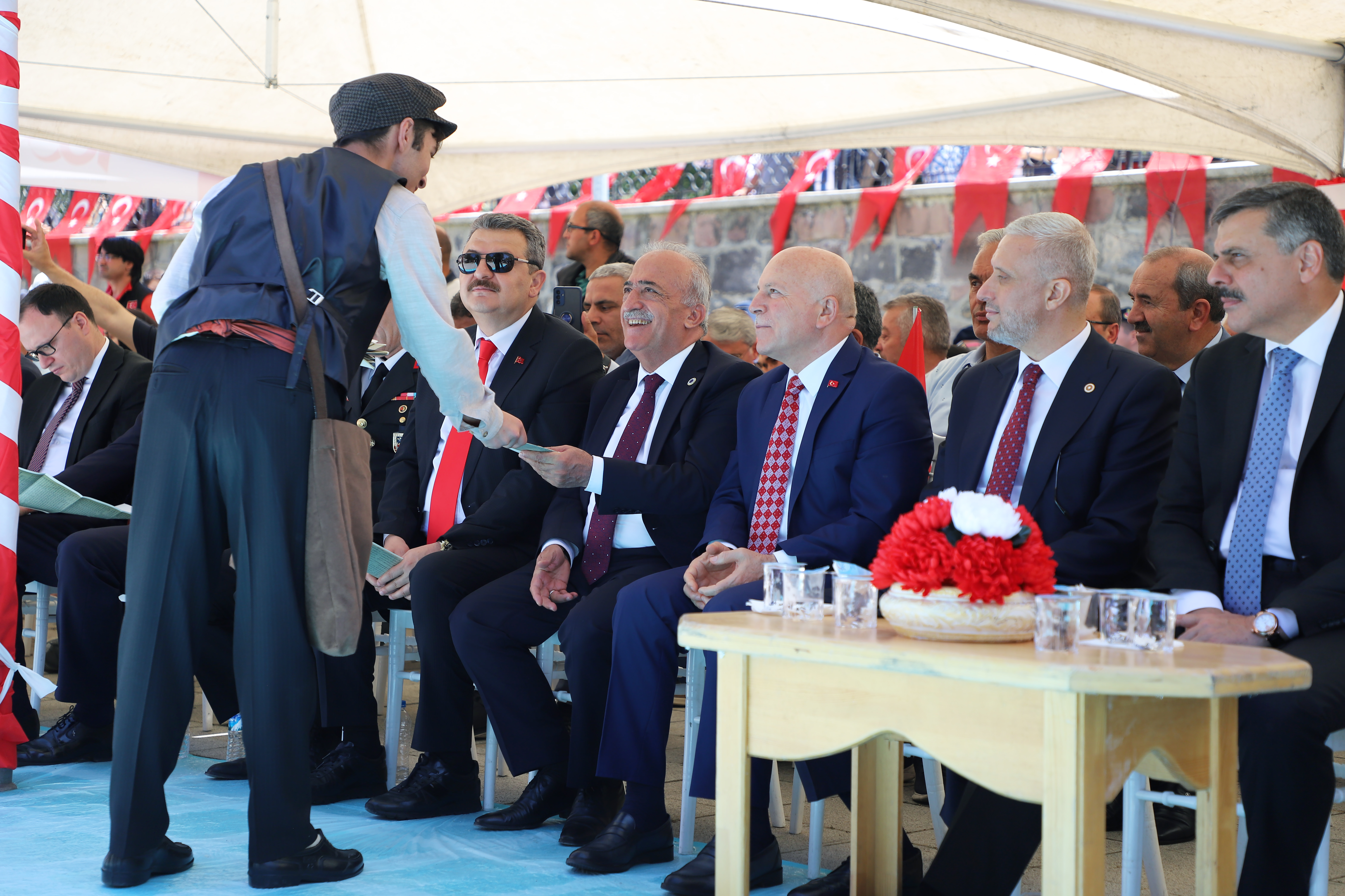 Beginning with the wreath-giving ceremony by the poolside for Atatürk's bust, the festivities included participation from the city's bureaucracy, political, military, and judicial authorities as well as a large number of civilians. Prof. Dr. Ömer Çomaklı, Rector of Atatürk University, was also present at the event. After that, there was a march to the building housing the conference. The program then went on with other events before coming to a finish with the congress building's representative assembly.