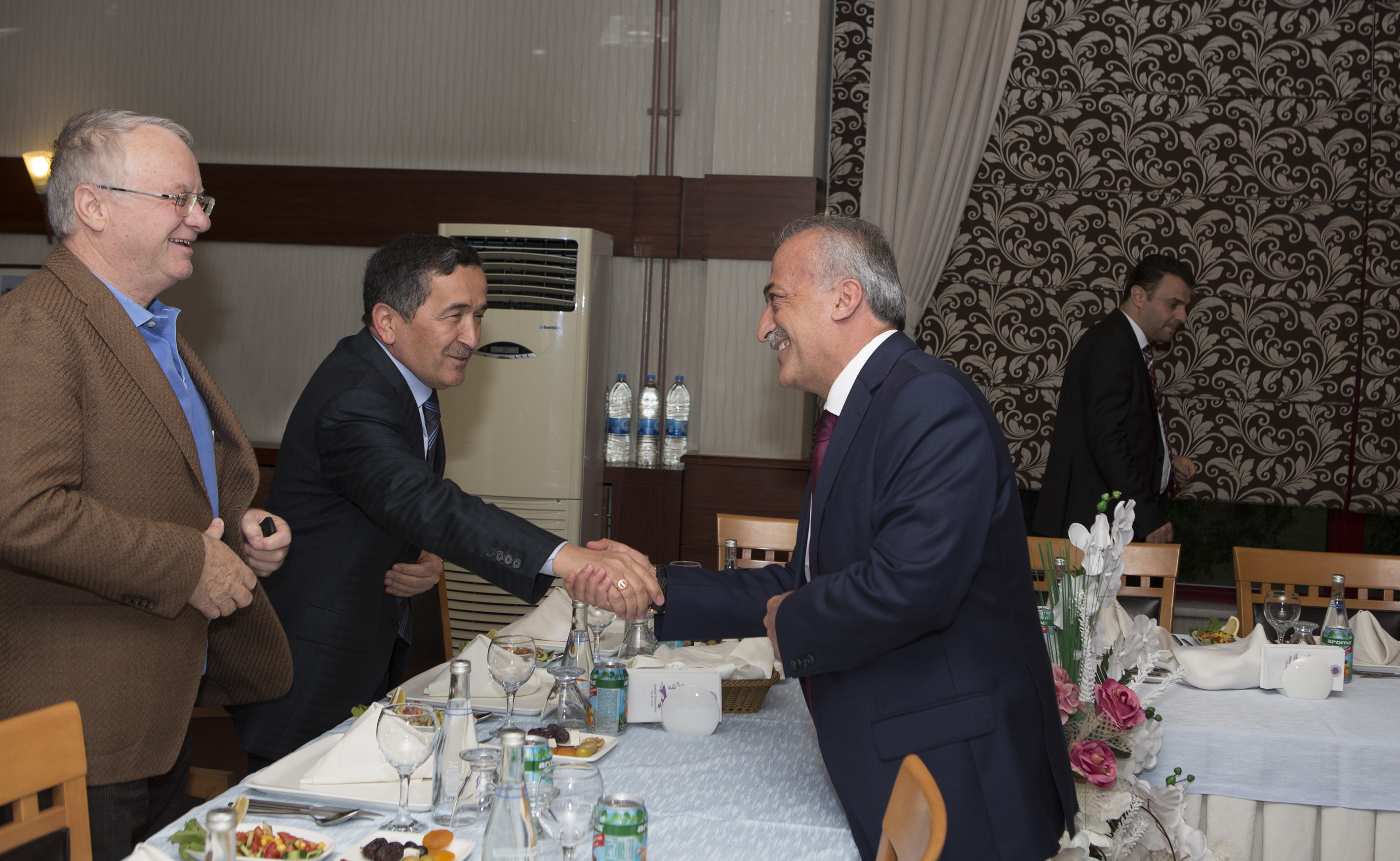 Governor of Erzurum Seyfettin Azizoğlu, Chief Public Prosecutor of the Regional Court Ünal Bingül, Chief of the Regional Court Mustafa Çetin, Chief of the Regional Administrative Court Mehmet Metin Kahraman, Rector of Erzurum Technical University Prof.Dr.Muammer Yaylalı, Erzurum Metropolitan Vice-Mayor Eyüp Tavlaşoğlu, Erzurum Provincial Police Chief Mehmet Aslan, Erzurum Provincal Mufti Hüsnü Sula, Regional Manager of TRT Ayça Alemdar, and the senior management of the university, the civil, administrative military and juridical high officials participated in the iftar meal which Rector Prof.Dr.Ömer Çomaklı hosted in Konukevi1, Atatürk University.