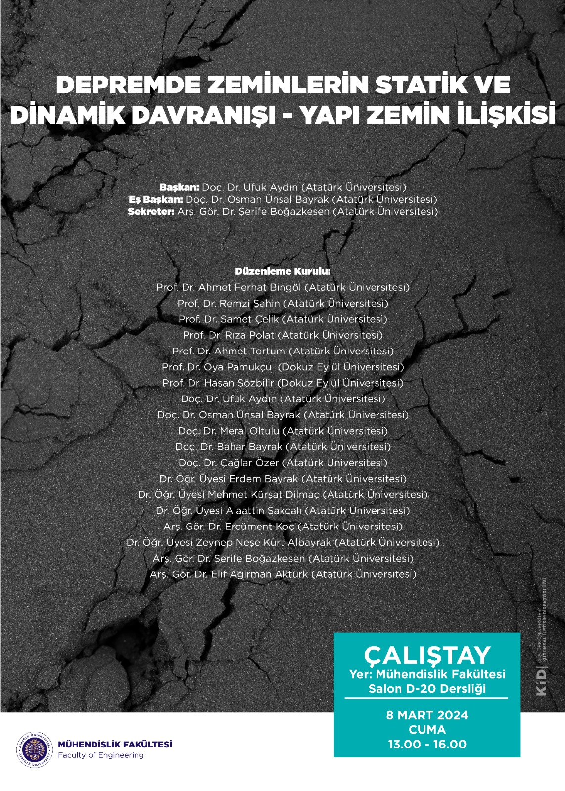 - Workshop: "Static and Dynamic Behaviors of Soils in Earthquakes - Structure-Soil Relationship"