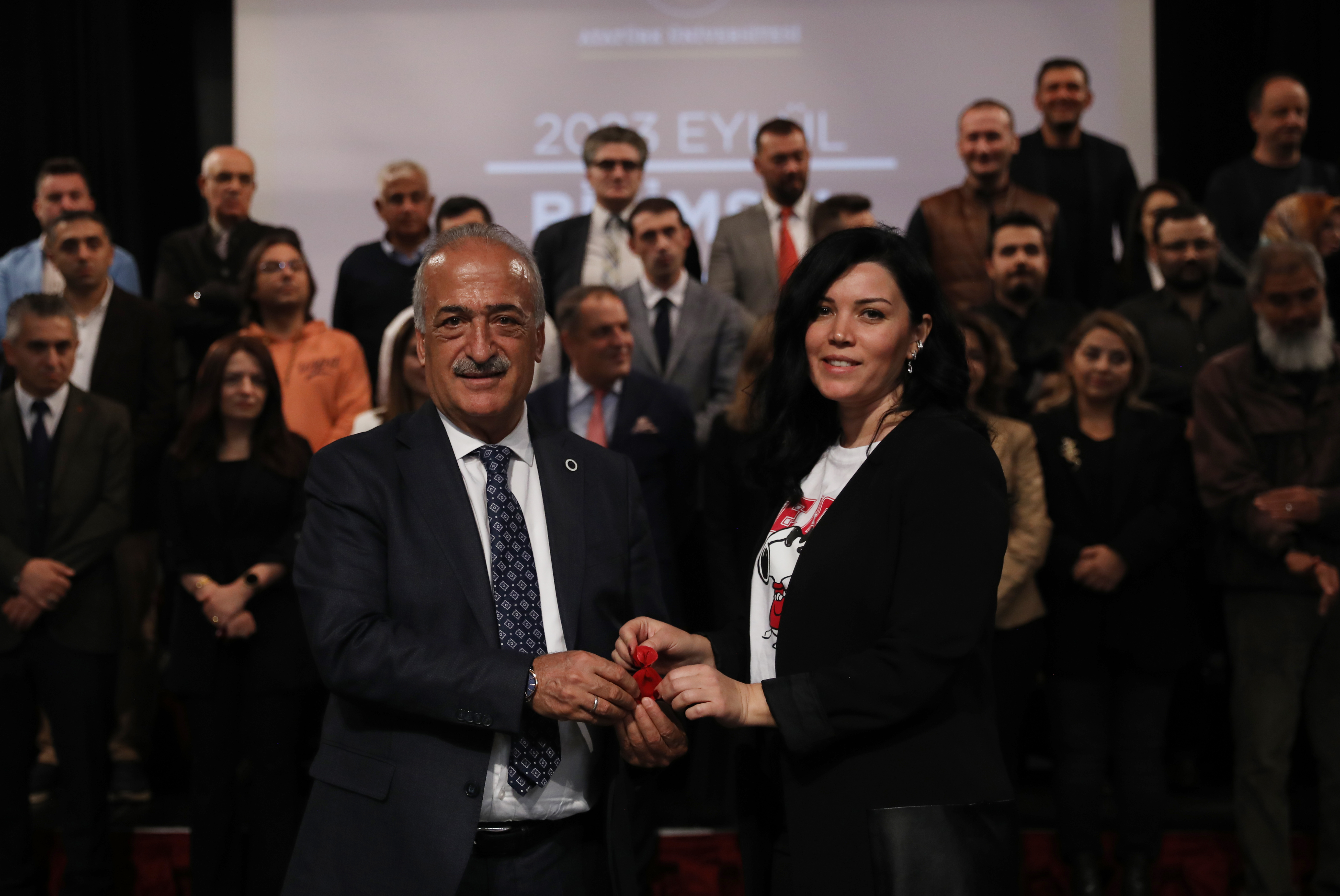 In the context of the New Generation University Design and Transformation Project, Rector Prof. Dr. Ömer Çomaklı presented the awards to faculty members who submitted applications in September for their research endeavors. The gift was presented by Rector Çomaklı.