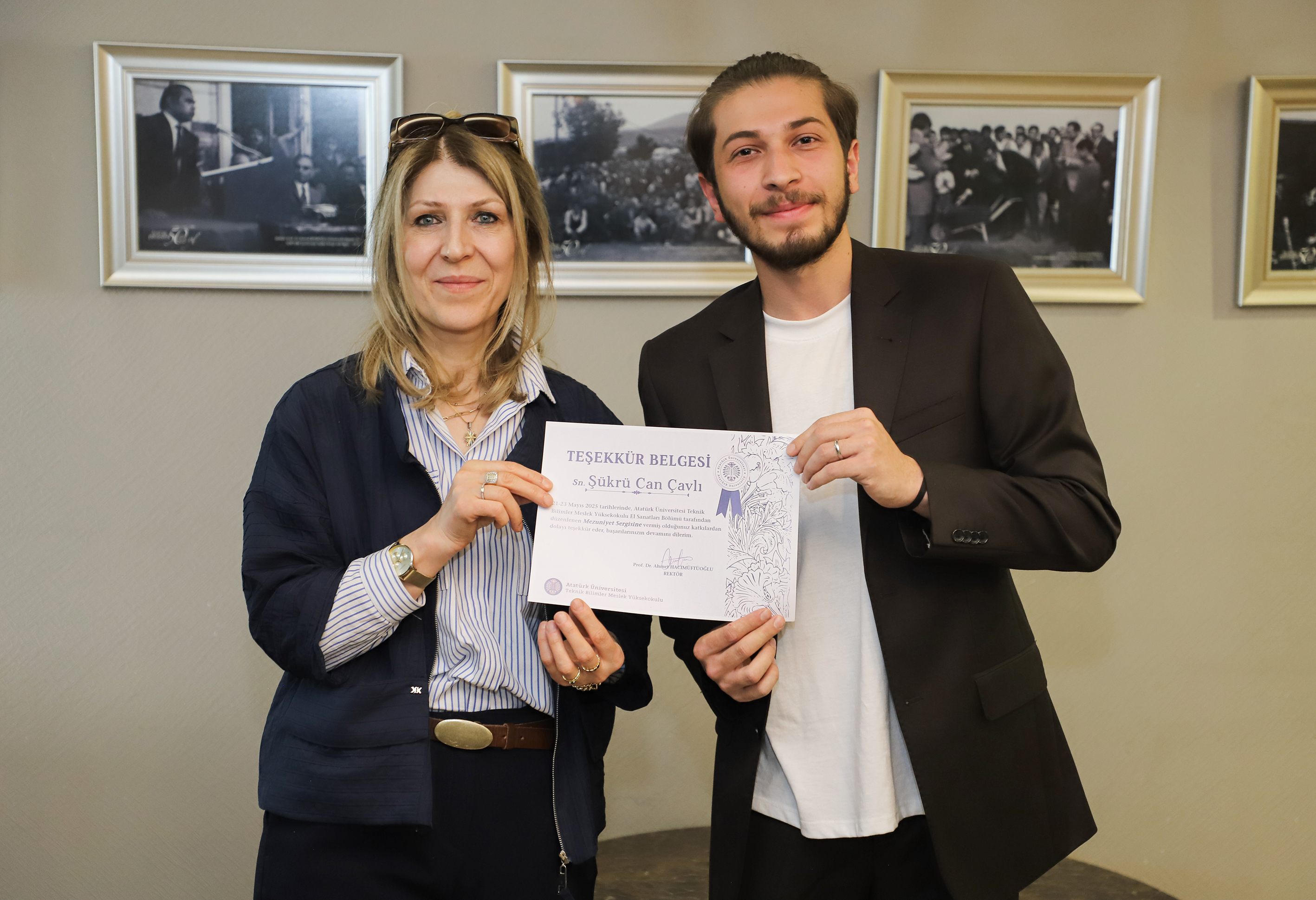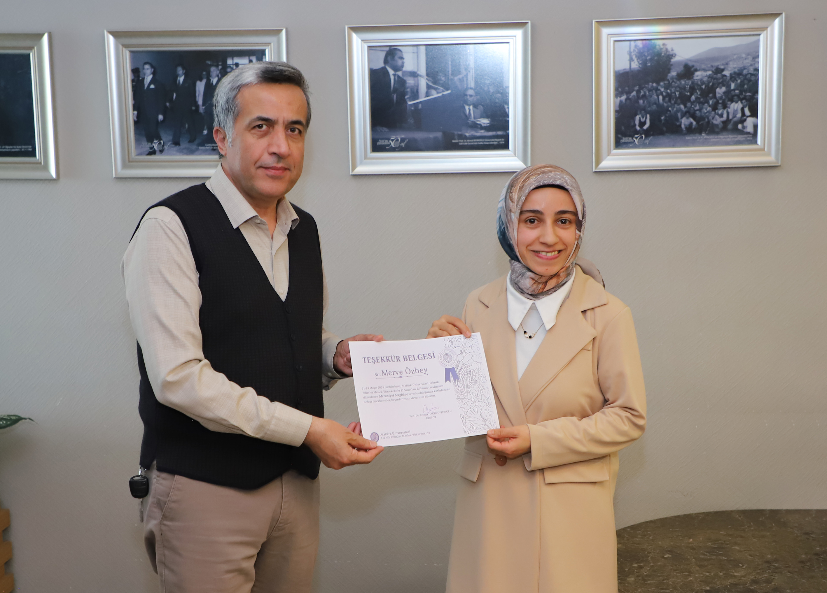 Professor Dr. Bülent Çavuşoğlu, Vice President of Atatürk University, Technical Sciences Vocational School Director, Professor Dr. Hayrunnisa Nadaroğlu, Assistant Director Dr. Lecturer Hüseyin Güllüce, academicians, students, and their families, as well as numerous visitors, attended the exhibition.
