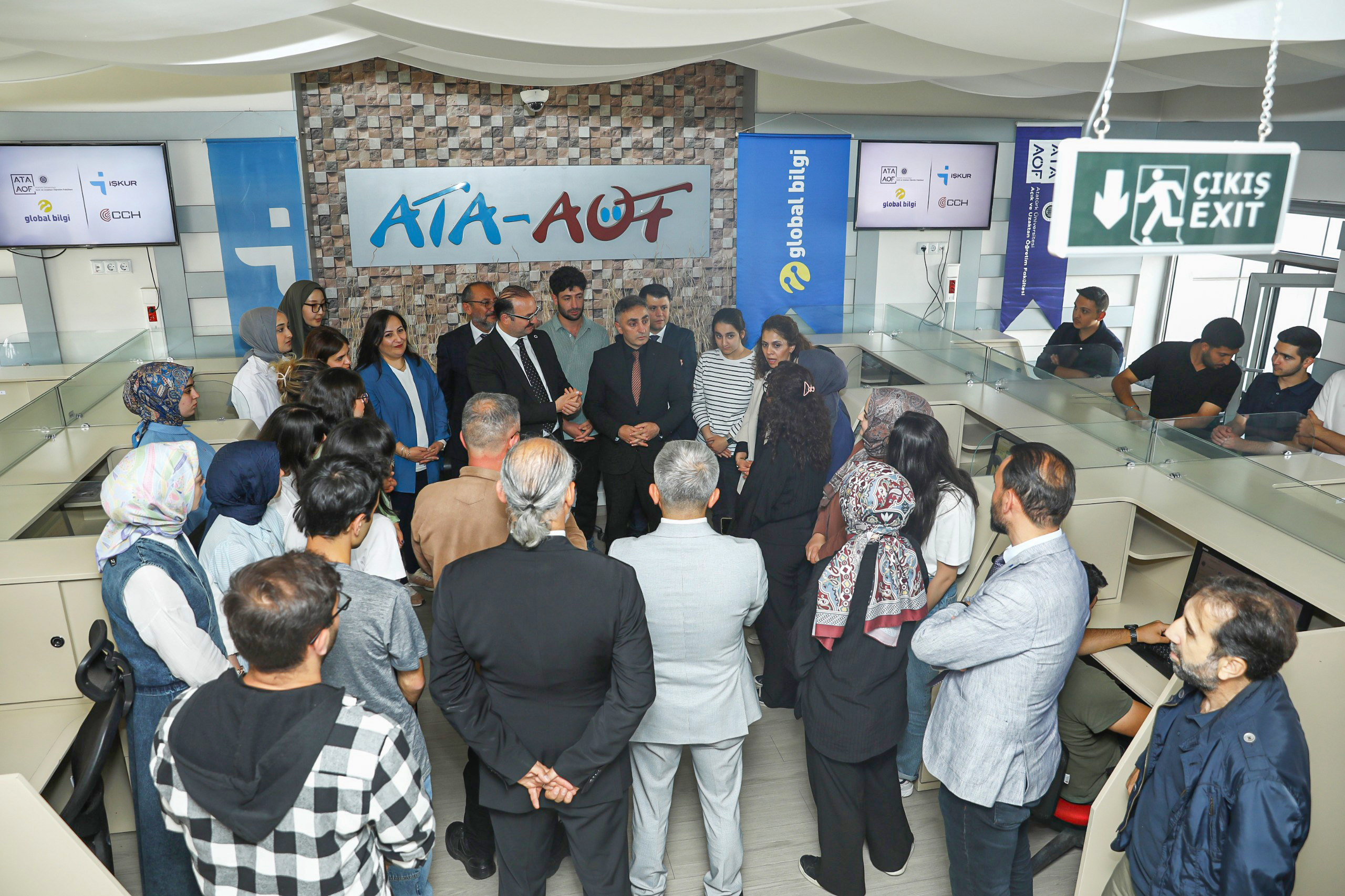 The call center unit was inspected by representatives of the institutions participating in the cooperation when they visited the Atatürk University Open and Distance Education Faculty following the protocol ceremony. The students, who accompanied the delegation, were informed of the project's significance and the work that had been completed.