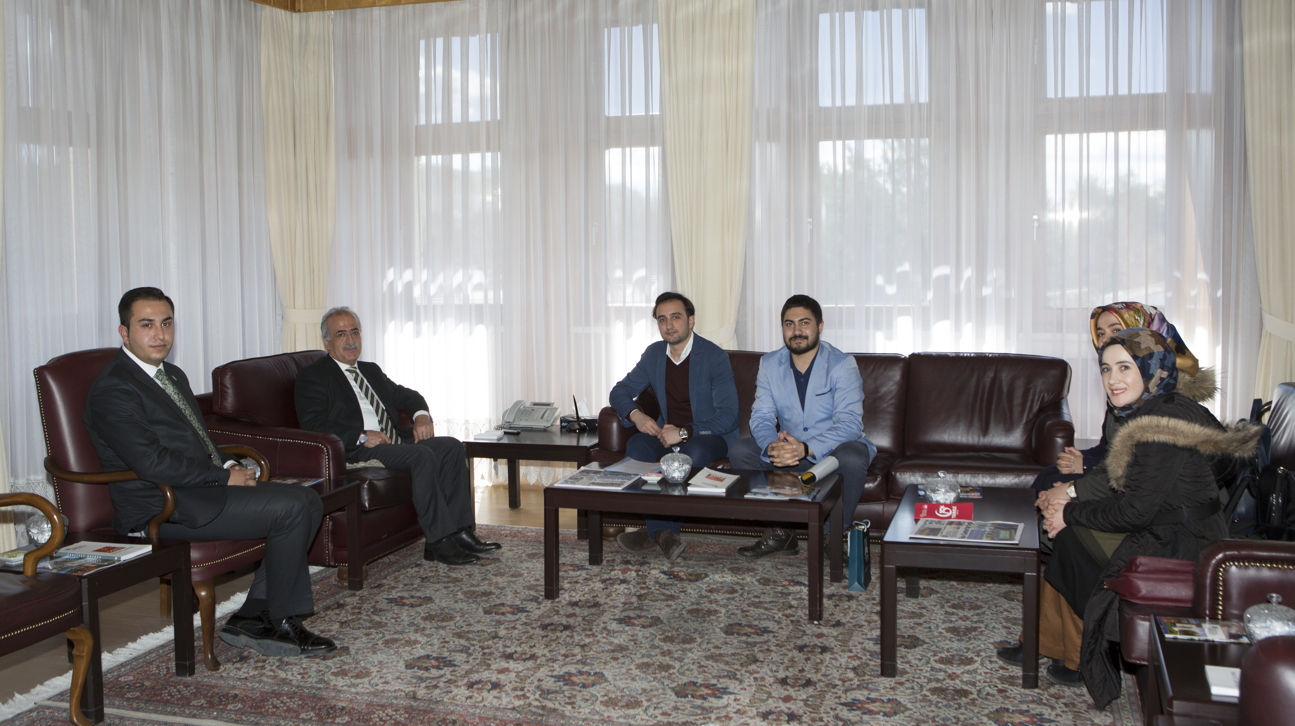 Batuhan Bakırcı, President of Erzurum City Council Youth Center and the managers of the center visited Prof. Dr. Ömer Çomaklı, Rector of Atatürk University in his office.