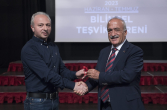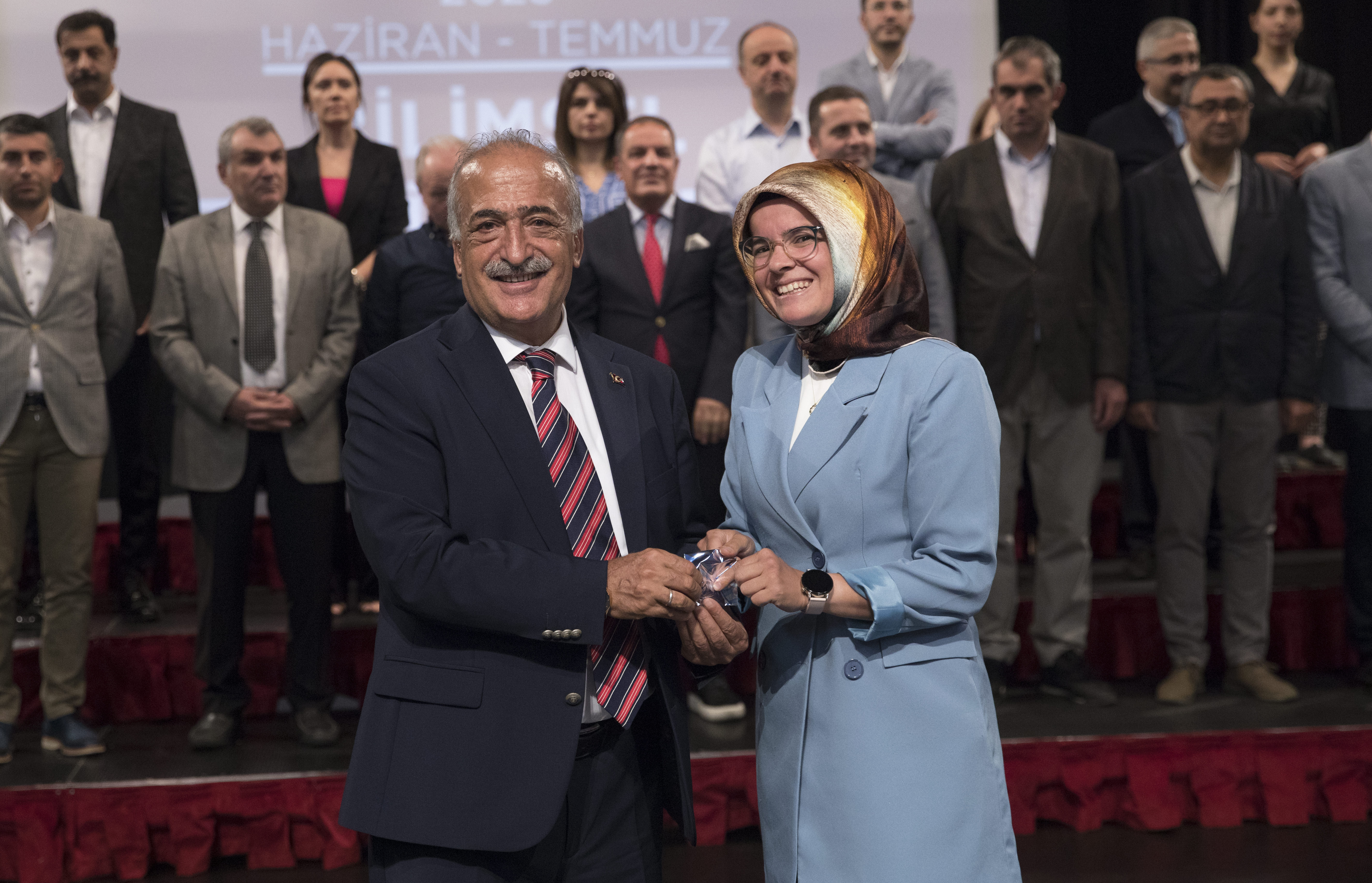 Rector Çomaklı, who presented awards to academicians who rose to prominence with their publications, patents, projects, and companies at a ceremony conducted in the 15 July National Will Hall of the Cultural Center, congratulated the academicians on their research-based work.