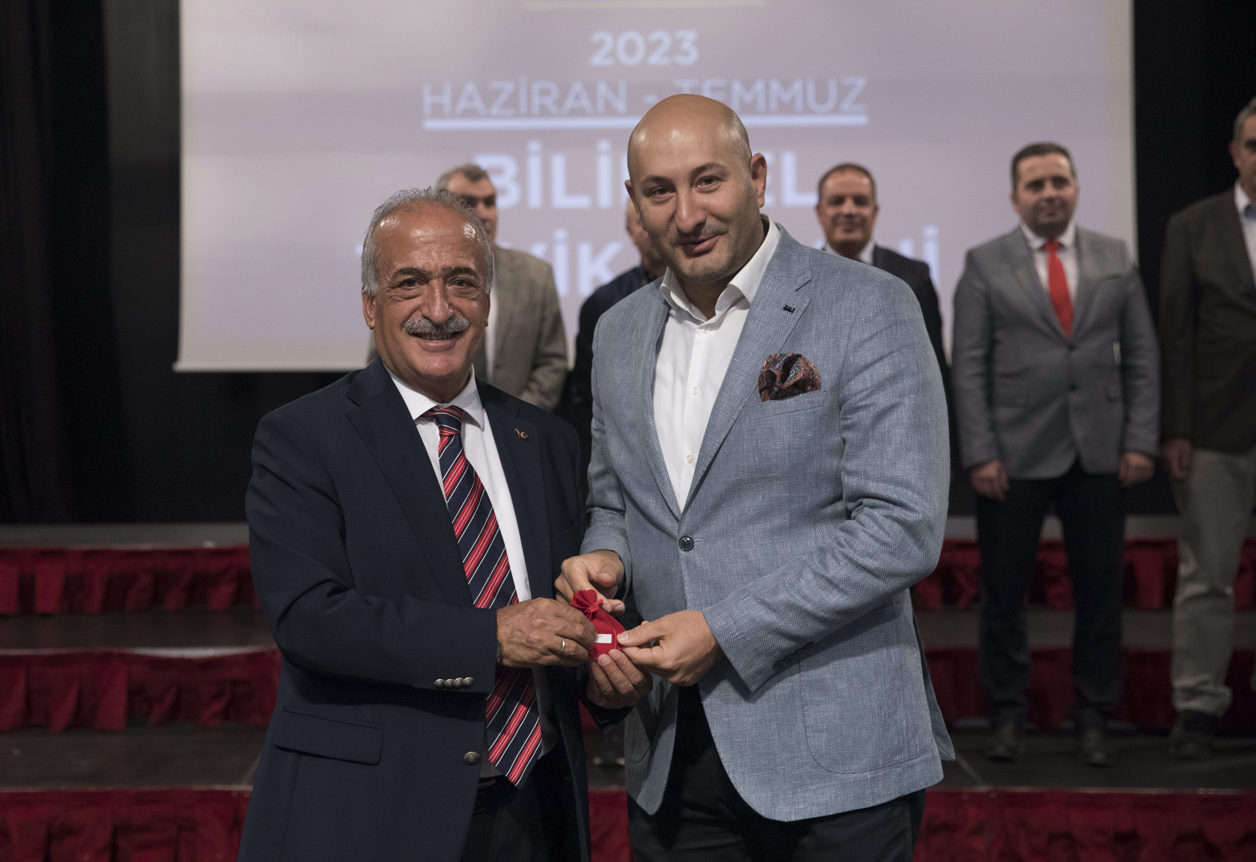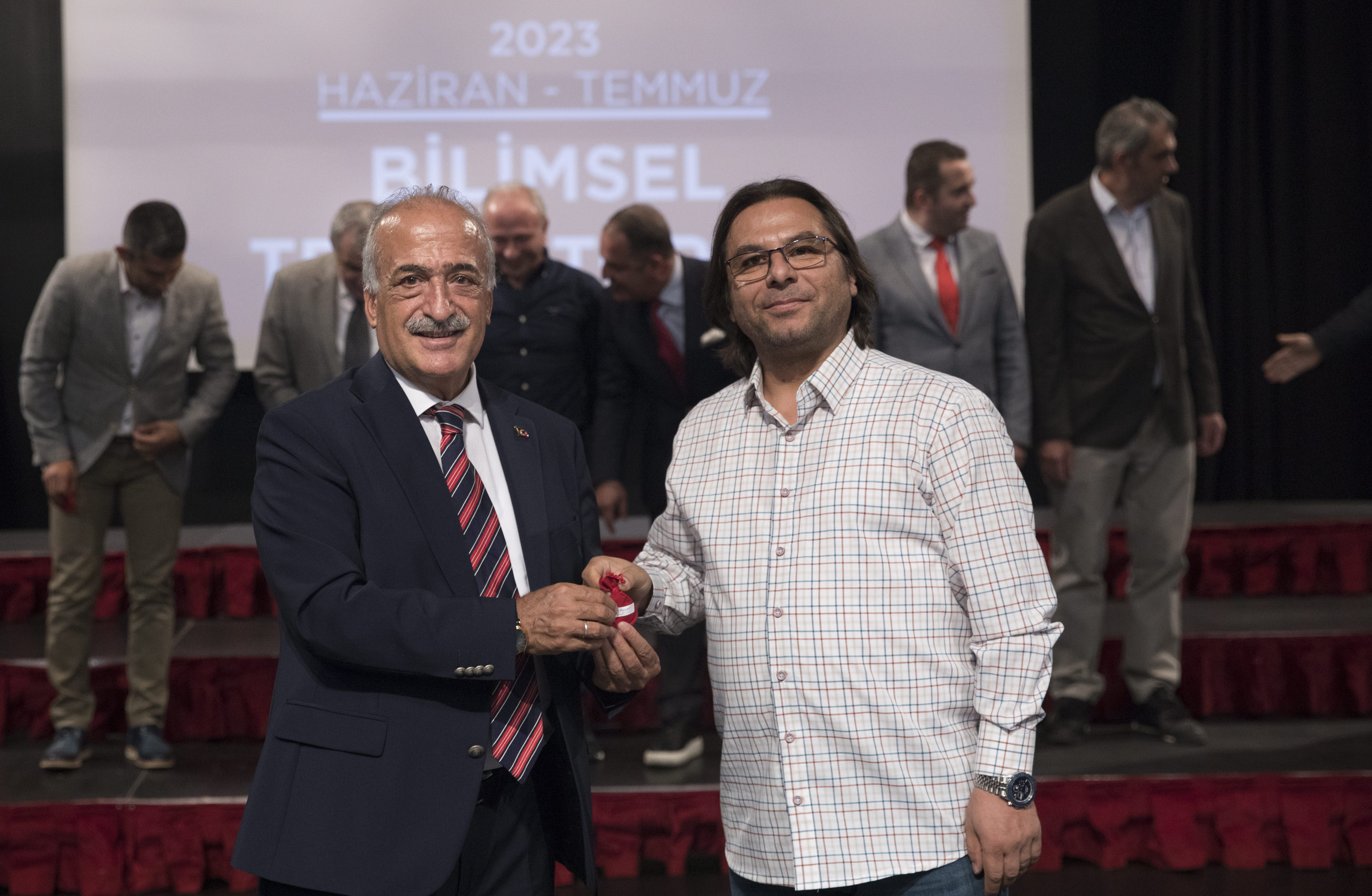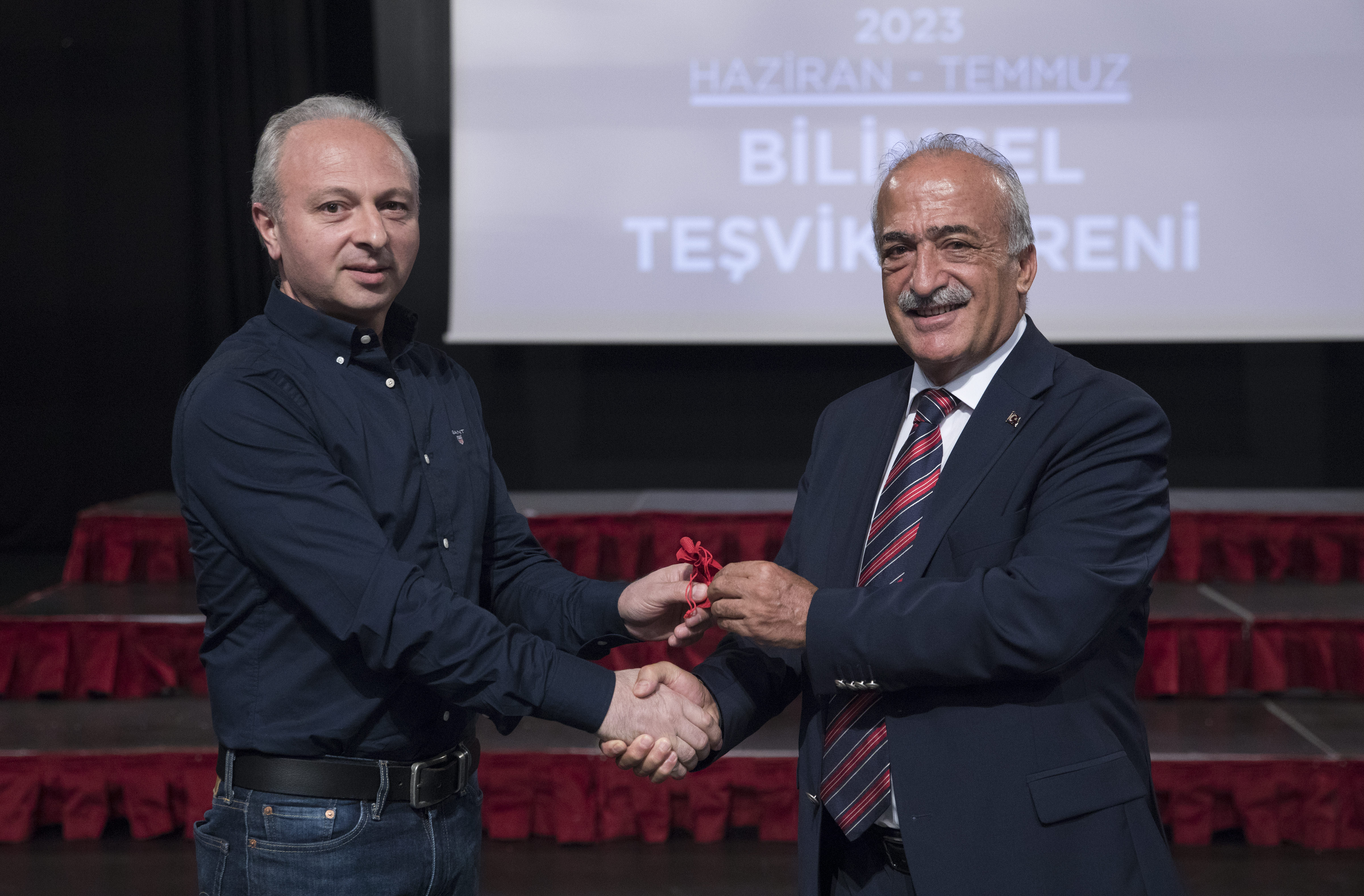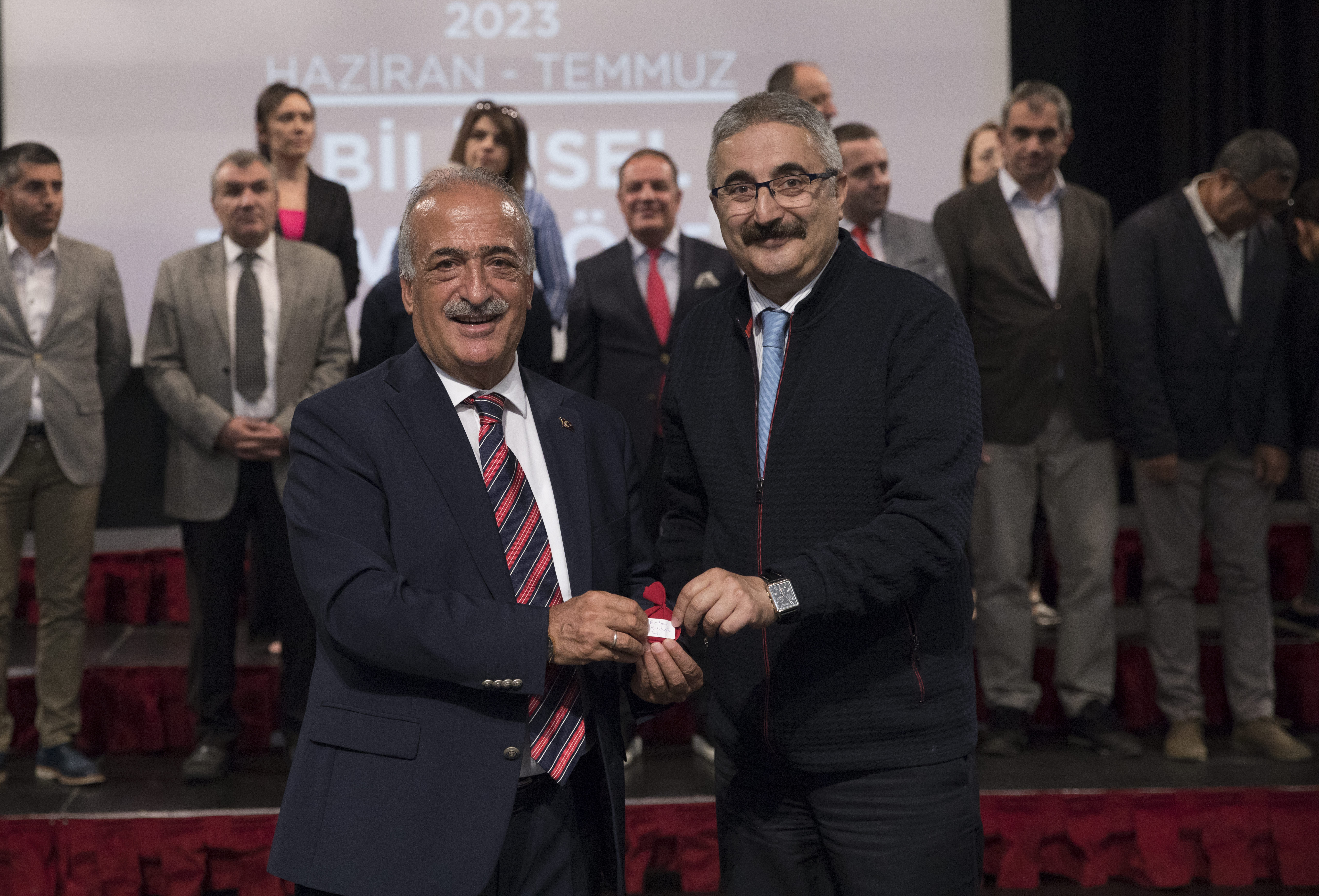 Rector Çomaklı stated that they, as the university administration, are attempting to recognize all of their efforts and added, "We both encourage our valuable scientists and share in their joy through the award ceremonies we arrange. I am confident that our members will work diligently to advance our institution in accordance with shared goals and objectives.