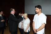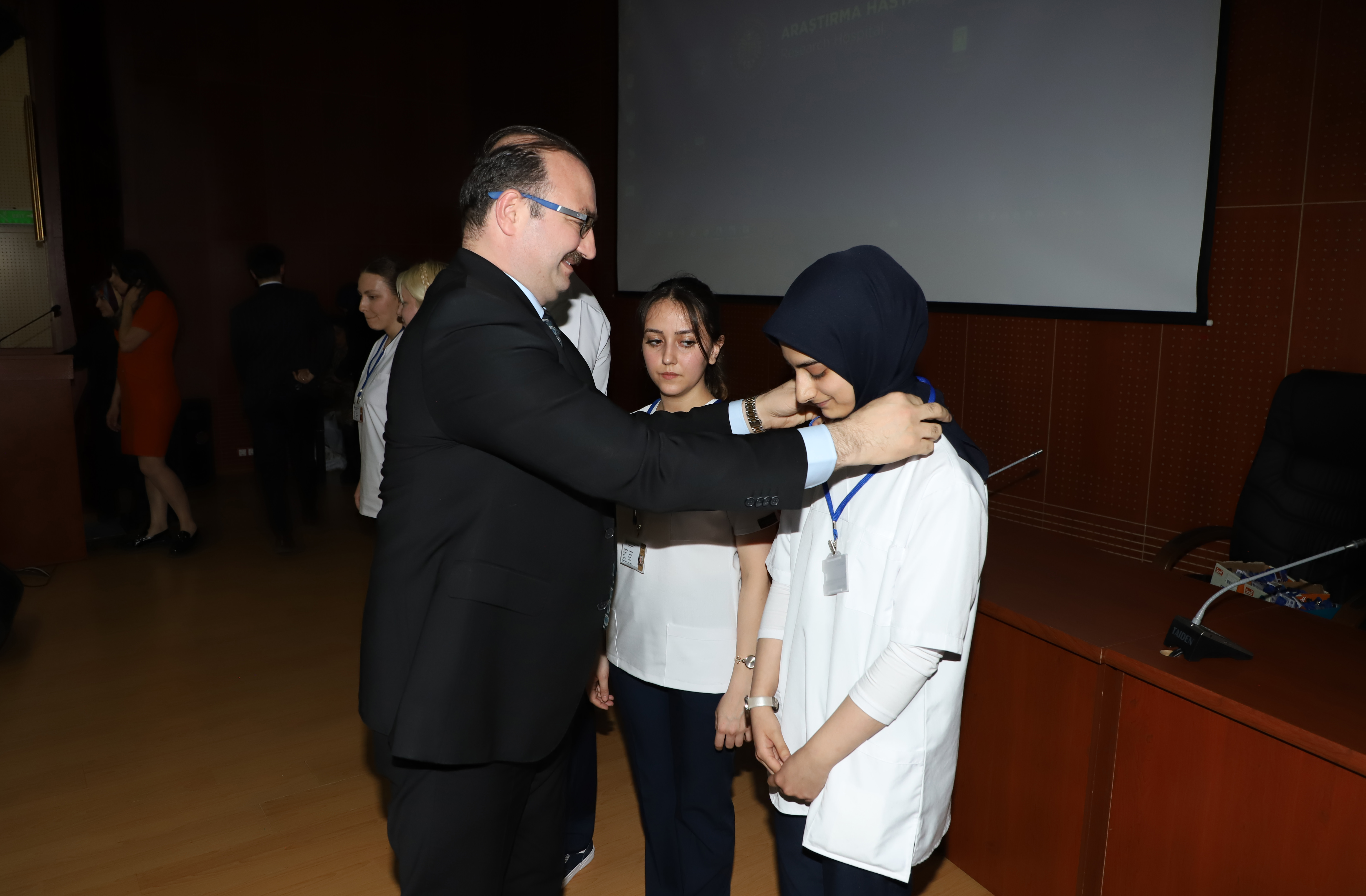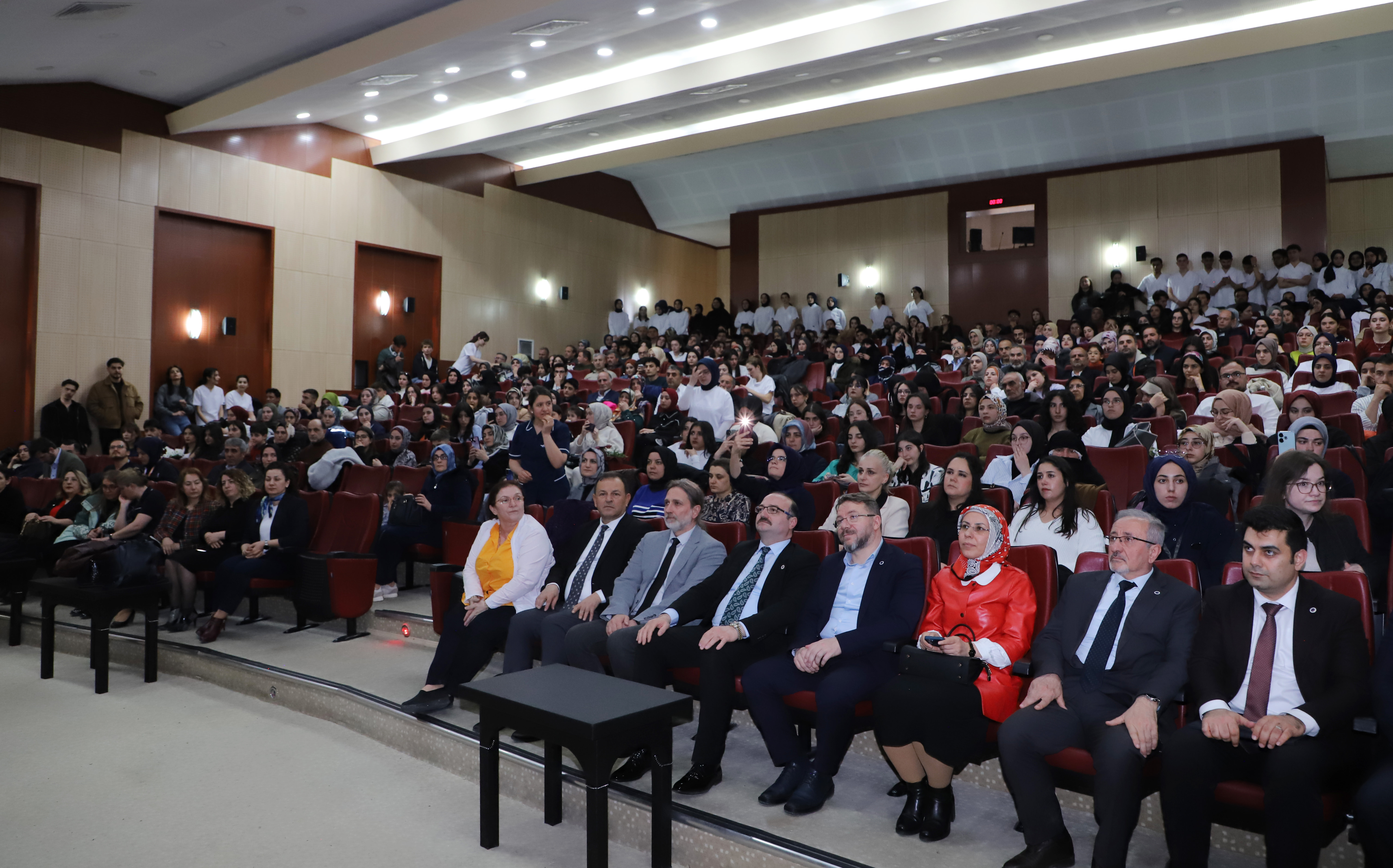 The uniform-wearing ceremony was celebrated with enthusiasm by the first-year students of the Faculty of Nursing at Atatürk University. Prof. Dr. Ahmet Hacımüftüoğlu, Vice Rectors Prof. Dr. Reyhan Keleş, Prof. Dr. Hasan Türkez, and Prof. Dr. Hasan Yılmaz, Secretary General Assoc. Prof. Dr. Ufuk Okkay, Dean of the Faculty of Nursing Prof. Dr. Reva Balcı Akpınar, academicians, students, and families attended the event at the Atatürk University Research Hospital Conference Hall.