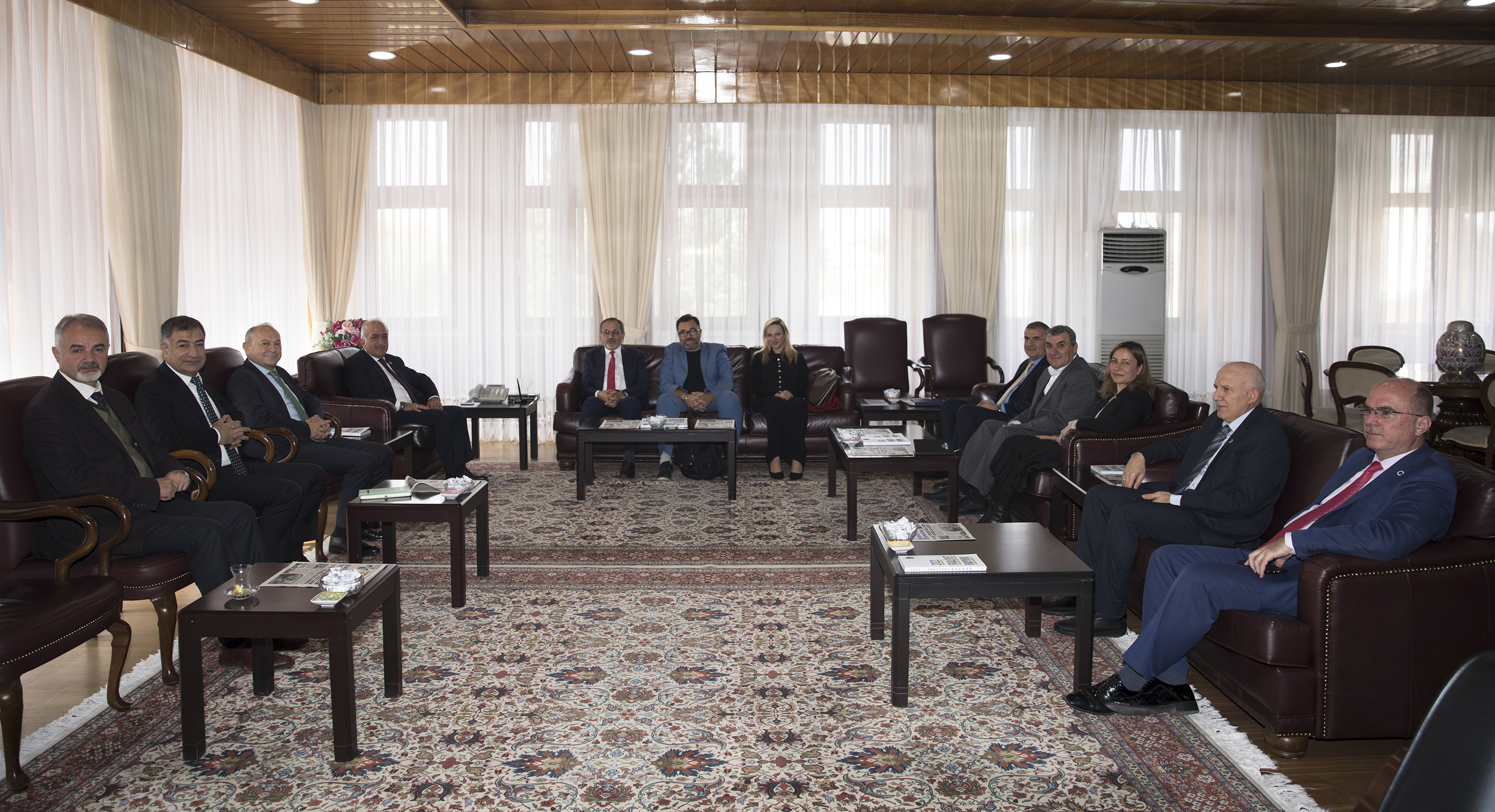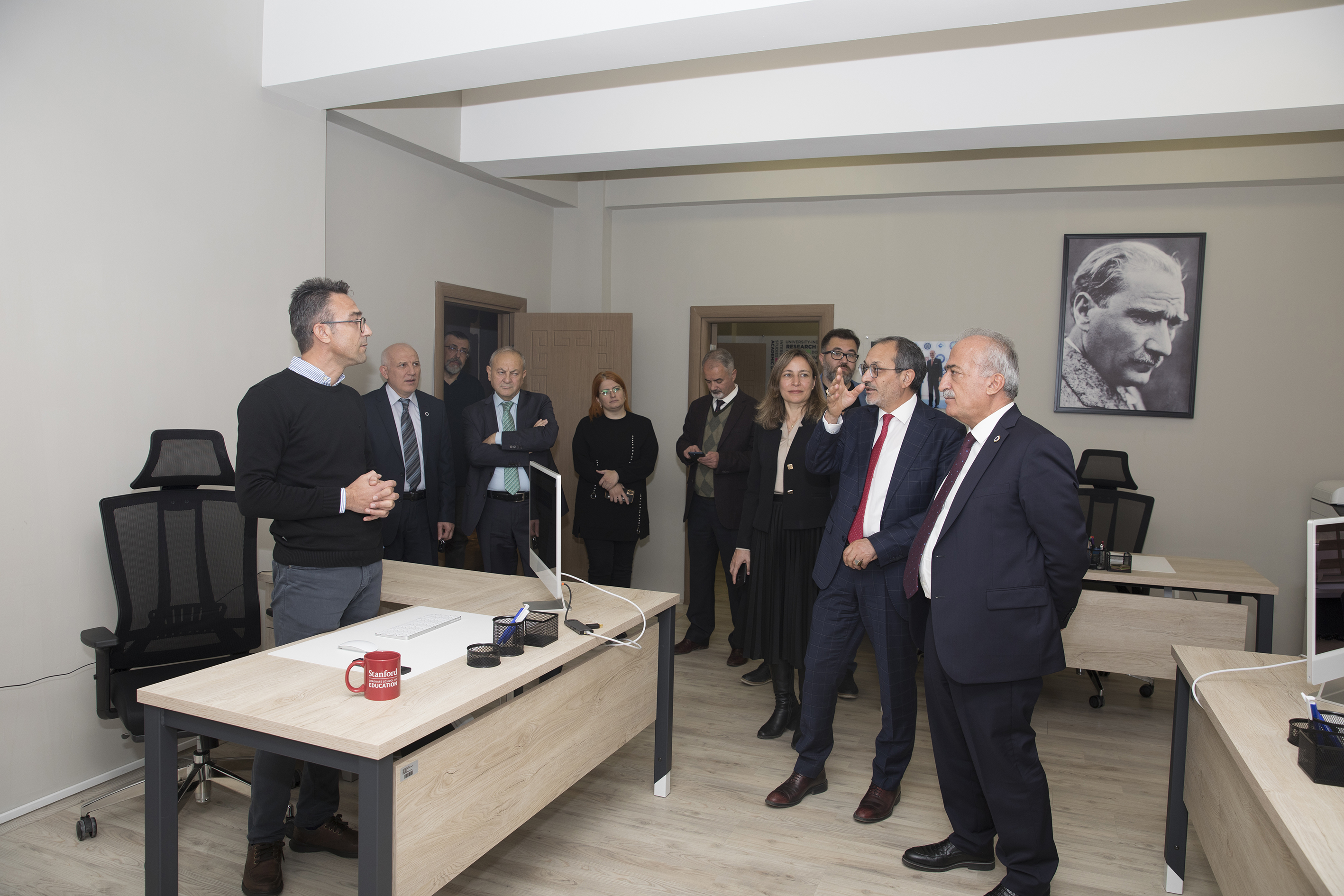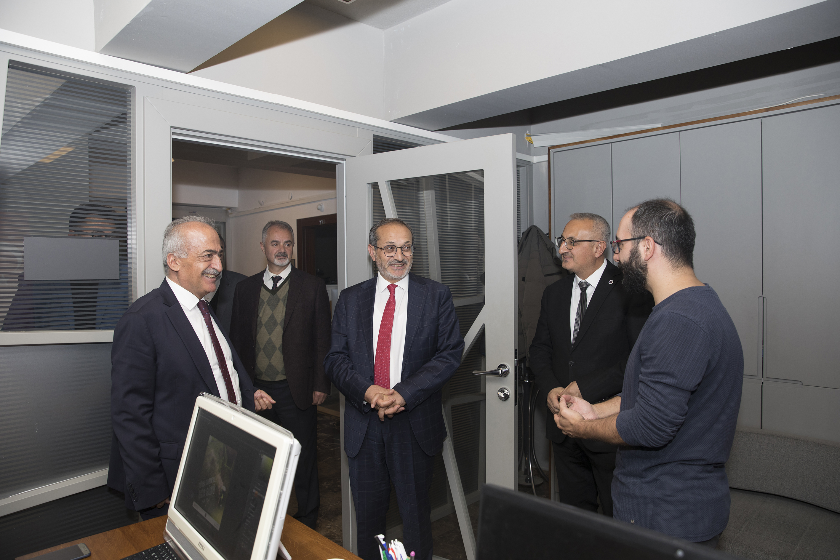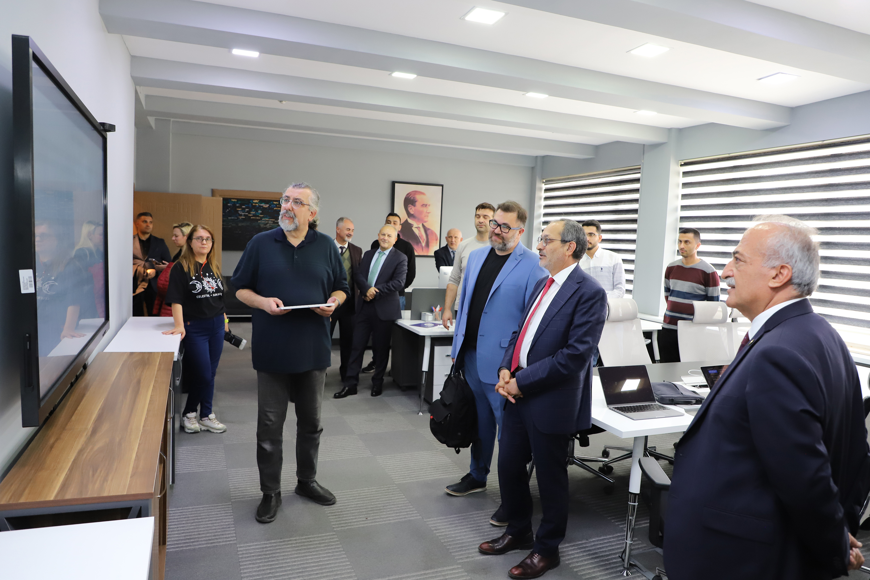TUSAŞ R&D and Technology Director, Prof. Dr. Erdal Çelik, Tusaş University relations manager Dr. Süleyman Demir and TUSAŞ Technology Development Engineer Dr. Seda Sivri were extended cordial receptions by Rector Çomaklı in the rectorate. The attendees were granted an introductory tour of the operational divisions that were unveiled as part of the New Generation University Design and Transformation Project by Prof. Dr. Çomaklı on behalf of Atatürk University.